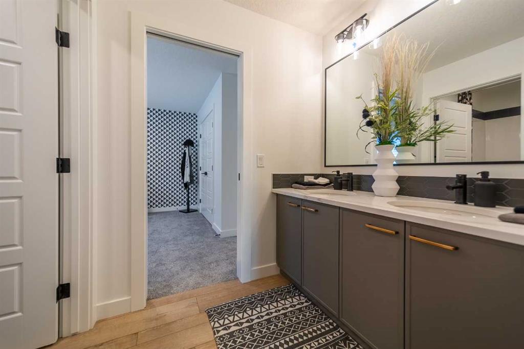 Welcome to the Pierce 2 by Sterling Homes Calgary! Built by a trusted builder with over 70 years of experience, this home showcases on-trend, designer-curated interior selections tailored for a home that feels personalized to you. Energy efficient and smart home features, plus moving concierge services included in each home. Discover this stunning 2026 home with side entrance, 9’ basement walls, and a 3 car garage. It features a secondary primary bedroom, main floor bedroom with full bath, rear BBQ gas line rough-in, gas fireplace with floor-to-ceiling tile, paint grade railing with iron spindles, vaulted bonus room, and additional windows throughout. The kitchen offers a chimney hood fan with built-in microwave tower, gas range, spice kitchen with french door and pantry shelving, plus island pendants. Upstairs boasts a 5-piece ensuite with soaker tub, fully tiled shower with bench and glass barn door, bank of drawers, 3-piece ensuite in the second primary, and tile flooring in upper baths. This energy-efficient home is Built Green certified and includes triple-pane windows, a high-efficiency furnace, and a solar chase for a solar-ready setup. With blower door testing, plus an electric car charger rough-in, it’s designed for sustainable, future-forward living. Featuring a full range of smart home technology, this home includes a programmable thermostat, ring camera doorbell, smart front door lock, smart and motion-activated switches—all seamlessly controlled via an Amazon Alexa touchscreen hub. Photos are a representative.
