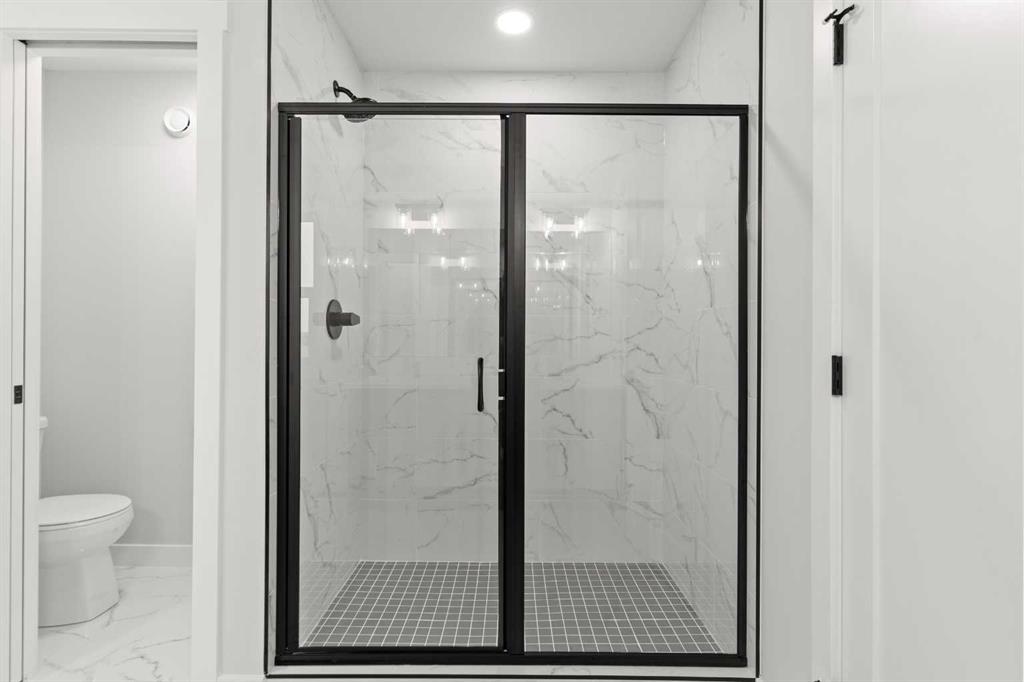 Welcome to 467 Kinniburgh Loop – A 3-Bedroom, 2.5-Bathroom Home by Golden Homes in Kinniburgh South! Built by 5-star builder Golden Homes, this beautifully designed 2,137 sq. ft. semi-detached home delivers modern craftsmanship, premium finishes, and a functional open-concept layout — all in one of Chestermere's most desirable new communities. The main floor welcomes you with 9' ceilings, 8' doors, and a bright, open layout designed for everyday living and entertaining. The upgraded kitchen is the centrepiece of the main floor, featuring two-tone cabinetry, quartz countertops throughout, soft-close drawers with metal sides, upgraded Samsung stainless steel appliances, a built-in microwave with stainless steel trim, and a walk-in pantry with built-in shelving. The dining area is filled with natural light from oversized triple-pane windows, and the living room features a cozy electric fireplace with glass sliding doors opening to your west-facing backyard — the perfect setup for soaking up afternoon and evening sun. A half bath, side entrance, and finished staircase to the basement complete the main level. Upstairs, an oversized staircase with iron spindle railings and an open-to-below feature creates an impressive sense of space. The primary bedroom offers a spa-inspired 5-piece ensuite with a freestanding tub, fully tiled shower with glass doors, double vanity, and private enclosed toilet, plus a custom walk-in closet with built-in drawers and shelving. Two additional bedrooms each have their own walk-in closets and share a Jack & Jill bathroom with double vanity and separated toilet/shower space. The upper level also includes a conveniently located laundry room with quartz countertop and shelving. The basement is fully roughed-in with a separate mechanical room — excellent future development potential. The oversized 20' x 22' front-attached double garage provides ample parking and storage. The exterior is fully graded, loamed, and sodded to the side entrance — move-in ready from day one. As with every Golden Homes build, this home includes the full Golden Standard package: true 9' ceilings on the main floor and basement, tankless hot water heater, HRV system, solar panel rough-in, gas line to the deck, smart home features, upgraded MDF shelving, upgraded carpet underlay, and a front yard tree. Located in the family-friendly neighborhood of Kinniburgh South, you're just minutes from Lake Chestermere, schools, parks, shopping, and everyday amenities. Don't miss your opportunity to be part of the Golden Homes family.