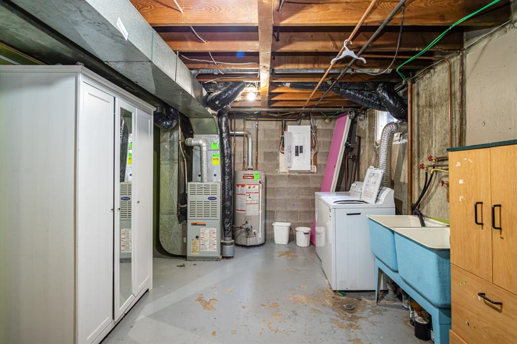 Ideal location for a young family in this fully finished 2-storey across from Maryview school. Home features original maple hardwood floors and new carpets on basement stairs and family room. Back yard features a massive 14x16 deck and 4x6 garden shed with a fully fenced yard for your children and/or pets. Lots of space for a young growing family with affordable condo fees close to major bus routes, schools and downtown Red Deer. Includes all appliances and window coverings. Basement has great storage, and a big laundry room with 2 laundry tubs. Home includes a 2 car paved parking pad.