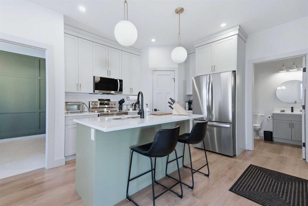 Welcome to easy, comfortable living in this beautifully built 2-bedroom, 3-bathroom bungalow by Ridgestone Homes, perfectly located in the heart of Lacombe. Thoughtfully designed with both style and convenience in mind, this home offers the perfect balance of modern finishes and low-maintenance living. Step inside to a bright, open-concept layout where the spacious living area flows effortlessly into a stunning kitchen featuring high-quality appliances, plenty of storage, and a welcoming space to gather with family or friends. The primary suite is a peaceful retreat, complete with a walk-in closet and a beautifully appointed ensuite. Main-floor laundry adds everyday convenience and makes single-level living effortless. Downstairs, the fully finished basement offers even more room to enjoy with an additional bedroom, a flexible bonus room ideal for a home office or hobby space, and a large rec room perfect for movie nights, entertaining, or simply relaxing. You’ll also appreciate the attached garage and the added value of no condo fees, giving you the freedom of home ownership without the extra costs. Located just minutes from the hospital, shopping, and everyday amenities, this home is ideal for anyone looking to downsize, invest, or enjoy the comfort of a brand-new home with minimal upkeep.