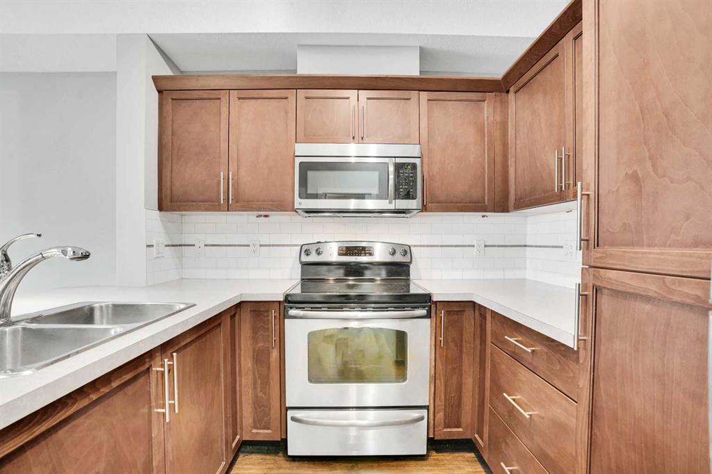 Welcome to Red Haus, a well-cared-for and pet-friendly community in the heart of Royal Oak, where up to two pets are permitted with no weight restrictions. This inviting 1-bedroom, 1-bathroom condo offers 607 sq ft of efficiently designed living space with an open layout, high ceilings, and great natural light throughout. The modern kitchen includes stainless steel appliances, ample cabinet space, and a comfortable breakfast bar, while a dedicated office desk area provides a convenient spot for work or study. Step out onto your private balcony to enjoy the sunshine or grill using the natural gas hookup. Additional features include in-suite laundry, a HEATED underground TITLED parking stall, and a secure TITLED storage unit. Residents also have access to an impressive clubhouse with a lounge area, pool table, full kitchen, upper-level seating, and a well-equipped gym with a walkout patio. Ideal for first-time buyers, downsizers, or investors, this home offers exceptional value in one of NW Calgary’s most desirable communities.