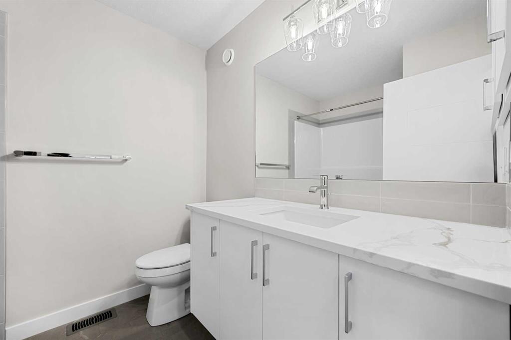 Welcome to Chelsea Court, where the “Monarch” townhome by Trico Homes combines modern design, comfort, and everyday functionality in one thoughtfully planned home. This pre-construction property includes three bedrooms, two and a half bathrooms, and more than 1,200 square feet of well-designed living space. The entry level features a two-car tandem garage and offers the option to add a flexible room with a full bathroom. This additional space can serve as a guest suite, home office, or hobby area, giving you the flexibility to customize the home to suit your lifestyle. The main floor is bright and inviting with nine-foot ceilings and an open-concept layout that enhances the sense of space. The kitchen is finished with quartz countertops and stainless steel appliances, providing a stylish and practical setting for both everyday living and entertaining. From the main living area, you can step out onto the private front deck overlooking green space and pathways, creating a peaceful spot to enjoy your morning coffee or unwind in the evening. Upstairs, the owner’s suite offers a comfortable private retreat with a spacious walk-in closet and a four-piece ensuite bathroom. Two additional bedrooms, a full bathroom, and a conveniently located laundry area complete the upper level, providing a functional layout for family living. Chelsea is a vibrant new community on the western edge of Chestermere that has been thoughtfully designed with families in mind. Residents have access to more than nine acres of park space, three storm ponds, a natural wetland eco-park, and interconnected pathways that make it easy to enjoy the outdoors. The neighborhood includes a mix of townhomes, duplexes, and single-family homes, creating an attractive and welcoming streetscape. Schools, shopping, and recreational facilities are located just minutes away, making daily errands convenient. Outdoor enthusiasts will also appreciate the proximity to Chestermere Lake, which offers year-round activities and beautiful scenery close to home. This is an opportunity to become part of a growing community. Schedule your visit to Chelsea Court today and discover where modern living meets natural charm. *Measurements are pulled from builder drawings; ground level measurements added to main floor*