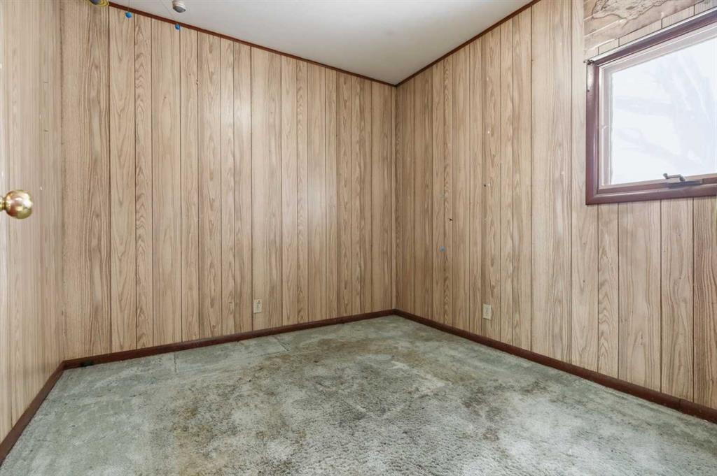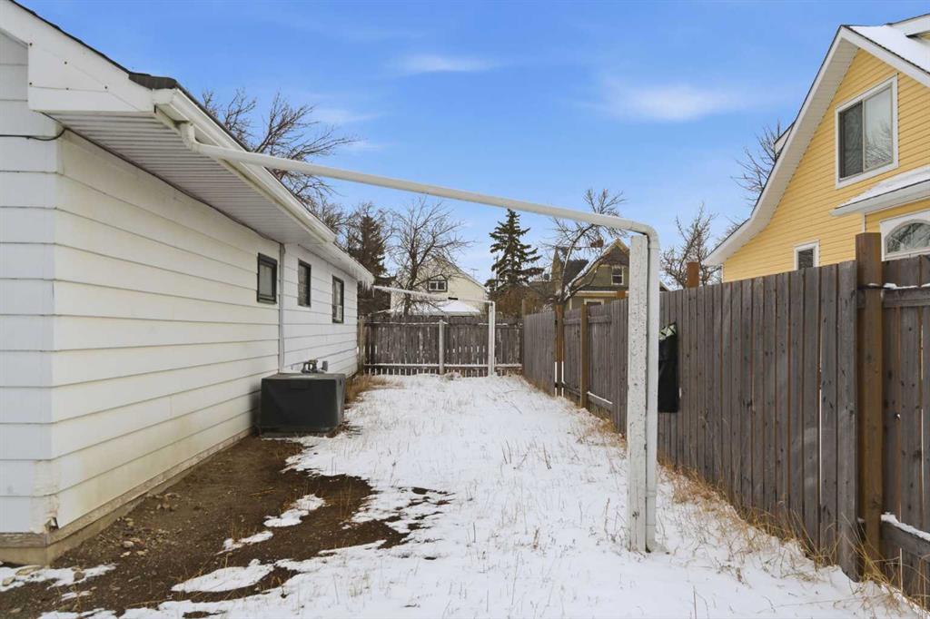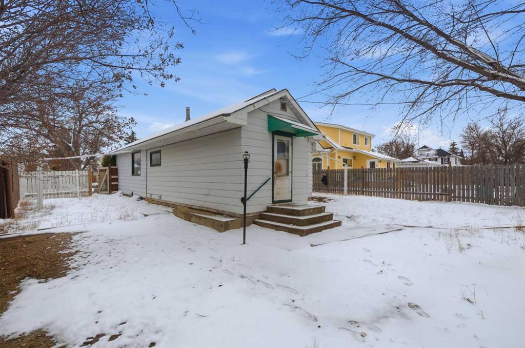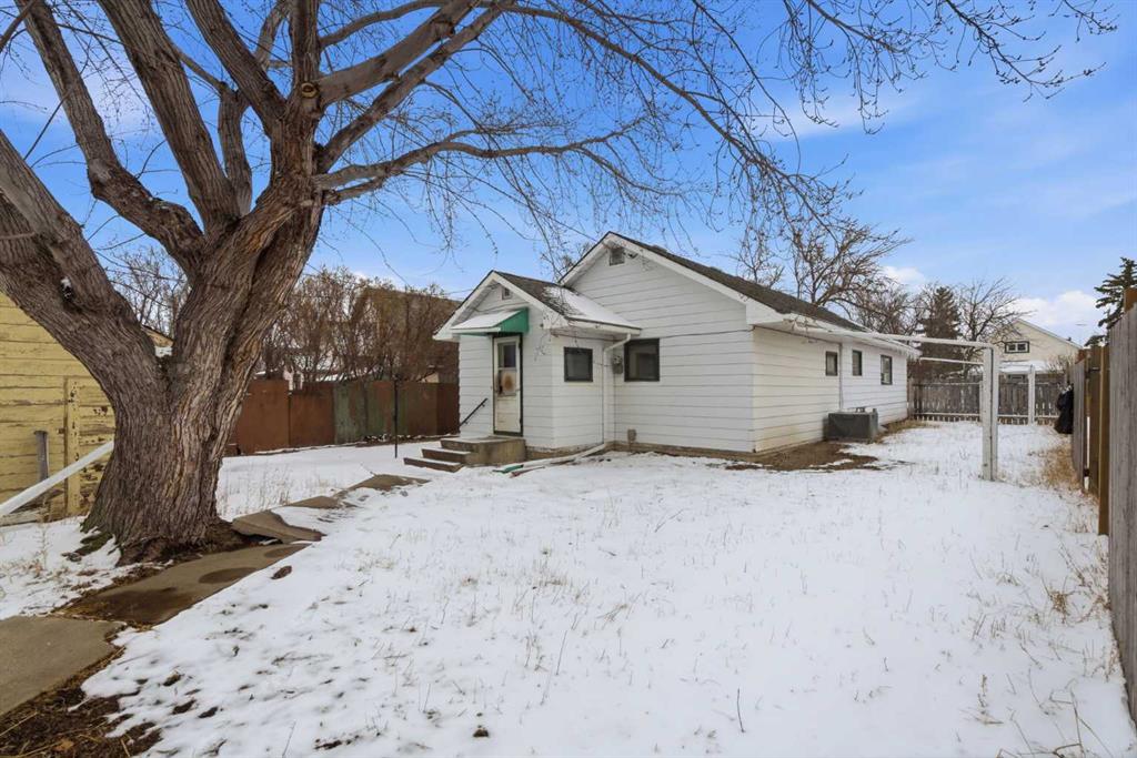 Bungalow home situated on a quiet tree lined street in the heart of Vulcan! Just steps away from restaurants, library, downtown shopping! Main floor offers a spacious living room + dining room, good sized kitchen, 2 large bedrooms, 4pc bath+ back entry mudroom. Lower level is laid out nicely for future development with + Washer/Dryer. Additional Features include: Oversized single garage & Newer HWT + Furnace, walking distance to shopping, restaurants, library, downtown shopping. Exceptional Value!