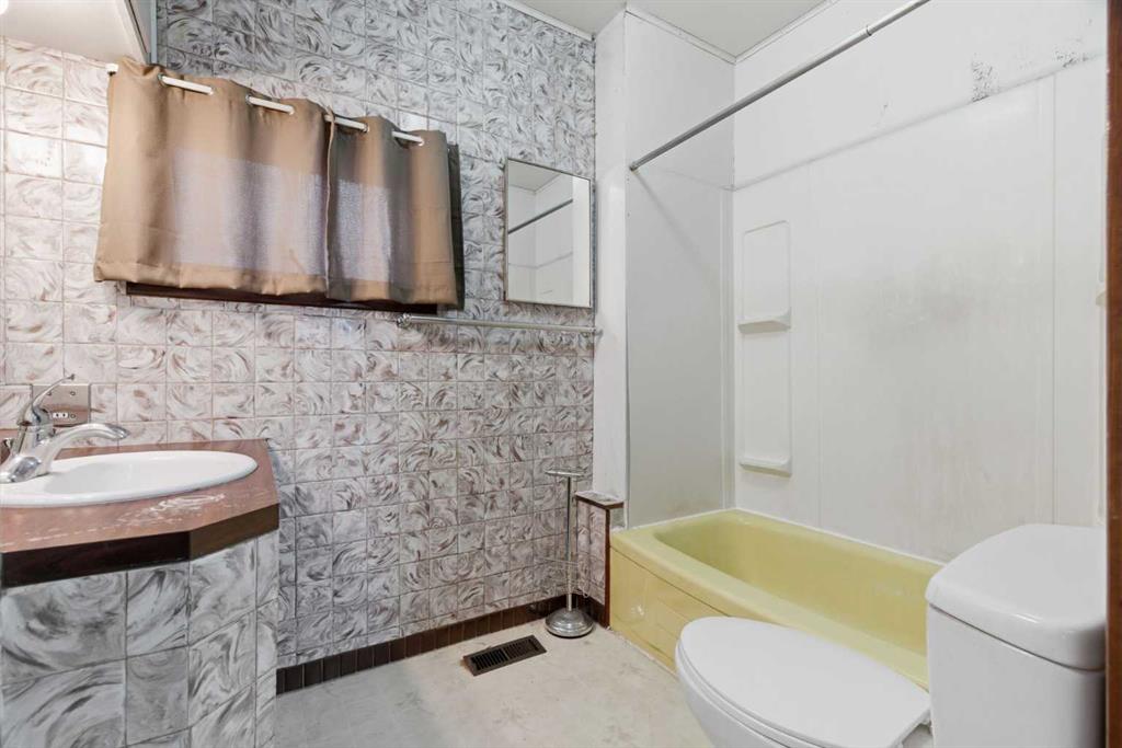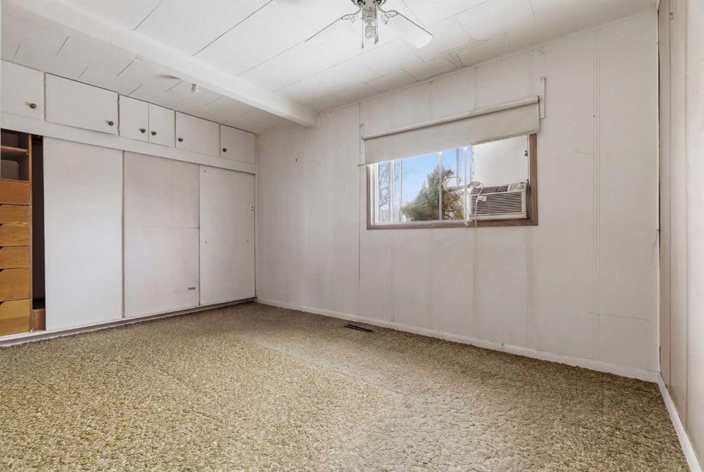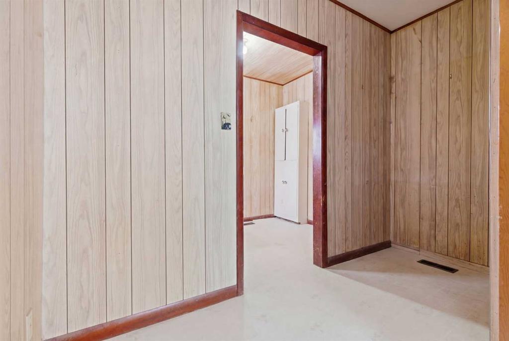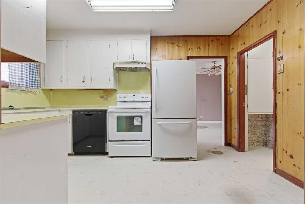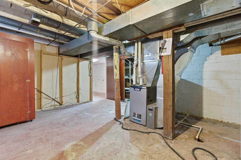 Bungalow home situated on a quiet tree lined street in the heart of Vulcan! Just steps away from restaurants, library, downtown shopping! Main floor offers a spacious living room + dining room, good sized kitchen, 2 large bedrooms, 4pc bath+ back entry mudroom. Lower level is laid out nicely for future development with + Washer/Dryer. Additional Features include: Oversized single garage & Newer HWT + Furnace, walking distance to shopping, restaurants, library, downtown shopping. Exceptional Value!
