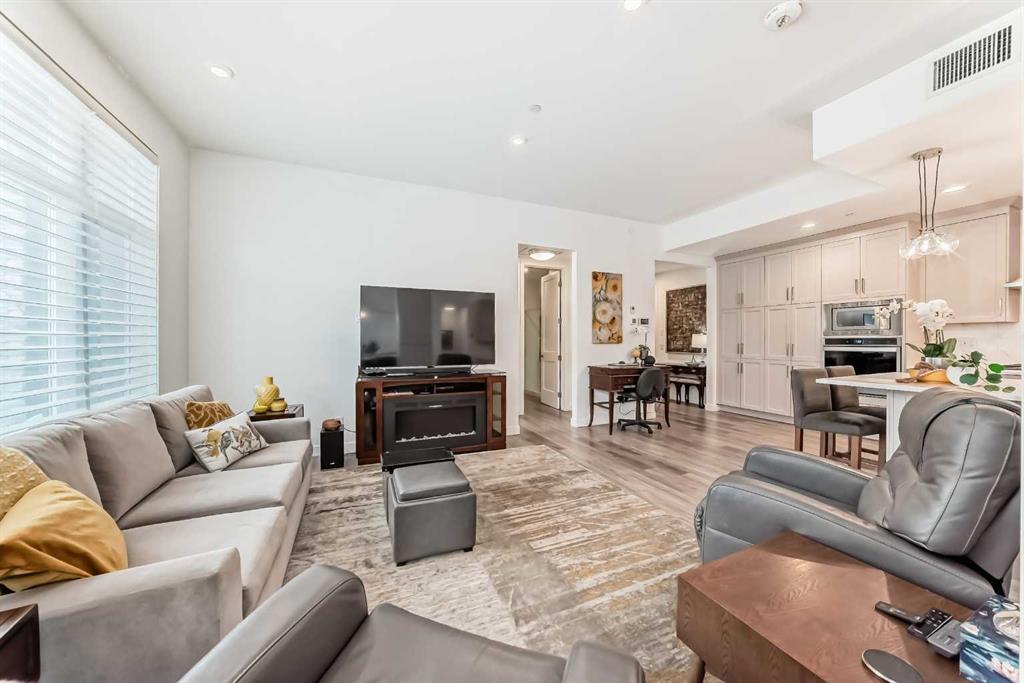 Experience refined, maintenance-free living in this beautifully appointed executive bungalow with direct and level access to your heated attached double car garage located in the highly sought-after Westman Village in Mahogany. Designed for both comfort and sophistication, this exceptional PET FRIENDLY home offers an ideal blend of luxury finishes and functional living spaces. This elegant residence features two bedrooms and two full bathrooms, including a generous primary suite designed as a comfortable retreat. A second bedroom equipped with a convenient wall bed offers flexibility for guests, a home office, or multi-purpose living. Large patio space with privacy screens, watering system, and two separate doors leading to your own oasis! The heart of the home is the gourmet kitchen, complete with stone countertops, a gas cooktop, built-in wall ovens, premium cabinetry, and generous prep space, making it ideal for both everyday cooking and entertaining. The open-concept living and dining areas are enhanced by 10-foot ceilings and large windows that flood the home with natural light, complemented by remote-controlled window coverings for added comfort and convenience. These spaces flow seamlessly to a large private outdoor patio, perfect for relaxing, hosting guests, or enjoying warm summer evenings. Comfort is elevated year-round with in-floor heating throughout the home as well as in the attached double garage, along with central air conditioning to keep the home cool and comfortable during the warmer months. Additional highlights include a dedicated laundry room, functional mudroom, and a double attached garage, providing exceptional convenience, storage, and everyday practicality. Residents of Westman Village enjoy access to an unparalleled collection of executive amenities, creating a resort-style lifestyle unlike anything else in Calgary. These exclusive features include: -Indoor swimming pool with waterslide -Full-sized gymnasium -State-of-the-art fitness centre -Chef’s gourmet demonstration kitchen -Private movie theatre -Billiards and games room -Golf simulator -Multiple social and recreation spaces -Private wine room , and much MUCH more! Located in the award-winning lake community of Mahogany, you’ll also enjoy close proximity to scenic pathways, boutique shopping, dining, and the vibrant lake lifestyle that makes this neighborhood one of Calgary’s most desirable destinations. Luxury, lifestyle, and convenience come together in this exceptional Westman Village bungalow. Don’t miss your opportunity to enjoy one of Calgary’s most exclusive resort-style communities.