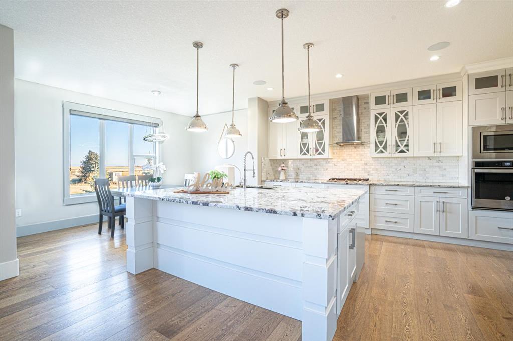 OVER 8000 SQFT LOT SIZE 2-BEDROOM WALKOUT LEGAL BASEMENT SUITE + ADDITIONAL ROOM & FULL BATH | 7 BEDROOMS + DEN | 6.5 BATHS | TRIPLE CAR GARAGE | Welcome to this beautifully crafted 2017 executive home in the sought-after community of Kinniburgh, backing onto open green space. With over 3000 sq ft above grade and a fully finished walkout basement, this property offers exceptional space, flexibility, and quality throughout. The main floor showcases a bright, open layout with a spacious living room, breakfast nook, and a chef-inspired kitchen featuring a large island, quartz counters, and high-end finishes. A formal dining area, main-floor den/office, mudroom, and a convenient 2-piece bath complete this level. Upstairs you’ll find four generous bedrooms, including a primary suite with tray ceilings, a walk-in closet, and a luxurious 7-piece ensuite. The upper level also offers two additional full bathrooms, a vaulted-ceiling bonus room, and a separate laundry room for everyday convenience. The walkout basement features a fully developed 2-bedroom legal suite with its own kitchen, living area, full bath, and laundry—perfect for extended family or additional rental income. A second basement area adds an extra room and full bathroom, providing even more living options. Enjoy a massive pie-shaped lot with a fenced yard, rear deck, and beautiful open-field views. The oversized triple-car garage provides ample parking and storage. Located steps from the K–9 school, Chestermere Health Centre, and local shopping and dining, this home combines luxury, functionality, and income potential in one of Chestermere’s premier cul-de-sac locations.