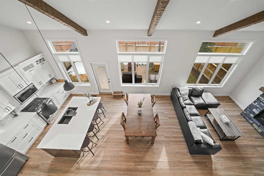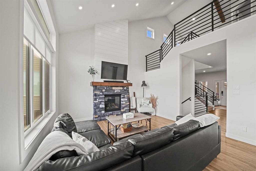 WOW WOW WOW! This STUNNING 2022, 1,883 sq ft two storey True-Line Kinsmen Dream Home floorplan located at 37 Arrowwood Close in Blackfalds will be sure to impress you. There is so much detail in this home you are bound to fall in love. Your new home is located in Aspen Lakes which you have access to the Trans Canada trail system right out your front door that you are able to enjoy year-round, just check out the drone photos! Stepping inside, you will be greeted by the warm colors of this home, large front entry and woodwork throughout this home. Everything about 37 Arrowwood close is impressive including the black railing, the soaring beamed ceiling, and large windows allow for a ton of sunshine with the south facing backyard. The kitchen is functional looking onto to living room and gas fireplace. All countertops in this home are quartz and the flooring on the main floor is all luxury vinyl plank, they really didn’t leave anything out on this property! The main floor laundry comes off of the heated garage and there are two bedrooms as well as a bathroom. The upper floor is consists of the primary bedroom and amazing ensuite with a dual vanity, soaker tub, floor to ceiling tiled shower & walk in closet. The office overlooks the main floor creating a sense of openness! Your new home is fully fenced, has A/C, HEATED GARAGE, COMPOSITE DECKING & great neighbors!