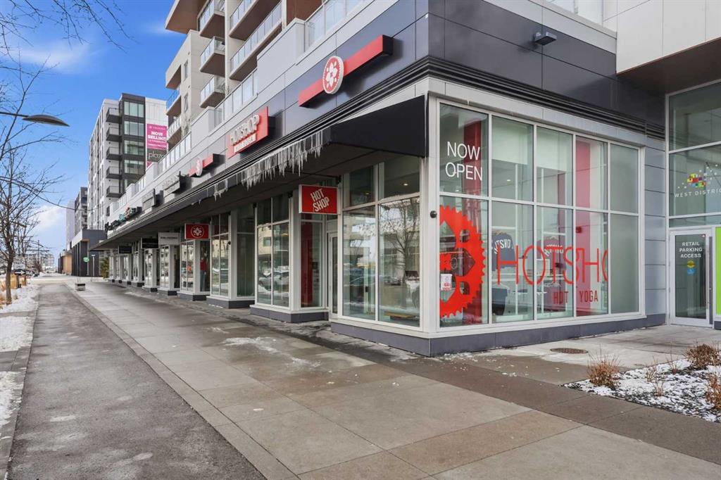 Welcome to Gateway by TRUMAN, perfectly positioned in Calgary’s vibrant, master-planned West District. Built with concrete construction, this residence delivers refined design, elevated finishes, and effortless urban living. This 2-bedroom, 2-bathroom condo with titled underground parking showcases chevron wide-plank flooring, designer lighting, and smooth flat-painted ceilings for a clean, contemporary aesthetic. Expansive floor-to-ceiling windows flood the interior with natural light and frame impressive city views, while central air conditioning provides year-round comfort. The chef-inspired kitchen is both striking and functional, featuring matte custom cabinetry, brushed-gold accents, quartz countertops and full backsplash, under-cabinet lighting, and a generous eating bar. Premium appliances include a gas cooktop, wall oven, 36” Fisher & Paykel integrated refrigerator, panelled dishwasher, and statement hood fan. Open-concept living and dining areas extend seamlessly to a private balcony. The primary suite offers a walk-in closet and spa-inspired ensuite complete with quartz counters, mosaic tile detailing, and a glass-enclosed shower. The second bedroom provides versatility as a guest room or home office, with convenient access to a stylish four-piece bath. Additional highlights include in-suite laundry, excellent storage, and secure titled underground parking. Residents enjoy upscale amenities including a rooftop patio, owner’s lounge, concierge service, bike storage, EV charging stations, and visitor parking. Surrounded by parks, pathways, boutique shopping, cafés, and dining, this is elevated urban living in one of Calgary’s most desirable communities.