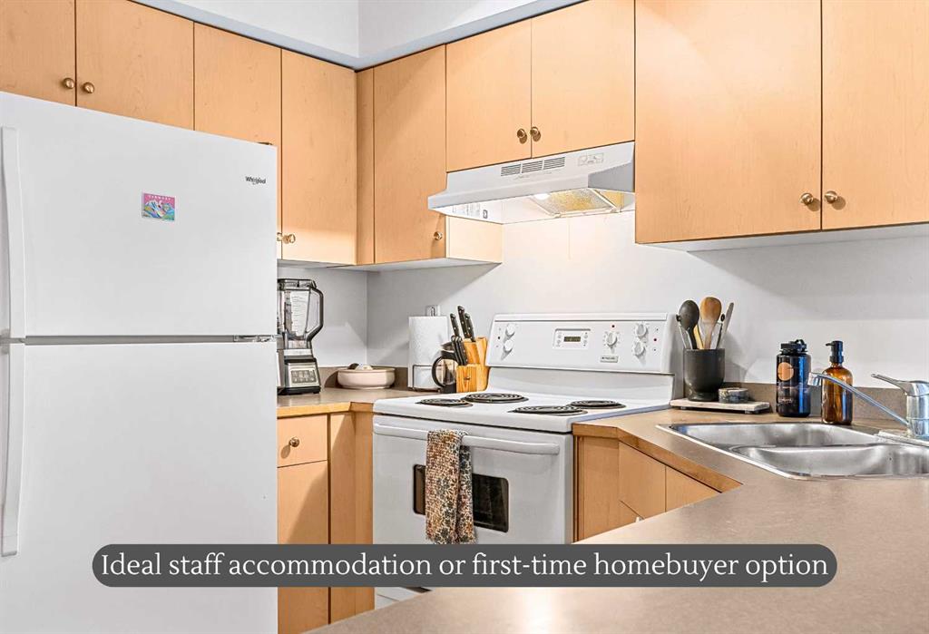 Bright, cozy, and full of natural light, 300–180 Kananaskis Way is a one-bedroom home that makes every square foot count. The open-concept layout connects the kitchen and living area, so you can cook, eat, or just enjoy a relaxing evening on the couch. The living room window fills the space with sunshine—perfect for morning coffee, an afternoon read, or just enjoying a cheerful spot to hang out. The bedroom sits just off the main living area, giving you a private retreat while staying part of the open flow. There’s also exterior storage for all your mountain gear so you can make the most of mountain life. Step outside, and you’re close to walking trails, playground, and an outdoor basketball court. Downtown Canmore is about a 10-minute walk, so you can grab coffee, browse shops, or enjoy a meal without needing to drive. The FREE Canmore transit system has a stop just steps away, making it easy & very affordable to explore the valley. This space works for a lot of people—first-time buyers, someone looking for practical employee housing, or anyone who wants a low-maintenance home with personality. It’s bright, functional, and ready for you to move in and start living the Canmore life. Now is the time to start enjoying the mountains.