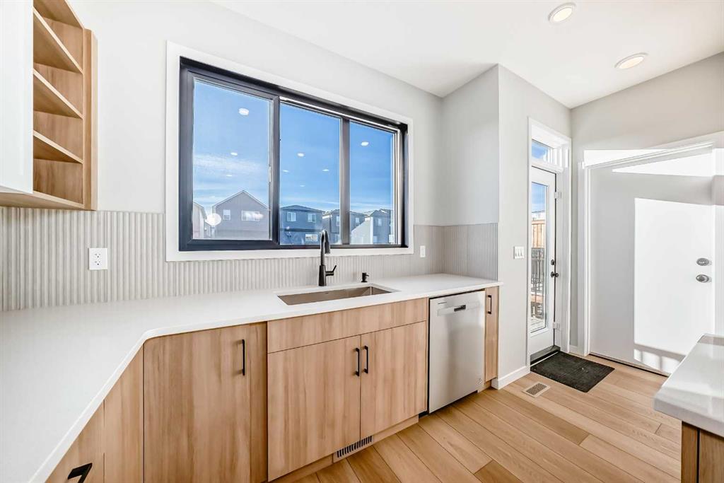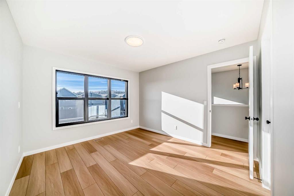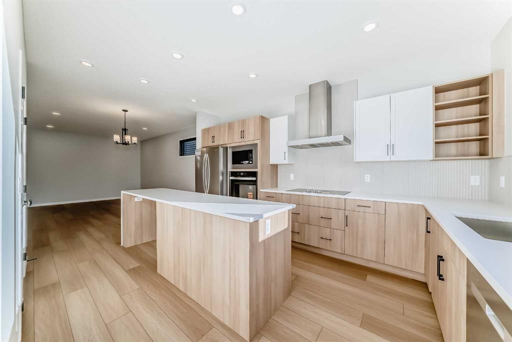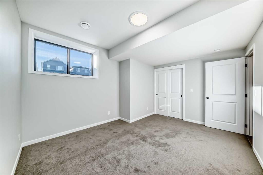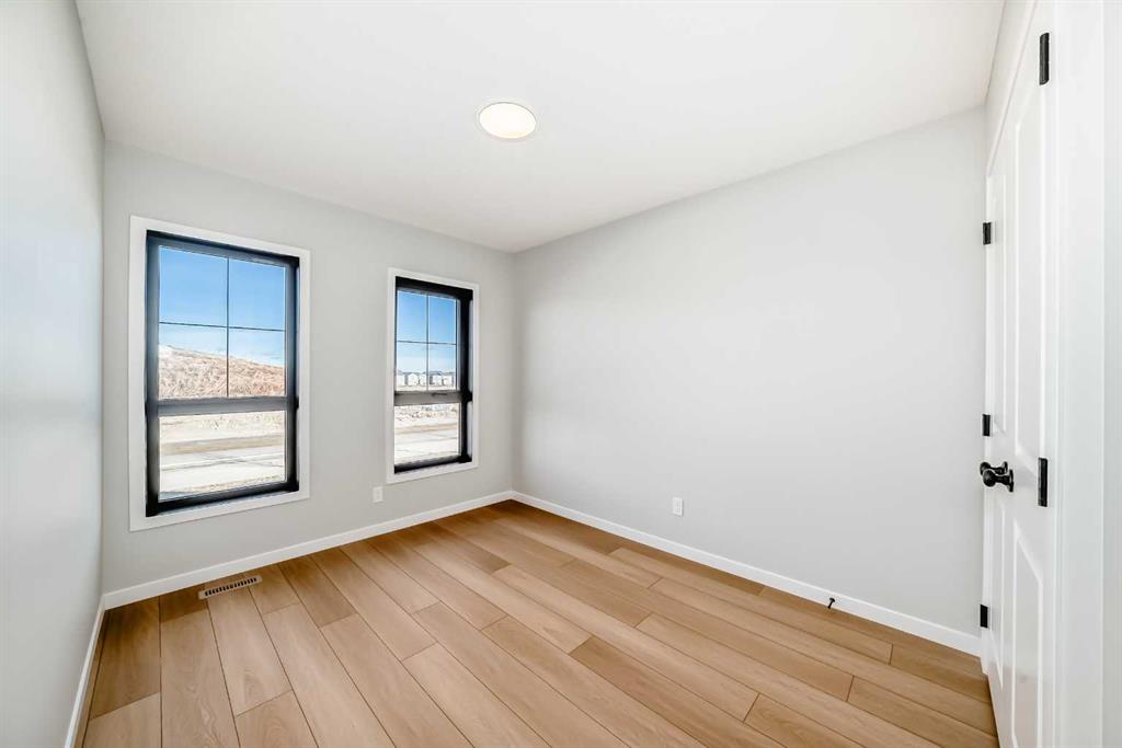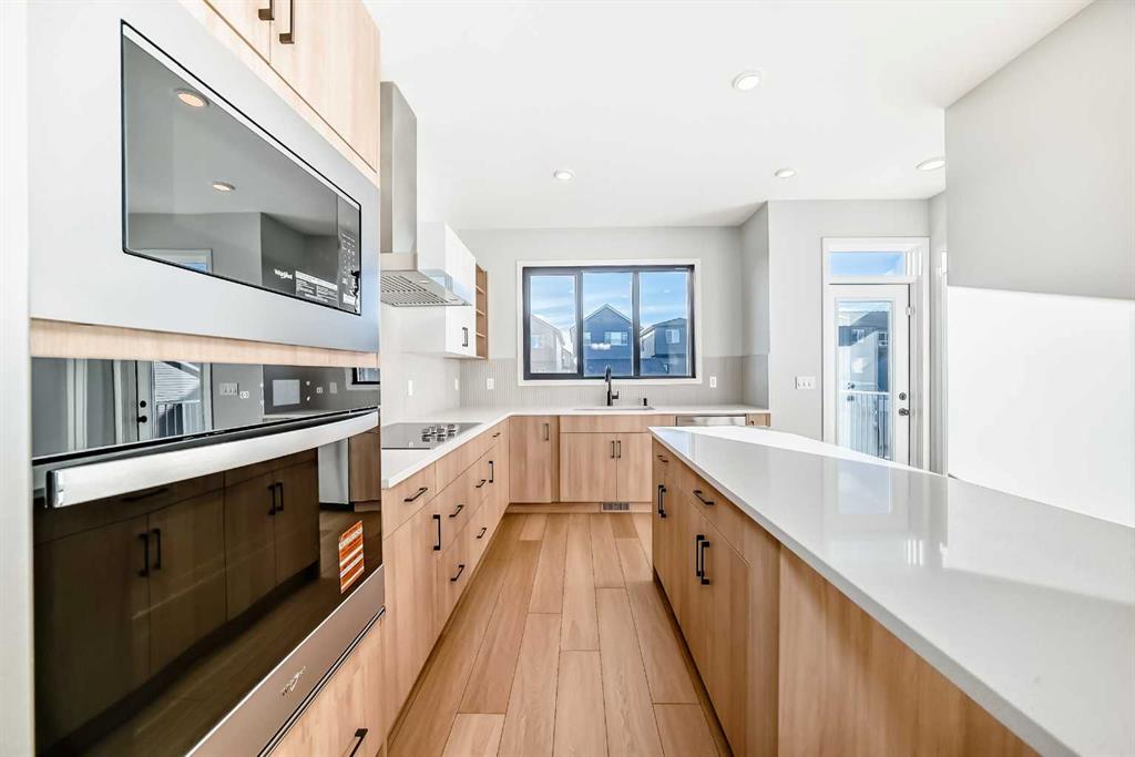 Welcome to this brand new, upgraded home in the vibrant community of Pine Creek! Known for blending nature, family living, and modern homes, Pine Creek offers scenic pathways, nearby parks, and easy access to city conveniences. This beautifully designed property features extensive upgrades throughout and is perfect for homeowners looking for a mortgage helper opportunity with its thoughtfully designed basement living space. The main floor showcases luxury vinyl plank flooring throughout the entire main and second floor, a spacious layout, and a gorgeous extended kitchen with two-tone cabinetry, waterfall island with additional cabinet storage, upgraded backsplash tiles, built-in appliances, and a modern upgraded hood fan. A larger walk-in pantry adds both convenience and storage. The home also features upgraded black window frames, adding a striking modern exterior and interior aesthetic. A versatile additional room on the main floor is complemented by a full bathroom with an upgraded standing shower and full wall tile finish, perfect for guests or multi-generational living. Upstairs, you’ll find spacious bedrooms and an upgraded ensuite featuring a beautifully finished standing shower with full wall tiles. The extended basement bedroom enhances the lower level’s functionality, making it ideal for extended family or rental potential. Both the main floor and basement kitchens feature stylish two-tone cabinetry, creating a cohesive and upscale look throughout. Additional highlights include: Upgraded washer and dryer sets for both main floor and basement, Upgraded stair carpet, Pressure-treated backyard deck with sleek black railings, Upgraded exterior stone detailing, Doorbell camera system for both the main entrance and basement entrance. This move in ready home combines style, functionality, and income potential in one of Calgary’s growing communities.