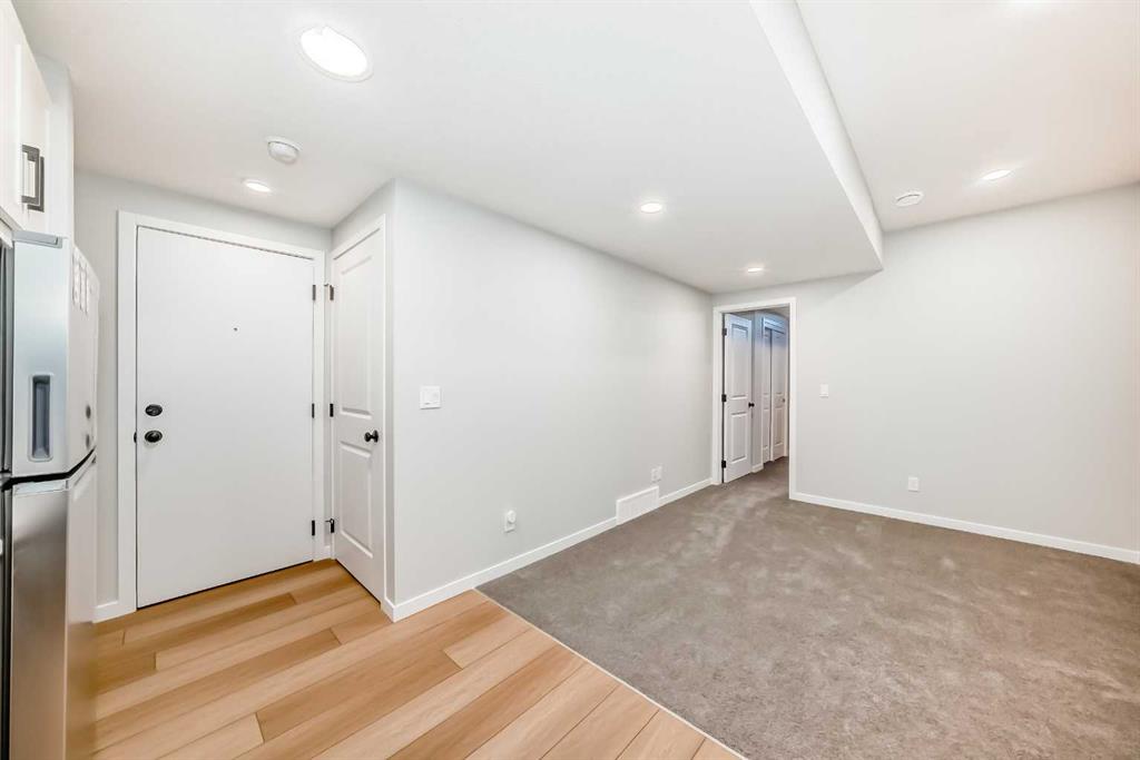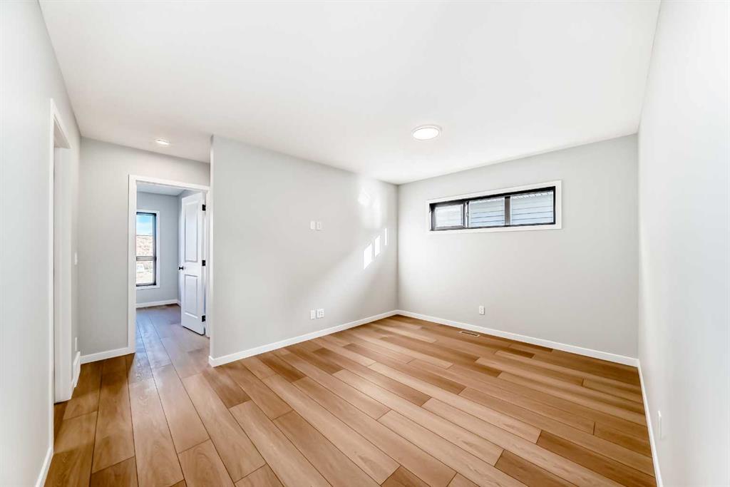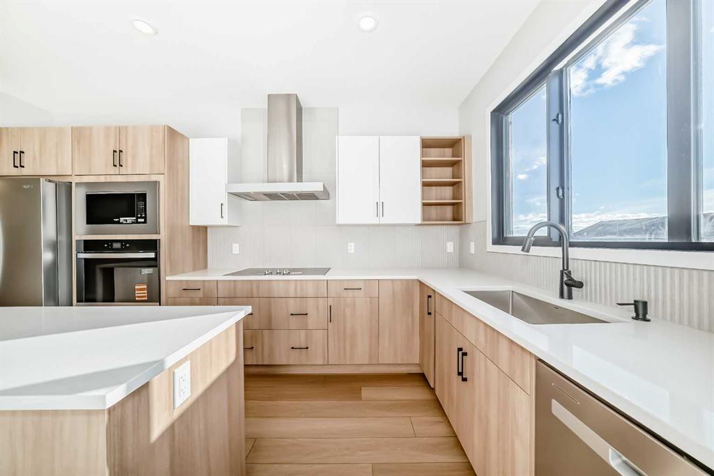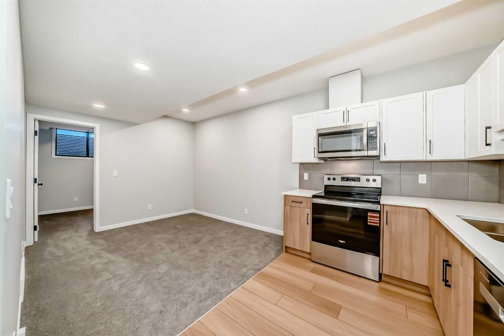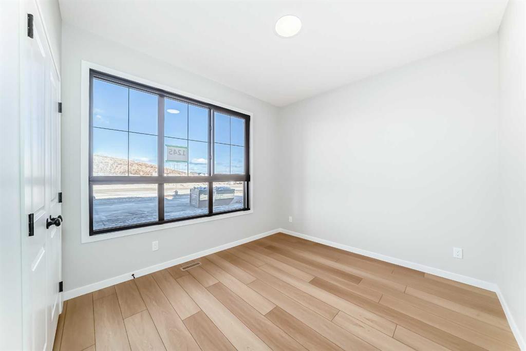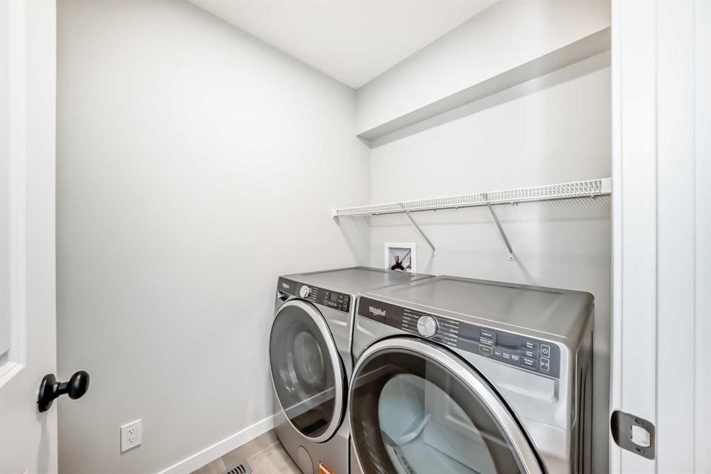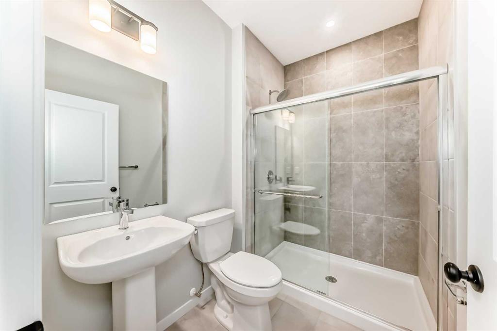Welcome to this brand new, upgraded home in the vibrant community of Pine Creek! Known for blending nature, family living, and modern homes, Pine Creek offers scenic pathways, nearby parks, and easy access to city conveniences. This beautifully designed property features extensive upgrades throughout and is perfect for homeowners looking for a mortgage helper opportunity with its thoughtfully designed basement living space. The main floor showcases luxury vinyl plank flooring throughout the entire main and second floor, a spacious layout, and a gorgeous extended kitchen with two-tone cabinetry, waterfall island with additional cabinet storage, upgraded backsplash tiles, built-in appliances, and a modern upgraded hood fan. A larger walk-in pantry adds both convenience and storage. The home also features upgraded black window frames, adding a striking modern exterior and interior aesthetic. A versatile additional room on the main floor is complemented by a full bathroom with an upgraded standing shower and full wall tile finish, perfect for guests or multi-generational living. Upstairs, you’ll find spacious bedrooms and an upgraded ensuite featuring a beautifully finished standing shower with full wall tiles. The extended basement bedroom enhances the lower level’s functionality, making it ideal for extended family or rental potential. Both the main floor and basement kitchens feature stylish two-tone cabinetry, creating a cohesive and upscale look throughout. Additional highlights include: Upgraded washer and dryer sets for both main floor and basement, Upgraded stair carpet, Pressure-treated backyard deck with sleek black railings, Upgraded exterior stone detailing, Doorbell camera system for both the main entrance and basement entrance. This move in ready home combines style, functionality, and income potential in one of Calgary’s growing communities.
