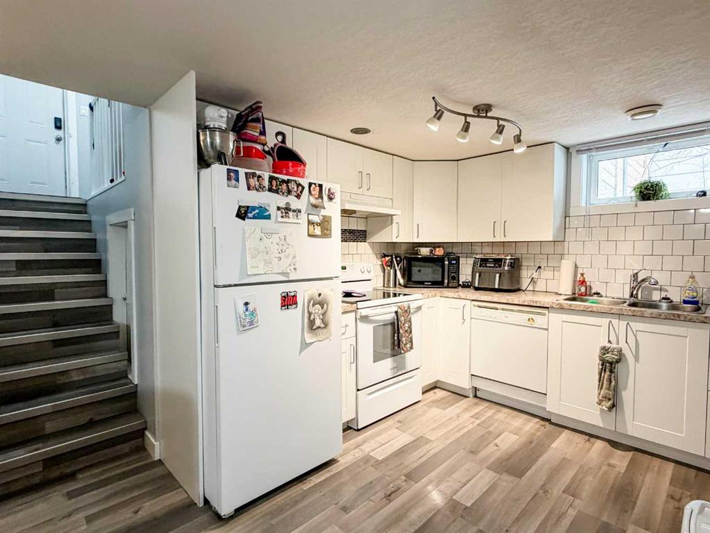 Updated bungalow with a legal basement suite. The upper unit features 2 bedrooms, a full bathroom, and a bright kitchen with ample cabinetry and counter space. The lower suite offers 2 bedrooms and a 3-piece bathroom, kitchen and living room. Both units have separate entrances, separate yards, and separate laundry, providing excellent privacy for tenants or extended family.