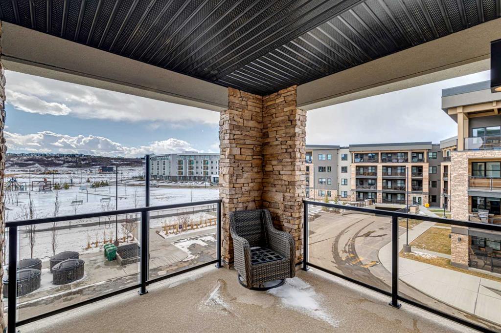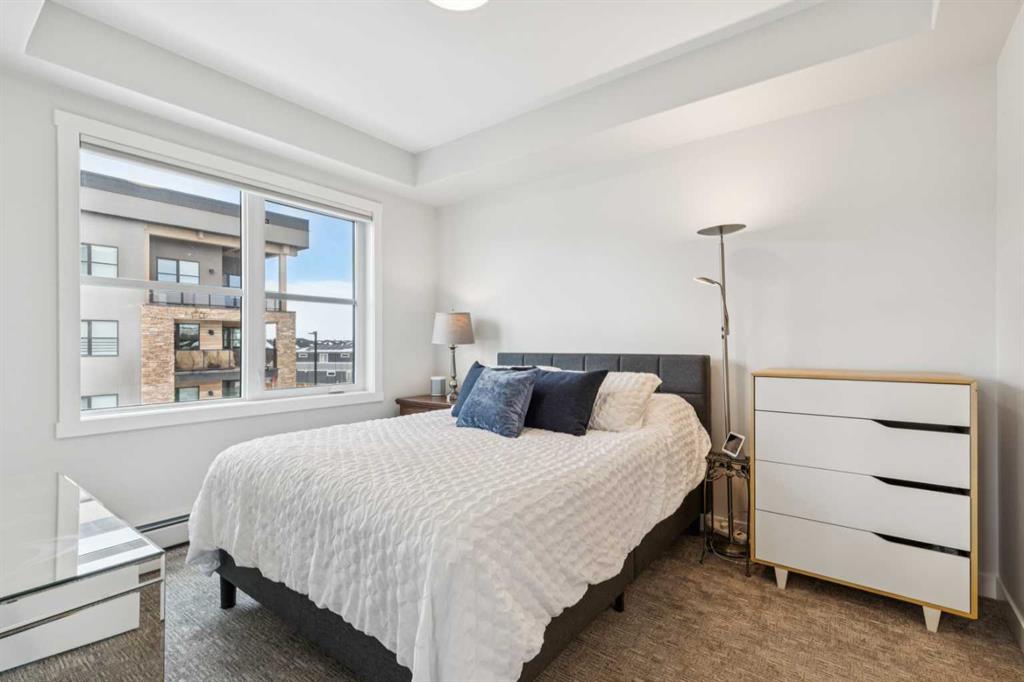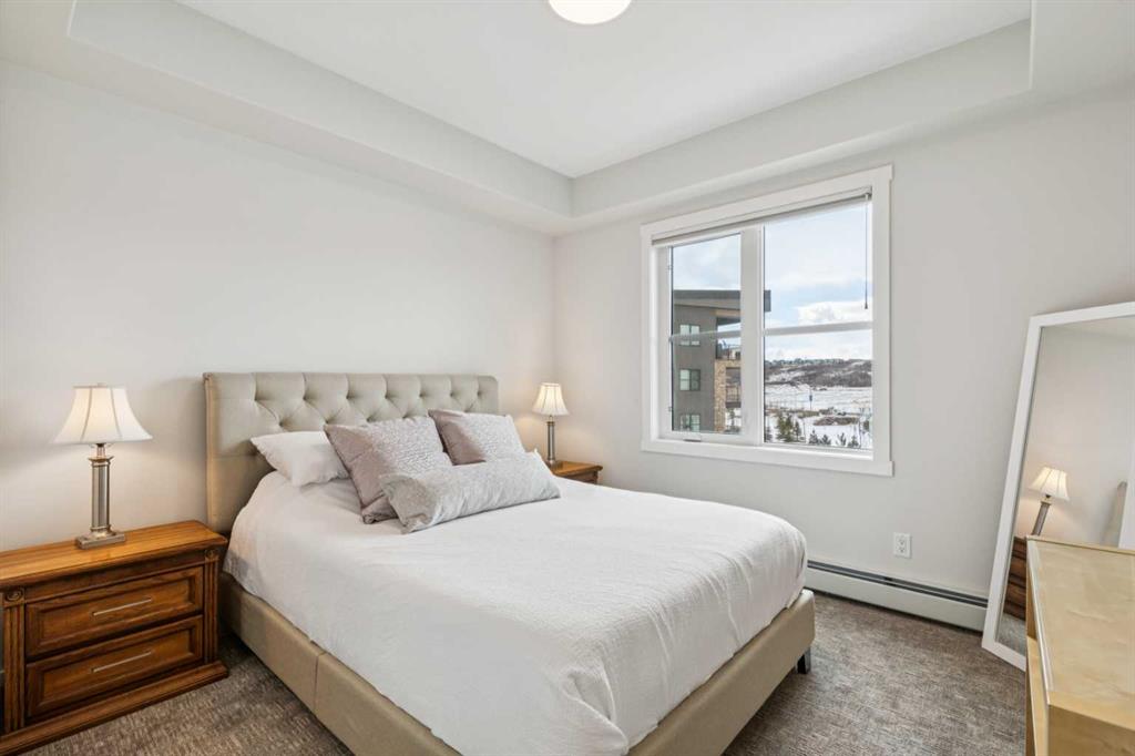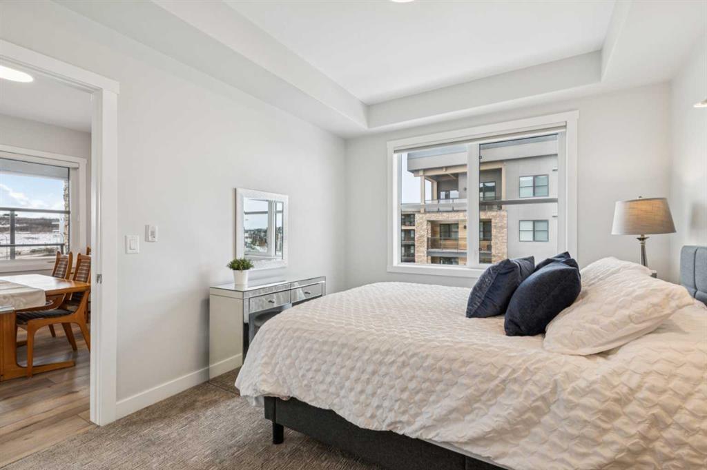 Welcome to Bow 360 in the vibrant and sought-after community of Wolf Willow, where this beautifully appointed, air-conditioned corner-unit condo offers one of the largest and most desirable floorplans in the complex. From the moment you step inside, you’ll appreciate the bright, open-concept design highlighted by expansive windows that flood the home with natural light and showcase lovely views of surrounding parks and green spaces. The elegant kitchen is both stylish and functional, featuring crisp white cabinetry, sleek quartz countertops, durable vinyl plank flooring, and an impressive oversized island with seating—perfect for casual dining, morning coffee, or gathering with friends and family. The kitchen flows seamlessly into the generous living room and a separate dining area spacious enough for a full dining suite, creating an inviting space ideal for both comfortable everyday living and sophisticated entertaining. Just off the dining area, step onto the spacious corner deck—an ideal outdoor retreat with gas bib for BBQing and overlooking the surrounding community green space and parks, including the 'Woof Willow Dog Park'. This thoughtfully designed home offers two spacious bedrooms, including a refined primary suite complete with its own private ensuite bathroom, along with a second full four-piece bathroom that provides comfort and convenience for guests or family. A private den with elegant French doors adds versatility and charm, making it the perfect space for a stylish home office, reading room, or flex area. Completing the package, this exceptional unit includes two titled parking stalls and an additional paid storage unit, providing outstanding convenience and valuable extra space. Theres also an additional tire storage room in the building available on a rental basis and subject to availability. Located just moments from the Bow River and its extensive network of scenic walking and cycling pathways, residents of Wolf Willow enjoy an incredible balance of urban convenience and access to nature, with beautiful river valley landscapes, parks, and outdoor recreation right outside your door while still being minutes from everyday amenities, shopping, dining, and major commuter routes—making this a rare opportunity to own a spacious, light-filled, and elegantly finished home in one of Calgary’s most exciting riverside communities.