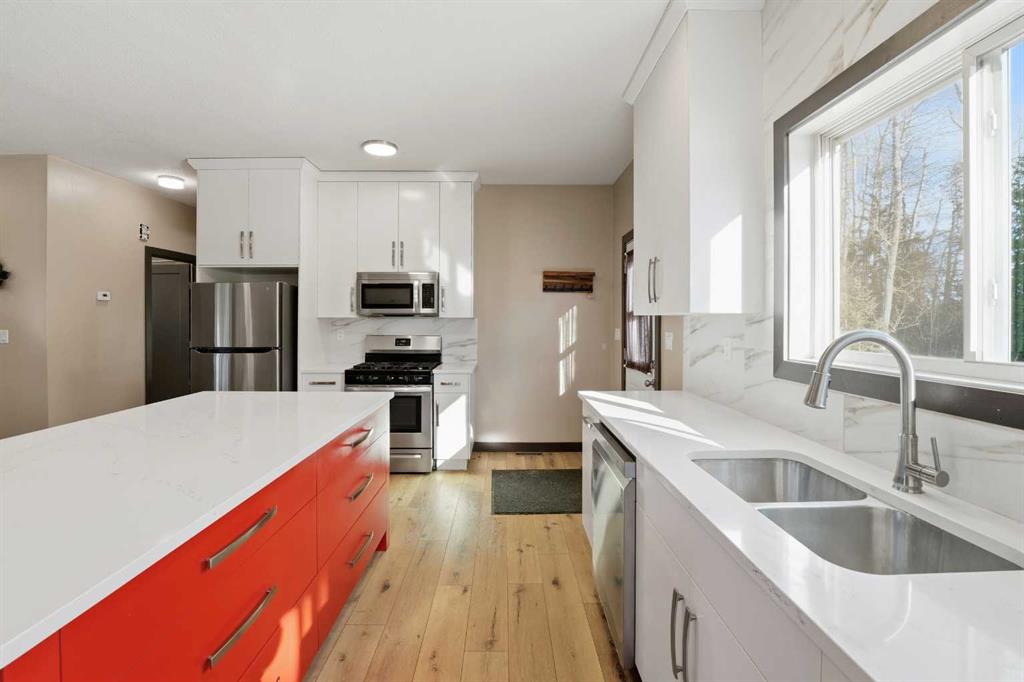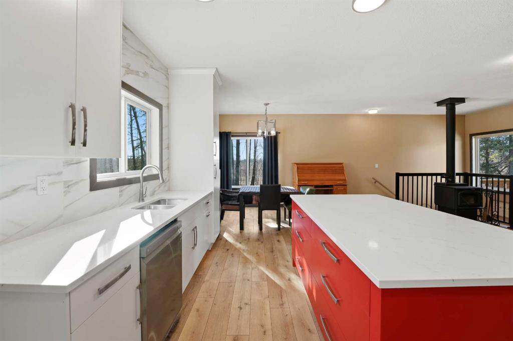 Morning light filters through the trees as you wrap your hands around a warm mug of coffee. The only sound is the soft rustle of leaves… and maybe a moose wandering quietly past your covered porch. Out here, privacy isn’t a feature — it’s a way of life. This thoughtfully crafted home was designed for both comfort and connection. The heart of the main floor is a stunning modern kitchen, anchored by an expansive island that naturally gathers family and friends. A gas range waits for the chef at heart, while the cozy wood-burning stove creates the kind of warmth you can feel long after the fire fades. It’s the kind of space where stories are shared, meals linger a little longer, and winter evenings feel just right. The main floor offers effortless living, with a peaceful primary retreat, a welcoming guest room, and a full bath with convenient laundry — all designed with function in mind. Downstairs, you’ll find two additional spacious bedrooms, a cold storage room, and a large area already plumbed and ready for a second bathroom. With in-floor heat roughed in as well, the lower level offers flexibility, comfort, and opportunity to truly make it your own. Step outside and the magic continues. Mature trees surround you, lush garden spaces invite you to grow your own harvest, and chicken coops add a touch of charming self-sufficiency. It’s quiet. It’s private. It’s the kind of property that feels like a deep breath at the end of a long day. If your lifestyle goal includes space, serenity, and a little wildlife wandering by — this might just be it.