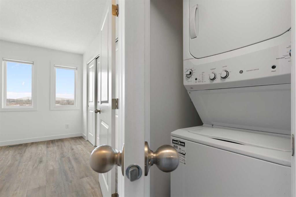 Discover a comfortable and modern lifestyle in 1701 -24 Rivercrest Drive, Spanning over 1500 square feet, this inviting townhome boasts Mountain views! and a bright and open layout, perfectly suited for both entertaining guests and the rhythm of everyday living. The heart of this home is a thoughtfully designed central kitchen space. Sleek two-tone cabinetry with soft-close drawers and a complete stainless steel appliance package. With ample cabinet space and a convenient pantry, this central hub, illuminated by stylish pendant lighting, seamlessly connects the living areas, Quartz counters and the extra windows, a hallmark of the end unit, offers tons of natural light, This well-appointed townhome features three comfortable bedrooms and 2.5 bathrooms. A versatile flex space on the lower level presents opportunities for a home office. The primary suite, located on the third level, offers dual closets and bright, large windows and great viewsThis level also conveniently houses a laundry area and a full four-piece bathroom. Adding to the appeal is an oversized, fully insulated single-car garage with the practical advantage of dual access doors, offering exceptional flexibility for storage or a workshop. Just steps away from local shops, picturesque pathways, and the serene Bow River. Bow Valley High School is within walking distance, and a future school site is conveniently located next door. With local transit stop within feet of the front door. Accessing Calgary for work or leisure and escaping to the majestic mountains for weekend adventures is effortless. a terrific blend of contemporary comfort, convenience, and a sought-after Cochrane address.