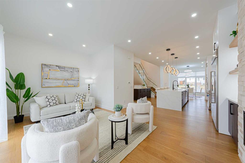 Welcome to this stunning semi-detached 2 storey in the highly sought-after community of Montgomery just minutes from the UofC, Foothills Hospital, Market Mall, Bow River, and a variety of local shops & restaurants! With over 2000sqft, this home is built with quality, luxury and stylish, and combines of convenience and modern living. Steps inside to discover a thoughtfully designed layout with high-end finishes throughout. The main floor features an airy open-concept design, highlighted by a chef’s kitchen with a large island, a bright and inviting family room that leads to the balcony with mountain views! Up along the unique glass railing on stairway, you will find 3 grand sized bedrooms, a laundry room and 2 full bathrooms. The primary suite is a true retreat, packed with mountain views, a walk-in closet and a luxurious ensuite featuring a double vanity, walk-in shower, and a soaking tub. Both main and upper floor has 10ft ceilings! The walk-out basement is a self contained legal suite(approved with City of Calgary), offering a large recreation/living area, a full kitchen, two bedrooms, and a full bathroom—perfect for your extended family or rental potential! Extras of this home including AC, KitchenAid appliances package, all solid interior doors, intelligent toilet, in-floor heating in basement & heated floors in master ensuite, sunny south facing balcony & backyard...all finished with thoughtfully DESIGNER TOUCHES! Don't miss this gem! **Open house Sat & Sun April 11th/12th 1-3pm**