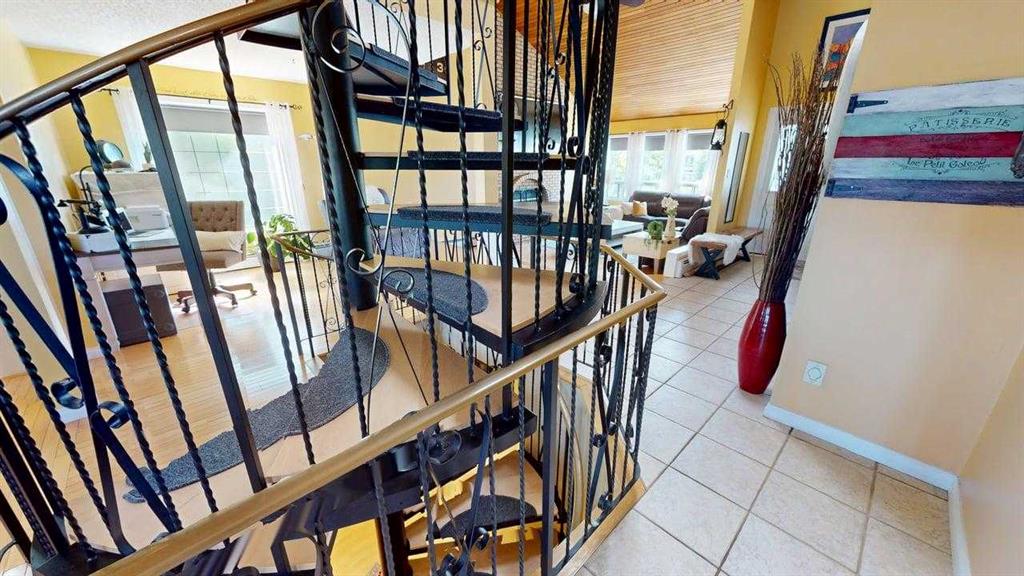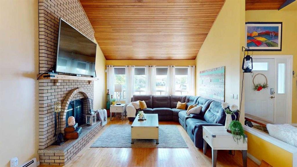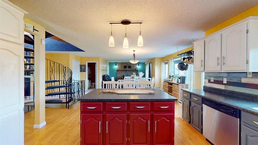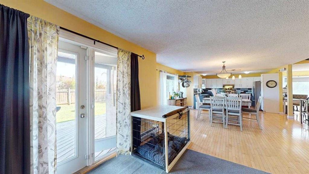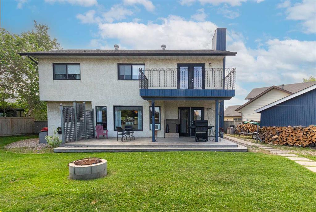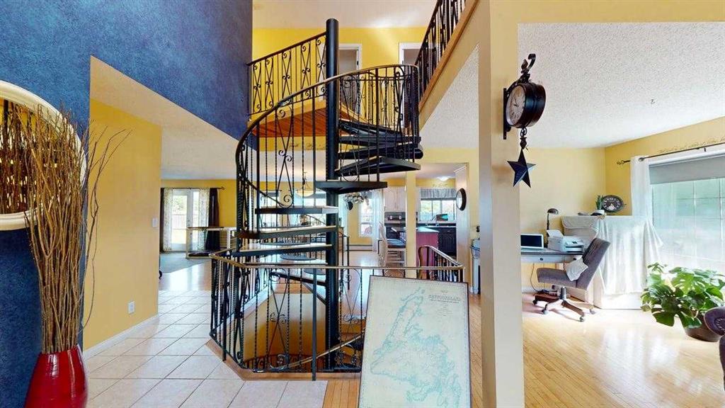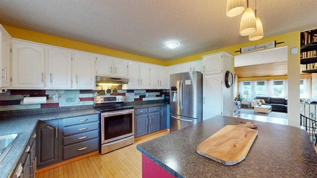 Beautiful & Unique Family Home – Designed for Comfort and Functionality! Welcome to this spacious and character-filled home that offers everything your family needs and more. With no carpet throughout—featuring hardwood, ceramic tile, and laminate flooring—this home is both stylish and low-maintenance. The heated double garage provides convenience year-round, while the inviting open-concept main floor is perfect for everyday living and entertaining. Enjoy the vaulted ceiling and wood-burning fireplace in the bright living room, which flows seamlessly into a versatile formal dining room or home office. The kitchen is a chef’s dream, with plenty of cabinetry, a central island with storage and a breakfast overhang, and views of both the dining area and the cozy family room—complete with a second wood-burning fireplace. The main floor also includes a 2-piece powder room and laundry room for added convenience. Upstairs, the primary bedroom features a private balcony with scenic views, a large closet, and a luxurious 5-piece ensuite with jetted tub and dual sinks. Two more generously sized bedrooms, a main 5-piece bathroom, and a bonus loft area ideal for a reading nook, play space, or office complete the second level. The finished basement offers even more space with a rec room, a fourth bedroom with a walk-in closet, a 3-piece bathroom, a sauna, and a huge storage room that could easily be converted into additional living space. Step outside to an enormous fenced and landscaped yard that’s ready for family fun. There’s a large deck, oversized shed, and plenty of room for a garden, trampoline, pool, and more—truly a backyard with endless possibilities! This unique and well-loved home is a rare find—offering both space and flexibility for families of all sizes.
