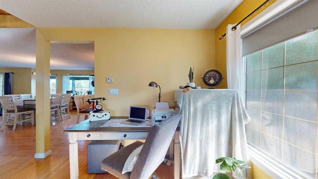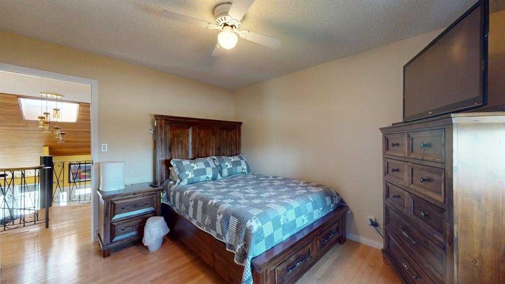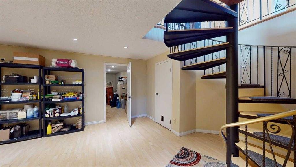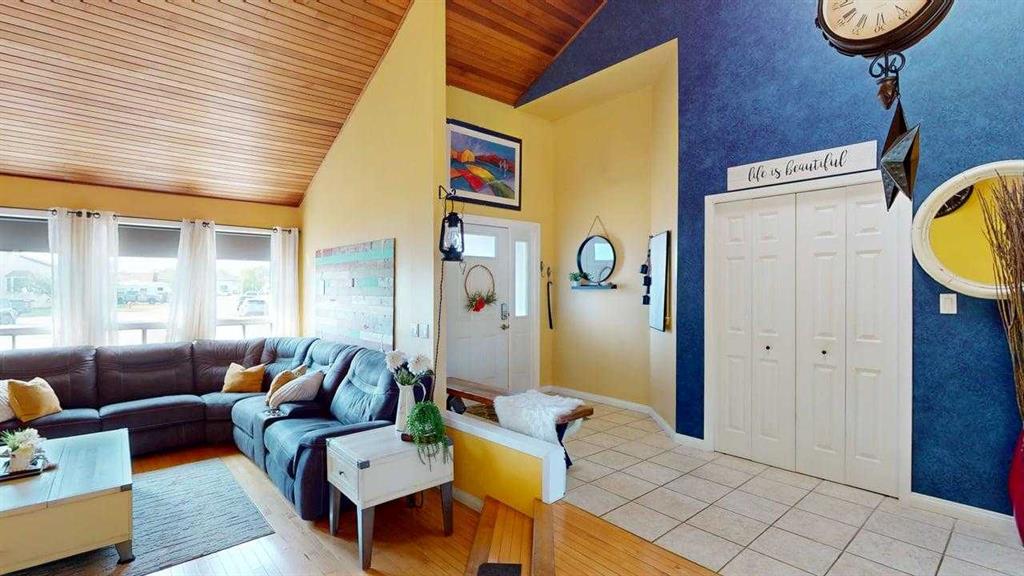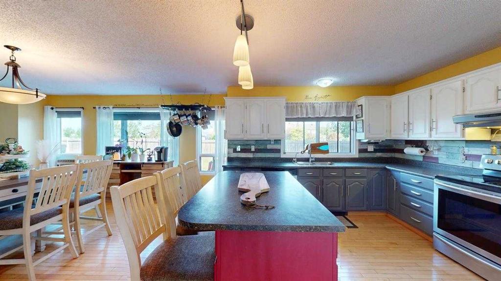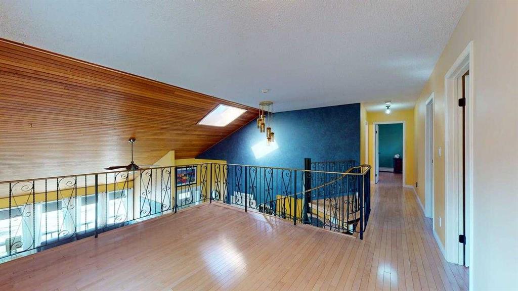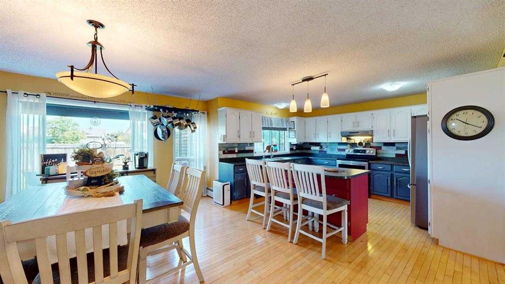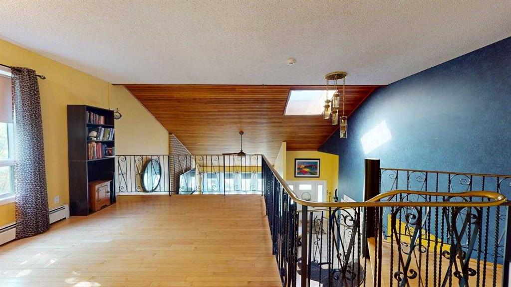 Beautiful & Unique Family Home – Designed for Comfort and Functionality! Welcome to this spacious and character-filled home that offers everything your family needs and more. With no carpet throughout—featuring hardwood, ceramic tile, and laminate flooring—this home is both stylish and low-maintenance. The heated double garage provides convenience year-round, while the inviting open-concept main floor is perfect for everyday living and entertaining. Enjoy the vaulted ceiling and wood-burning fireplace in the bright living room, which flows seamlessly into a versatile formal dining room or home office. The kitchen is a chef’s dream, with plenty of cabinetry, a central island with storage and a breakfast overhang, and views of both the dining area and the cozy family room—complete with a second wood-burning fireplace. The main floor also includes a 2-piece powder room and laundry room for added convenience. Upstairs, the primary bedroom features a private balcony with scenic views, a large closet, and a luxurious 5-piece ensuite with jetted tub and dual sinks. Two more generously sized bedrooms, a main 5-piece bathroom, and a bonus loft area ideal for a reading nook, play space, or office complete the second level. The finished basement offers even more space with a rec room, a fourth bedroom with a walk-in closet, a 3-piece bathroom, a sauna, and a huge storage room that could easily be converted into additional living space. Step outside to an enormous fenced and landscaped yard that’s ready for family fun. There’s a large deck, oversized shed, and plenty of room for a garden, trampoline, pool, and more—truly a backyard with endless possibilities! This unique and well-loved home is a rare find—offering both space and flexibility for families of all sizes.