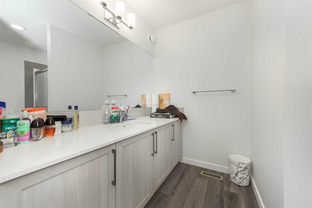 Welcome to 399 Magnolia Drive SE, a modern 2storey home with a legal basement suite located in the heart of Mahogany, one of Calgary’s most sought after lake communities. Built in 2023, this well-designed property offers 5 bedrooms and 3.5 bathrooms with 1,749 sq ft RMS above grade, plus a fully finished basement with separate exterior entrance. The main home features an open concept layout with quartz countertops, a kitchen island, vinyl plank flooring, a dedicated main-floor office, and a bright dining and living space ideal for everyday living. Upstairs, you’ll find a spacious primary bedroom with walk in closet and 3 piece ensuite, two additional bedrooms, a full bath, and upper level laundry for convenience. The legal basement suite includes 2 bedrooms, a full kitchen, 4-piece bath, in-suite laundry, and a private entrance, making it an excellent mortgage helper or long term investment. Enjoy rear alley access with parking pad, a private backyard, and proximity to Mahogany Lake, beaches, the Mahogany Beach Club, parks, playgrounds, schools, shopping, restaurants, and extensive walking & bike paths. Tenant-occupied property , ideal for investors or buyers comfortable assuming tenancy as the basement tenant is willing to stay. A rare opportunity to own a nearly new home with a legal suite in a premier lake community.