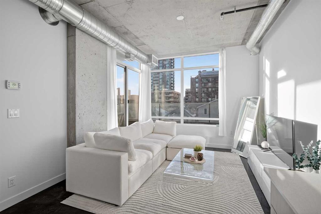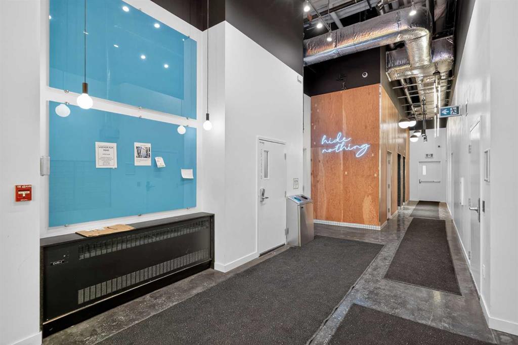 Welcome to NUDE by Battistella, a building designed for those who appreciate authenticity and architectural grit. This isn’t your cookie-cutter condo; with its open-concept industrial ceilings, exposed ductwork, and sleek polished concrete floors, this one-bedroom unit offers a New York loft aesthetic right in the heart of Calgary’s Beltline. Step inside to an airy, sun-drenched sanctuary that is a rare find. Located on the second floor, this unit boasts an oversized, south-facing balcony that acts as your own private urban terrace. Whether you are hosting a summer BBQ or soaking up the afternoon sun, this massive outdoor extension of the living space is a true game-changer. The minimalist kitchen features stainless steel appliances, a gas cooktop, and beautiful light wood cabinetry. Practicality meets style with in-suite laundry, central air conditioning, and floor-to-ceiling windows. This unit comes complete with its own underground titled parking stall and an assigned storage locker for all your extra gear. NUDE is a community designed for the modern professional, offering a penthouse resident lounge and an expansive rooftop patio with 360-degree city views. Guest logistics are a breeze with underground visitor parking stalls—a rare luxury for downtown living. This is a pet-friendly building where both dogs and cats are welcome with registration and board approval, and it even features a convenient dog wash station. For the urban commuter, there is secure bicycle storage and a dedicated maintenance workshop. Boasting a near-perfect Walk Score, you are just blocks from the vibrant shops and restaurants of 17th Ave SW. Experience the perfect blend of raw industrial design and premium urban convenience in the ultimate Beltline statement piece.