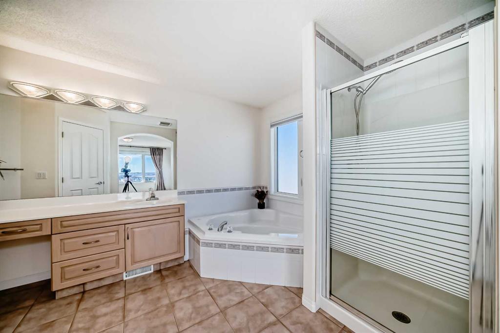Offering ~3,200 sq. ft. of developed living space in a well-established NW Calgary community Hamptons. This meticulously maintained move-in-ready home sits on a premium corner lot with newly painted stucco siding and recently upgraded triple-glaze windows with 25-year warranty. The main floor features open-to-above ceilings, large windows for natural light, and an open-concept layout. The kitchen includes granite countertops, raised eating bar, and walk-in pantry, and connects to the formal dining room, breakfast nook, and living room with fireplace. Upstairs offers a primary bedroom with walk-in closet and 4-piece ensuite with jetted corner tub, plus two additional bedrooms and a full bathroom. The fully developed walk-out basement features a large family room with second fireplace, ceramic tile flooring, and two additional rooms suitable for guests or office use. A full-sized 8-ft rich cherry wood pool table is included. Outdoor space includes a maintenance-free upper deck with glass railings and gorgeous views, plus a lower patio with built-in wood pergola and lattice trellis, designed for outdoor seating and BBQs. The home is close to schools, parks, golf, shopping, and major routes.