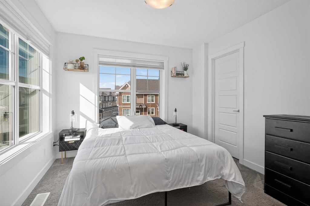 Forget about old and tired homes in areas of the city you don’t like, 103 Cranbrook Walk is the PET FRIENDLY, MODERN & sleek 2 bedroom 2.5 bathroom, LOW CONDO FEES, END UNIT TOWNHOME with a DOUBLE ATTACHED GARAGE you have been waiting for! Are you not tired of seeing overpriced & outdated interiors hit the market over and over again? We hear you! This home is perfect for the single professional —or couple— that values TURNKEY, LIKE-NEW build quality, proximity to nature, a STUNNING LAYOUT, and proximity to all amenities & services. Inside, you will find an open floor plan layout designed to impress; from the incredible vaulted ceilings to the modern & bright kitchen equipped with quartz countertops across all surfaces and all the stainless steel appliances, this home is missing nothing. Whereas you are having people over for dinner or doing a little work from home, you will enjoy the peace & quiet right from your dining room; and the well illuminated and sizeable living room perfectly strikes the balance between brand-new modernity yet right-at-home feeling. Upstairs, a spacious primary bedroom featuring its own oversized walk-in closet as well as a super modern 4 piece bathroom hits every note just right. And did we mention that right across the hallway you have YET ANOTHER PRIMARY BEDROOM? That is right, this is one of the most useful floorpans in the neighbourhood, with both upstairs bedrooms having their own ensuite! Also, say goodbye to having to go up and down several flights of stairs to take care of your clothes because your future laundry room is conveniently upstairs! Finally, don’t forget about the large, DOUBLE ATTACHED GARAGE! Yes, you can forget about scraping snow off your vehicle, and sleep easy knowing your car and your belongings are safely stored indoors. This super modern, LOW CONDO FEES townhome is looking for a new owner who wants it all for them and their family: blocks away from walking paths, green spaces, and the Bow River; minutes away from schools & shopping; and easy access around the city with Stoney Trail taking you wherever you want to go! This unit shows 10/10 in photos and even better in person. Call your REALTOR® of choice and book a showing today!