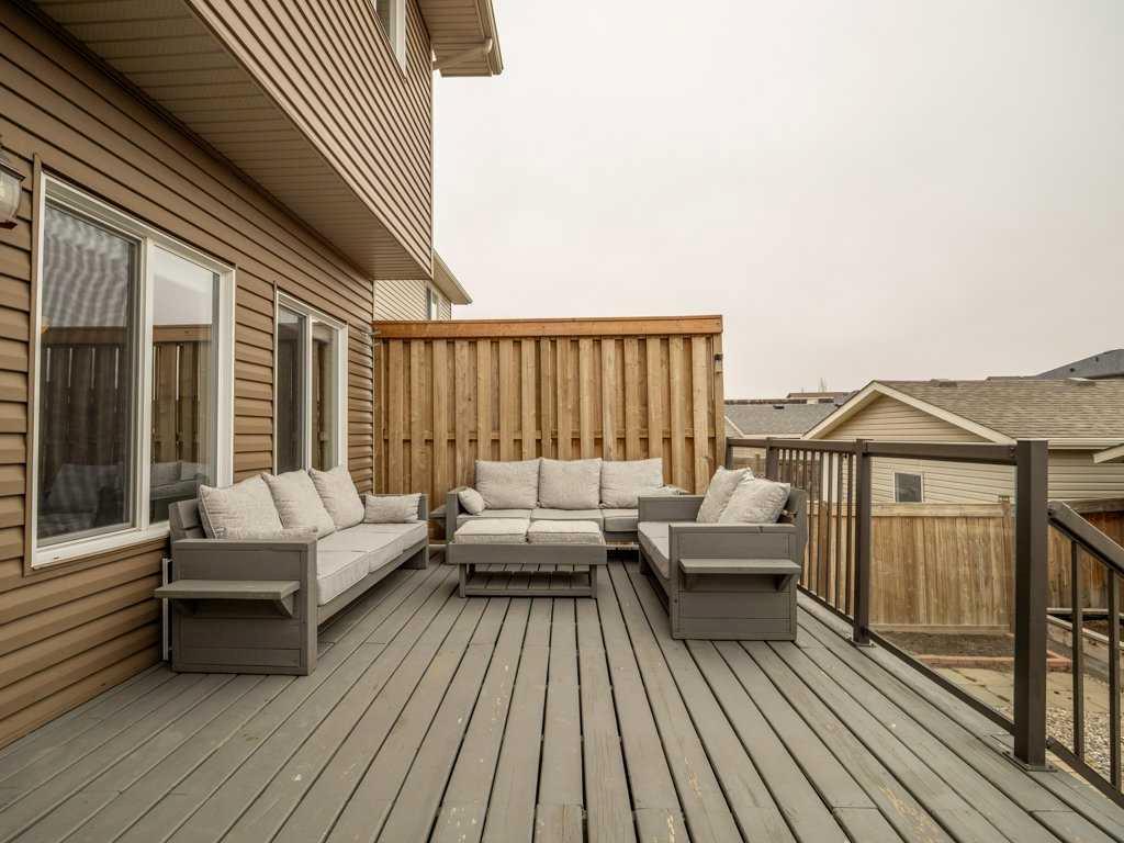 Welcome to this beautifully built Ashcroft home located in the highly desirable community of Copperwood in Lethbridge, Alberta. Offering 5 bedrooms and 3.5 bathrooms, this thoughtfully designed home features a unique layout that stands out from typical floor plans while providing excellent functionality for family living. One of the standout features of this location is its safe and convenient access to the nearby elementary school, which can be reached entirely by sidewalk from the home without needing to cross any roads, making it especially appealing for families with young children. The property is also close to parks, walking paths, shopping, and the nearby YMCA. The main level features a bright open-concept design ideal for both everyday living and entertaining. The sunken living room creates a warm and inviting space with built-in shelving and a cozy gas fireplace. The kitchen is designed for those who enjoy cooking and hosting, featuring new appliances, additional Carefree cabinetry, a dedicated coffee bar, and expanded storage solutions that add both style and functionality. Step outside to the oversized 20’ x 12’ deck, perfect for relaxing or entertaining. The deck includes a privacy wall, built-in flower and garden boxes, and practical under-deck storage that maximizes outdoor usability. The 20’ x 22’ detached garage is insulated, finished with particle board, and equipped with 110-volt power, making it ideal for parking, storage, or use as a workspace. The basement was fully developed in 2018, adding excellent versatility with two additional bedrooms, a summer kitchen, and extra living space that can be ideal for extended family, guests, or potential rental use. The basement flooring was upgraded with DMX One Step 2.0 LVT underlayment, providing waterproof protection and improved comfort. Additional upgrades include Rockwool Safe’n’Sound stone wool insulation, which is non-combustible, water-resistant, fire-resistant, and provides excellent sound absorption. This well-maintained and thoughtfully upgraded home offers quality construction, excellent storage, and a fantastic family-friendly location in Copperwood.