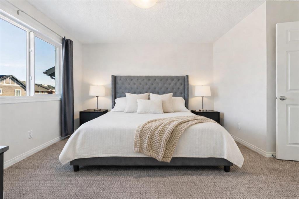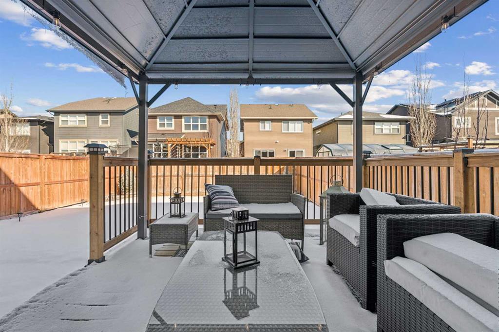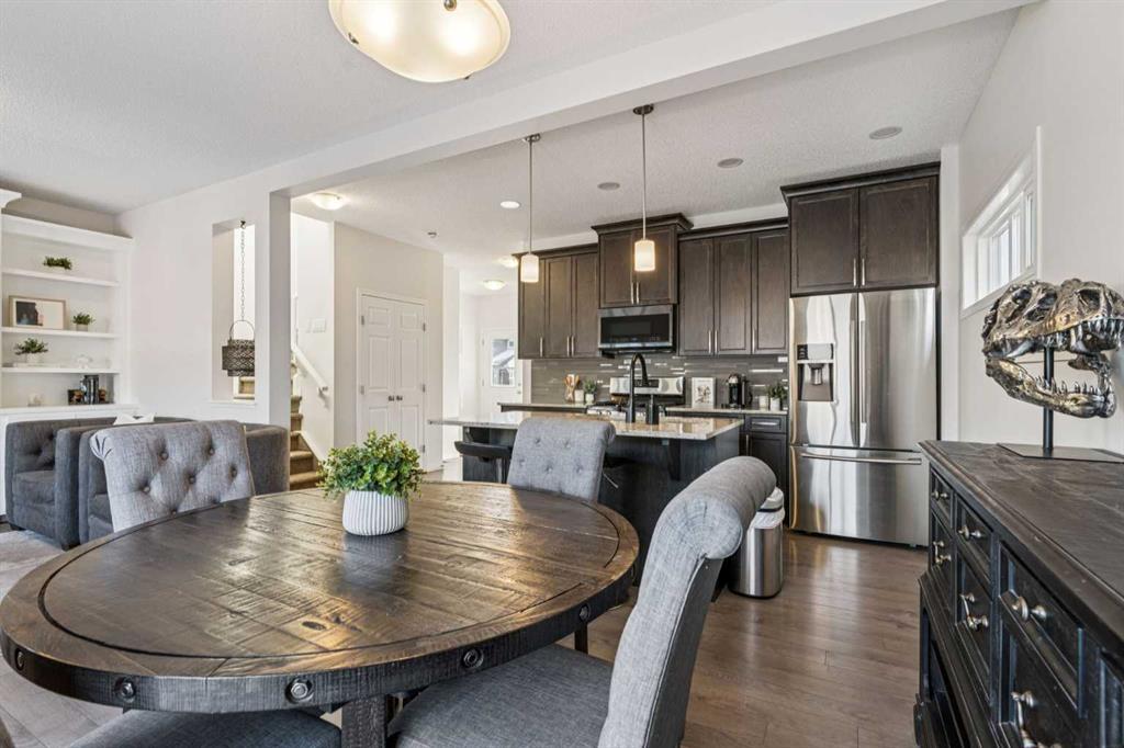 Welcome to 58 Buckskin Way, where modern comfort meets everyday living. Built in 2017, this beautifully appointed two-storey home in Cochrane’s sought-after Heartland community offers warmth, functionality, and timeless style. Step inside to a thoughtfully designed main floor where comfort and style blend seamlessly. The kitchen is both elegant and practical, featuring GRANITE COUNTERTOPS, a GAS RANGE, and clean contemporary finishes. The dining area flows effortlessly into a bright and inviting living room highlighted by a striking CUSTOM BUILT-IN TV MEDIA UNIT that frames the electric fireplace and custom TV niche. Upstairs, you’ll find an OVERSIZED BONUS ROOM perfect for movie nights, a play area, or a quiet retreat. The convenient UPPER-LEVEL LAUNDRY ROOM adds everyday ease. The spacious PRIMARY SUITE offers a private escape with a five-piece ensuite complete with DOUBLE VANITY and a large WALK-IN CLOSET. Two additional bedrooms and a full bathroom provide flexibility for growing families, guests, or a home office. Outside, the FULLY FENCED and beautifully LANDSCAPED BACKYARD is ready for summer evenings and weekend gatherings. The stunning TWO-TIERED DECK WITH GAZEBO creates the perfect setting for entertaining, relaxing, and enjoying Cochrane’s fresh mountain air. Nestled near scenic walking paths, playgrounds, and breathtaking mountain views, this home offers the perfect balance of peaceful living and city convenience in one of Cochrane’s most desirable communities.