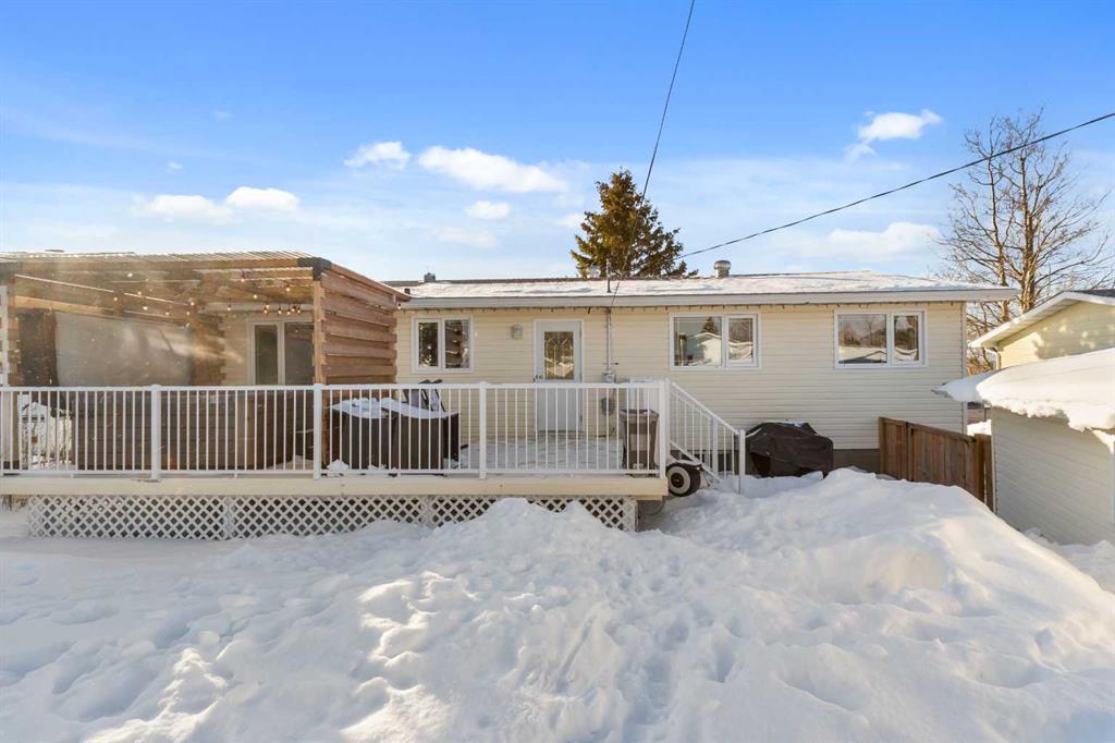 Located high on Southview Ave with southern views and tall ceilings, this clean and well-maintained 1,196 sq. ft. bi-level offers a move-in-ready experience for a family. Built in 1977, the home features 4 bedrooms, 2.5 bathrooms, including a recently updated basement bathroom and a kitchen with solid oak cabinetry and two year old appliances (fridge, microwave & dishwasher). Significant updates were completed roughly 10 years ago, including the shingles, windows, furnace, and hot water tank, making this a low-maintenance property that requires little to no immediate work. Outside, the deck features a Vita Spa hot tub with a privacy screens, perfect for cold winter nights. A shed for extra storage and a small detached garage featuring a newer overhead door. With easy access to Crown land for off-roading and hiking, and proximity to local amenities like the skate park, playground, and hockey rink, this home provides a comfortable lifestyle in a great community.