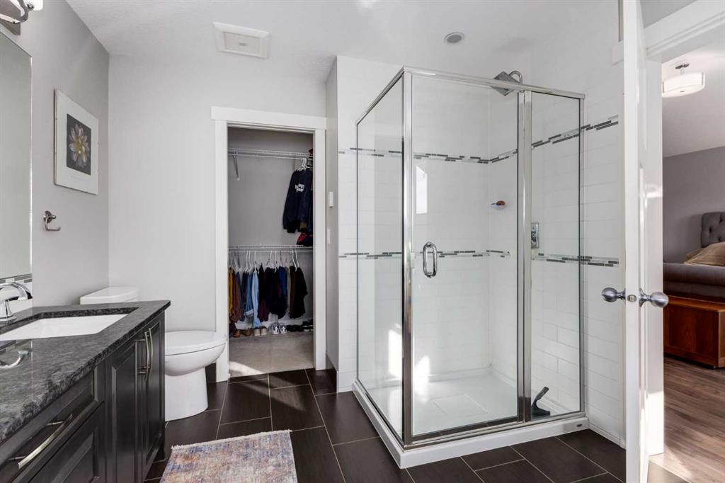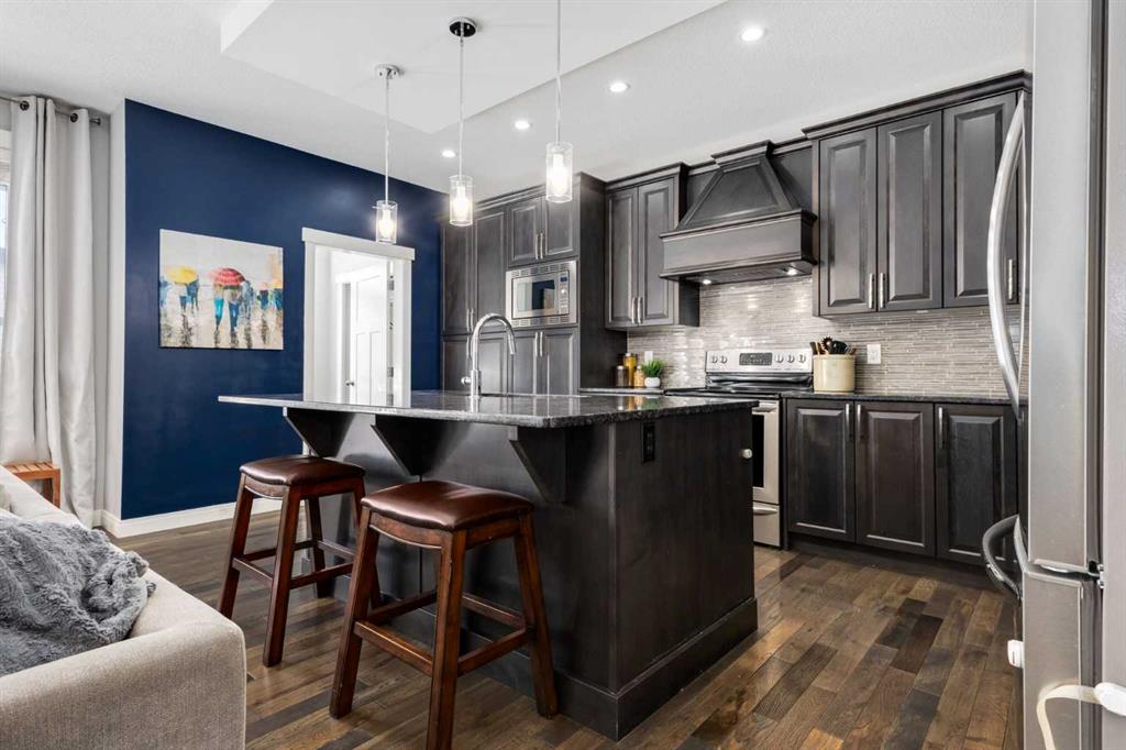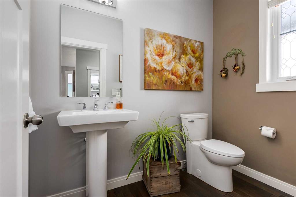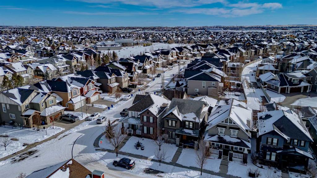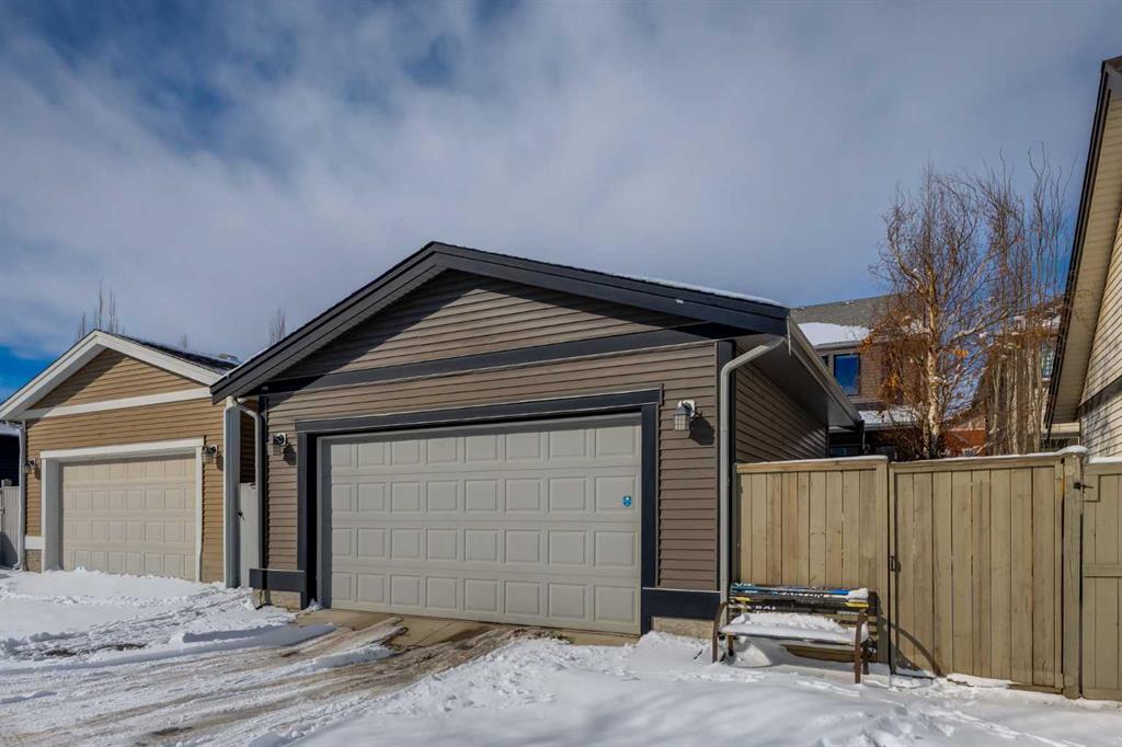 Impeccably finished from top to bottom, with thoughtful upgrades, elegant spaces, a private backyard retreat, AND an OVERSIZED 24x22 Detached Double Garage! From the moment you step inside off the covered front porch , a welcoming tile Foyer leads you into a bright main floor where rich hardwood floors and elegant design details create a warm, inviting atmosphere. Just off the front entrance is a private Home Office with French doors and bright windows —perfect for working from home or a quiet study space. The Dining area is extremely spacious and features a striking chandelier, flowing seamlessly into the Living Room and Kitchen. Natural light floods the Living Room, with a cozy gas fireplace with a mantle, framed by two bookcase cabinets. French doors open to the partially covered back deck, creating a natural connection between indoor and outdoor living.The Kitchen is perfectly designed for both everyday life and entertaining, showcasing granite countertops, full-height cabinetry, SS appliances and a large island designed for gathering. A convenient tiled Laundry & Mudroom just off the kitchen offers a folding counter, additional cabinetry, and built-in bench with hooks, keeping coats and bags neatly organized. Completing this open-concept main level is a 2-pc Bathroom with pedestal sink & an opening window. Ushered upstairs by the wide carpeted, modern staircase you’ll find a spacious Bonus Room filled with sunshine, The Primary retreat boasts vaulted ceiling, a cozy window seat, and a walk-in closet. The 5-pc Ensuite is a true spa-inspired space featuring in-floor heating, a stand-alone soaker tub beneath the big window, separate walk-in corner shower, dual sinks with granite counters, and tons of cupboard / additional drawer storage. Central A/C and UV window protection has been added to enhance comfort and efficiency in this home. Also upstairs are 2 more spacious Bedrooms, an organized Linen Closet, and a beautifully finished 4-pc Bathroom with granite counters and tile flooring. The FULLY FINISHED BASEMENT expands your living space with impressive 9ft ceilings, a massive Family Room/ Recreation area, extra space for your Home Gym, a FOURTH BEDROOM, a stunning 3-pc Bathroom with an O/S walk-in shower and great vanity storage, AND loads of extra storage options. Outside, the beautifully landscaped backyard feels like a private oasis with mature trees & gardens, a partially covered deck for relaxing or entertaining, and a stamped concrete patio and pathway to the Garage. Last but certainly not least - the oversized 22'x24' Double Detached Garage with PAVED LANE ACCESS! Located in one of Airdrie’s most sought-after communities, this home is just steps from parks, pathways, schools, and the many amenities of Coopers Promenade. Don’t miss the chance to call this luxurious property HOME, book a private showing TODAY.