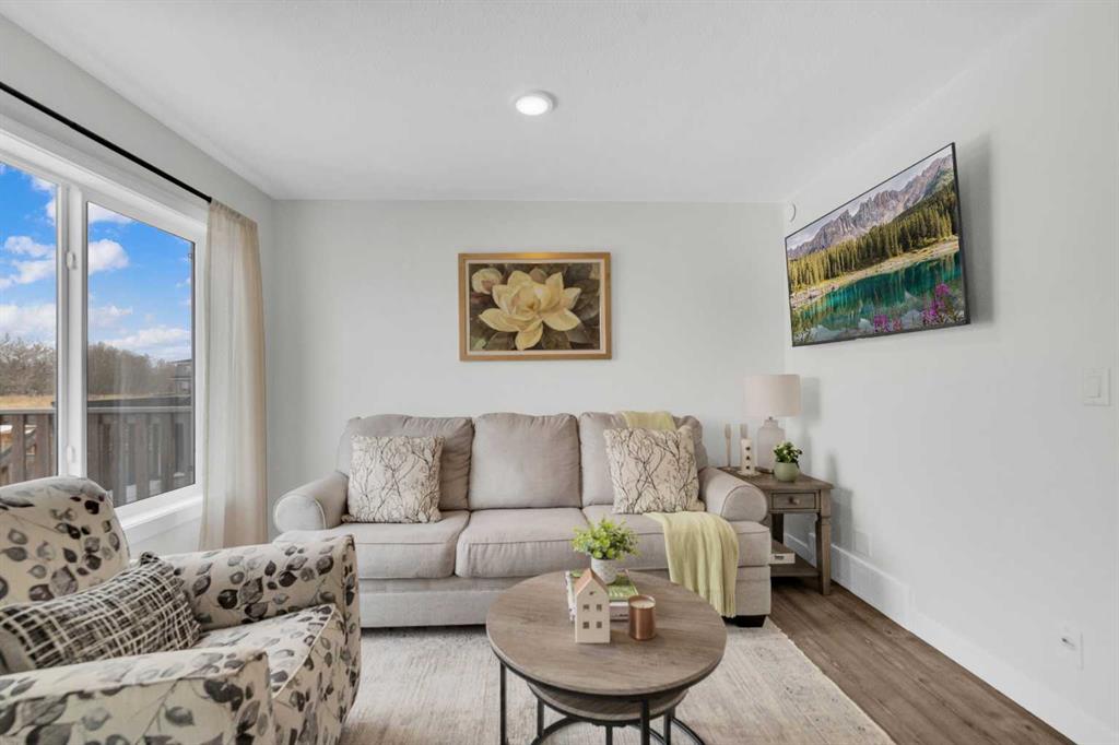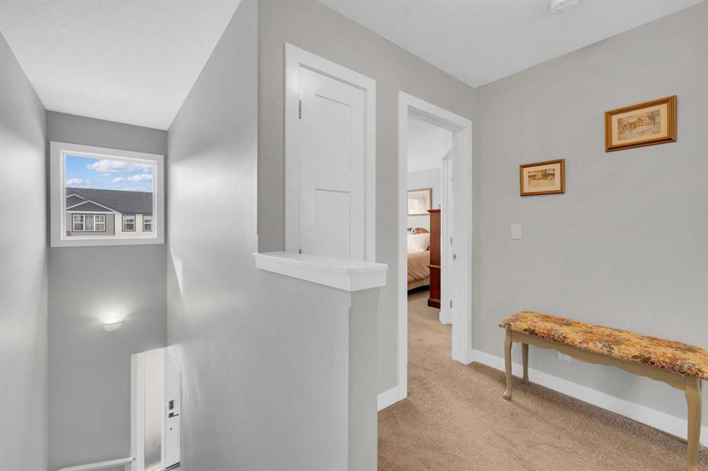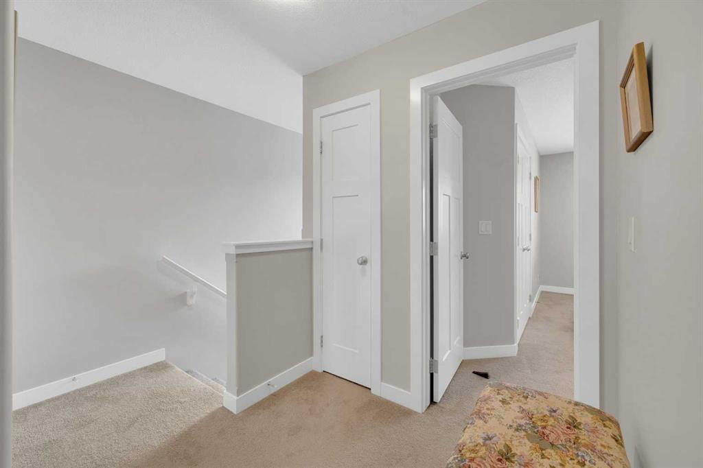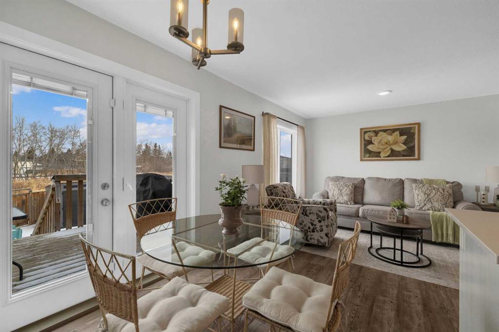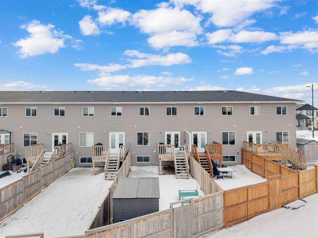 Welcome to Hampton Pointe! 3 bedroom, 2.5 bath townhouse with no condo fees. The open concept main floor features patio doors leading to a spacious deck. Upstairs you will find a primary bedroom with walk-in closet and 4-piece ensuite, two additional bedrooms, a second 4-piece bath, and convenient upper floor laundry. Single attached garage and full unfinished basement. Fenced yard backing onto a walking path with direct access to park and green space.