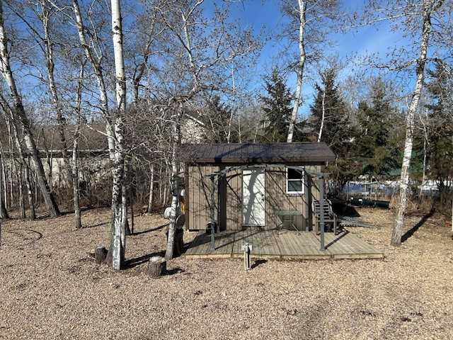 Looking for a getaway? This beautiful property is tucked in the bush away from the hustle and bustle, but still within a 2 minute walk to the beach. Located near the end of a close, on a Large Lot, this Home or Cabin is worth the look. House was moved onto location in 2018, and nicely situated in the back corner of the lot allowing ample room to park the holiday trailers if you so chose. The house features a huge 12' wide by 23' long deck, and a bonus 12' by 10' deck area by the door, allowing for lots of space to BBQ and entertain. Deck is zero maintenance with aluminum glass railing. Inside the house you are greeted with a Large entry featuring a sink, Genius! Entry flows into the spacious kitchen and onward to the Bright Living Room. There are two bedrooms inside with a very nice 4 pce bath, and a Bonus room by the Entry which could be used as a Den, Office, playroom, storage, gym, or whatever you feel fit. You will enjoy the updated vinyl windows. Furnace and Hot Water tank were new in 2018. Roof is metal! Back outside you will enjoy you large yard which is mostly washed rock. There are 2 sheds and a shelter shed which is perfect for your outside cooking. Lots of room to park your guests holiday trailers, with multiple plug ins for the RVs. Come enjoy and Relax in peace.