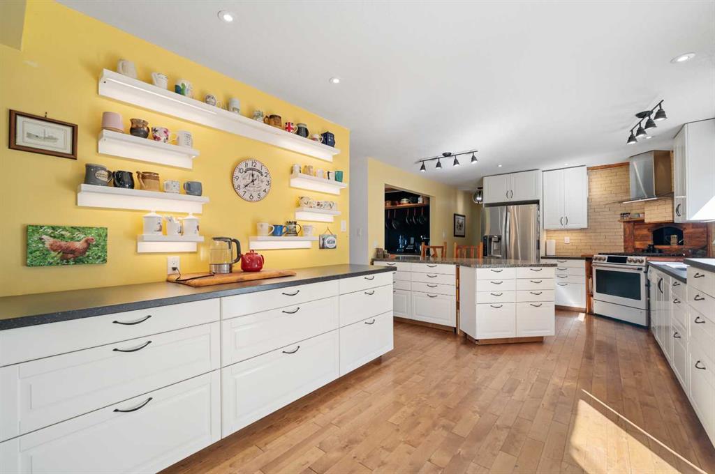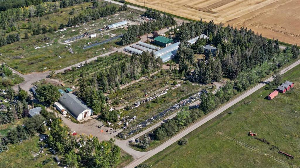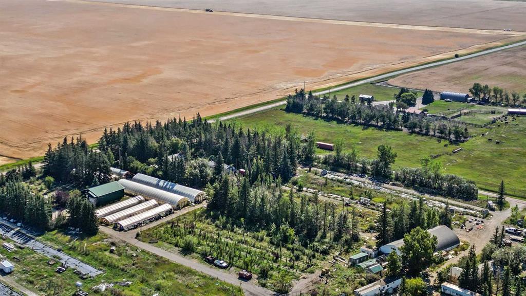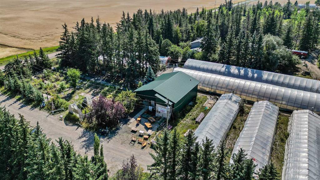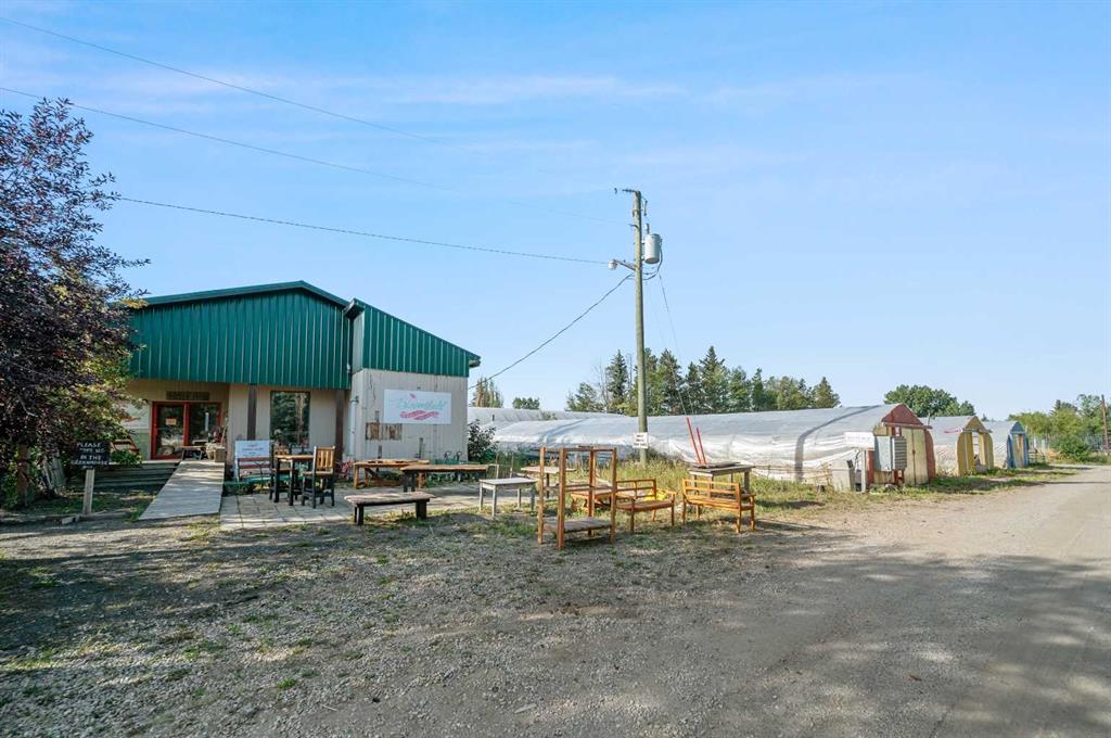 EXCEPTIONAL country residence with 2 homes on 32.17 acres. EASY ACCESS to Calgary + ONLY 6km from the future De Havilland site!! This MUST-SEE hobby farm offers an outstanding opportunity to jump into country living, with plenty of space for horses or other animals, or for possible future development! Greenhouses, dugout, irrigation canal with 35 acres of permanent irrigation rights + an existing garden centre on the site make this a dream property for the experienced or would-be horticulturalist. Not your vision? Then just think of the possibilities for repurposing all that infrastructure, or generating rental income!! The 2605 sq. ft, 2-storey home has been lovingly renovated throughout for comfort + style. The spacious, open plan main floor includes a modern, chef-inspired kitchen, living room with wood burning stove, dining room, laundry room, half-bath + large storage room. Upstairs there are 4 bedrooms, with 2 en-suites + a separate, full bathroom. The unfinished basement offers a further 1056 sq. ft. of potential for future development. Outside, the professionally landscaped yard comes complete with a patio, outdoor kitchen and pizza oven, all surrounded by mature trees. A peaceful oasis for enjoying the best of country living. A 1548 sq. ft. mobile home has 3 bedrooms + 2 bathrooms, kitchen, living room, laundry room, mud room + storage room. Perfect for family or rental income. Outbuildings include 2 quonsets, one of which contains 3 seacans set up for year-round growing + a spacious workshop. There are seven greenhouses (5 of which are heated and irrigated), + a retail garden centre building. 3 separate, fully fenced outdoor areas could be used as growing spaces, or as paddocks/pasture for livestock. Opportunities like this are few and far between, and this unique property comes with so many possibilities. Whether you’re looking for the peace and quiet of country living, a place to raise horses or livestock, an exciting business opportunity or the chance to generate some passive rental income, this place has it all. The garden centre space comes with a website, online store, loyal customer base, wholesale customer list and more. This property comes as is, and includes all garden centre, growing and nursery supplies and Inventory. Don’t miss out - Book your Private showing NOW!!