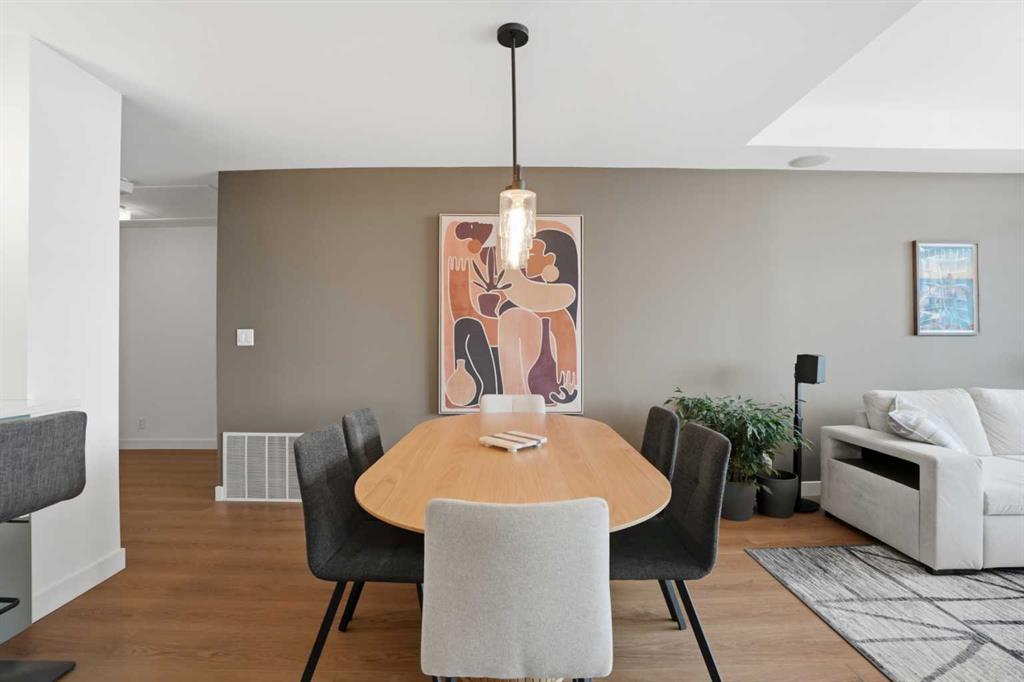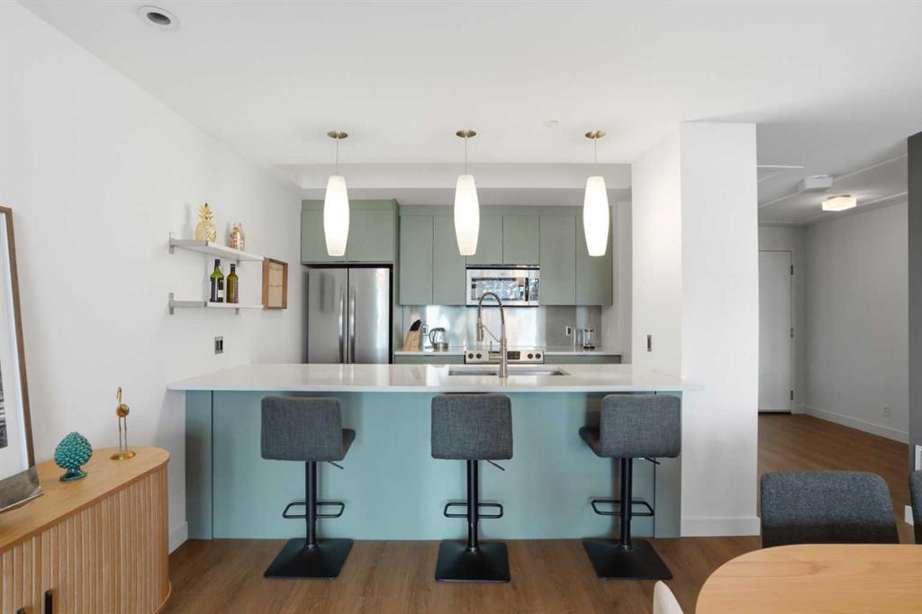 Experience elevated inner city living in The Castello, one of Calgary’s most sought after luxury buildings in the Beltline. This 918 sq ft one bedroom residence has been fully and extensively renovated, creating a truly one of a kind unit that cannot be duplicated anywhere else in the building. Unlike other units in Castello, this home has been completely updated with brand new luxury vinyl plank flooring, entirely new custom kitchen cabinetry, fresh designer paint throughout, and brand new modern contemporary fixtures that transform the space into a sleek and sophisticated urban retreat. The thoughtful renovation elevates both the style and functionality of the home, making it feel brand new and entirely unique compared to other units in the building. The bright open concept layout features 9 foot ceilings and dramatic floor to ceiling windows, allowing natural light to pour into the living space while showcasing unobstructed south facing views. The beautifully updated kitchen is designed for both everyday living and entertaining, offering quartz countertops, stainless steel appliances, full height cabinetry, a wine cooler, garburator, and generous preparation space. The spacious primary bedroom easily accommodates a king sized bed with nightstands and a large television, while the walk through closet leads to an impressive 5 piece spa inspired ensuite. The ensuite is one of the largest in the building and features dual sinks, a deep soaker tub, and a luxurious steam shower, creating a true at home retreat. For added convenience, the front loading washer and dryer are discreetly located within the ensuite. A separate guest bathroom provides additional comfort and privacy for visitors. Additional features include central air conditioning, a built in humidifier, in suite speakers with individual room controls, and a gas BBQ line on the balcony. The unit also includes titled underground secure parking and a titled storage locker. Residents of The Castello enjoy premium amenities including a fully equipped fitness centre, guest suite, car wash, and a social lounge. Perfectly located in the heart of the Beltline, you are steps from Calgary’s best restaurants, cafes, shopping, and downtown amenities. This is a rare opportunity to own a fully renovated, truly one of a kind residence in one of Calgary’s premier condo buildings.
