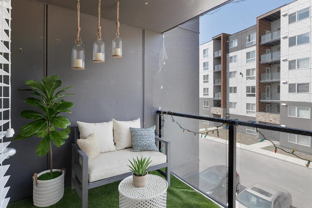 ** OPEN HOUSE SAT FEB 28TH 11AM - 1PM** **QUIT PAYING YOUR LANDLORDS MORTGAGE** Own for less in this smartly designed 2-bed, 2-bath condo in Emerald Sky, Kincora. With bedrooms on opposite sides, this 697 sq ft layout is perfect for singles wanting a home office or roommate privacy. The north/northeast exposure keeps the unit cool on hot days...no extra costs for AC needed! The modern kitchen features granite countertops, stainless steel appliances, and soft-close cabinets, opening to a cozy balcony with faux turf and string lights. Plus, the in-suite laundry is tucked away from the bedrooms, so you can run loads at night without losing sleep. In-suite laundry room, luxury vinyl plank flooring, and a heated underground titled parking stall (fits a full-size truck!) add everyday ease and comfort. Enjoy access to the private, east-facing rooftop patio on the 7th floor, exclusive to unit owners.... catch the sunrise with your morning coffee or unwind in the sun when you want it. Whether you drive or not, this location works: groceries, Dollarama, and your caffeine fix are just a few minutes away by foot, and for families with one car, it’s even more convenient. Your total monthly costs (mortgage + property taxes + utilities) can be less than renting nearby, making this a smart investment into your own future. The complex is pet-friendly, well-managed, and built with concrete for soundproof, peaceful living. Live minutes from Costco, Beacon Hill Centre, major roadways, and everything you need. Start living smarter ... book your private showing today! CHECK OUT THE VIDEO!!