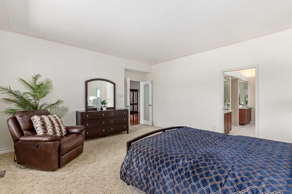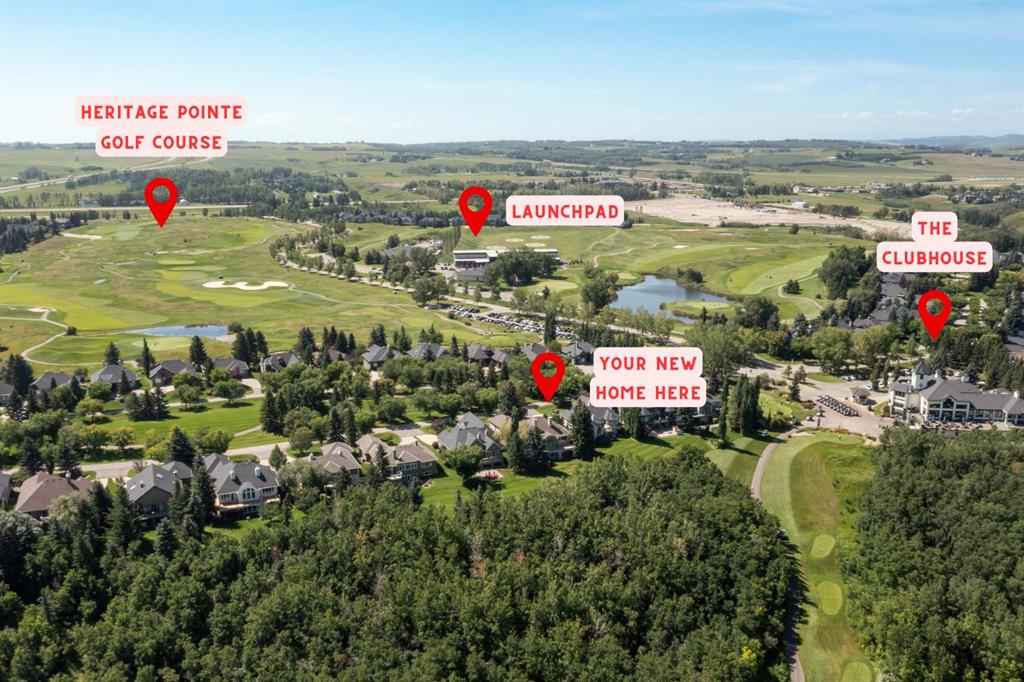 WALKOUT BUNGALOW | 4,700 SQFT OF LUXURY ESTATE LIVING | SNOWBIRD'S DREAM | HEATED TRIPLE GARAGE | BACKING ONTO FOREST & GOLF COURSE | Welcome to 33 Ridge Pointe Drive, an extraordinary estate bungalow set on one of the most prestigious streets in Heritage Pointe. Perfectly positioned on over 0.35 acres, this exceptional walkout residence backs directly onto the forest and golf course, offering a rare combination of privacy, natural beauty, and refined living. With 2,389 SQFT above grade and nearly 4,700 SQFT of total developed living space, this is one of the community’s most expansive bungalow floorplans — perfectly suited to empty nesters, families, or those who love to entertain. Whether your lifestyle includes morning walks through this spectacular enclave, afternoons on the golf course, or extended time away as a snowbird, this home offers the ultimate lock-and-leave lifestyle, with landscaping and snow removal included for easy, maintenance-free living. The main level is defined by timeless architectural elegance, where rich hardwood flooring, crown molding, and custom millwork complement breathtaking views of the forest behind. A formal dining room provides an elegant setting for hosting, while the spectacular great room showcases soaring barrel-vaulted ceilings, an impressive arched feature window, and a double-sided gas fireplace. The gourmet kitchen features custom cabinetry, premium stainless steel appliances, a large granite island, a built-in wall oven, and a new built-in microwave (2026). French doors from the breakfast nook lead to the expansive full-width patio — one of the largest available — complete with a gas line and the perfect setting for outdoor dining, entertaining, or peaceful mornings surrounded by nature. The luxurious primary retreat offers a spa-inspired ensuite with a freestanding tub, oversized glass shower, dual vanities, and a spacious walk-in closet. A spacious executive main floor office or den — or potential fourth bedroom — adds flexibility for homeowners. A generous laundry and mudroom (finished with new marble tile in 2025) lead to the heated, oversized triple garage with epoxy floors. The stunning fully developed walkout lower level was completely remodelled in 2025 and offers exceptional additional living space. The theatre room, finished with new sound-absorbing paneling (2025), can also serve as a home gym or fifth bedroom. The cedar and cold storage rooms offer ample storage, and the two large bedrooms share a Jack-and-Jill 4-piece bath. There is in-floor heating throughout the entire lower level. Window replacements and kitchen renovation (2015), ensuite renovation (2019), central A/C (2020), dual hot water tanks (2021), new carpeting (2023), and a complete basement remodel (2025). Quietly tucked alongside the golf course and just steps from the clubhouse, this remarkable Heritage Pointe estate offers an unmatched lifestyle of tranquility, community, and natural beauty — all just minutes from Calgary’s south amenities.