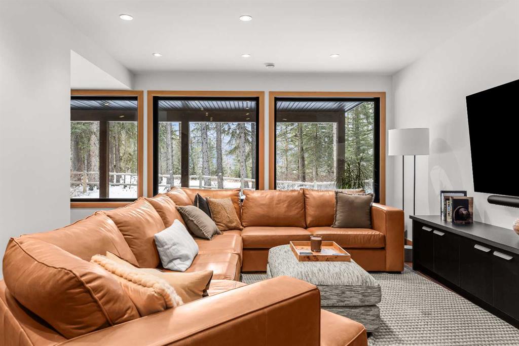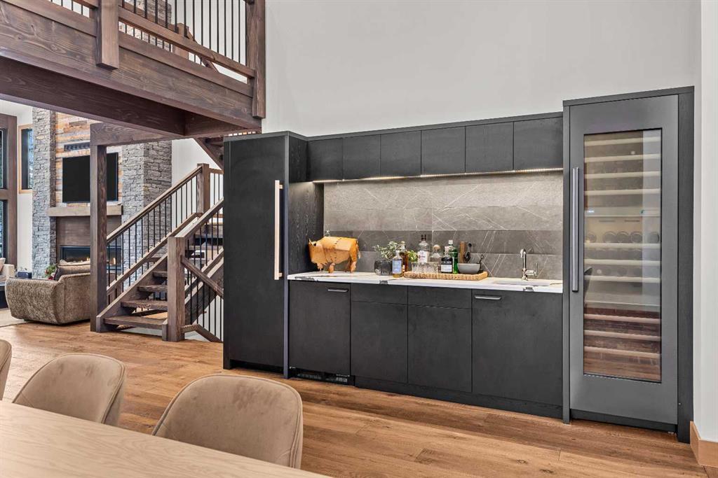 Constructed by Kidner Construction, this exceptional Silvertip near new residence blends refined mountain architecture with modern comfort, backing directly onto the 8th hole of the Silvertip Golf Course. Designed for both entertaining and large gatherings, the home features 5 bedrooms sleeping up to 14 guests, 4 bedrooms with private ensuites and a large bunk room with 2 sets of bunks. At the heart of the home, a dramatic timber-frame loft crowns the living space, creating a striking architectural focal point that complements the surrounding mountain setting.Expansive living areas open seamlessly to the outdoors, where a large main deck, two additional decks, and an expansive patio overlook the golf course and surrounding alpine landscape. Inside, the home is finished with triple-pane windows, Control4 whole-home automation, and carefully designed spaces that balance luxury, comfort, and performance.Additional lifestyle spaces include a family room, dedicated gym, and a fully outfitted garage with epoxy floors, providing both functionality and high-end finishing throughout. Offering just under 4,900 SF the home is thoughtfully distributed across multiple levels to provide excellent separation for family and guests. Located in the prestigious Silvertip community, this Kidner-built home combines exceptional craftsmanship with one of Canmore’s most sought-after golf course settings. Surrounded by world-class golf, mountain scenery, and the natural beauty that defines Silvertip, this property offers elevated mountain living in one of the Bow Valley’s most exclusive neighbourhoods.