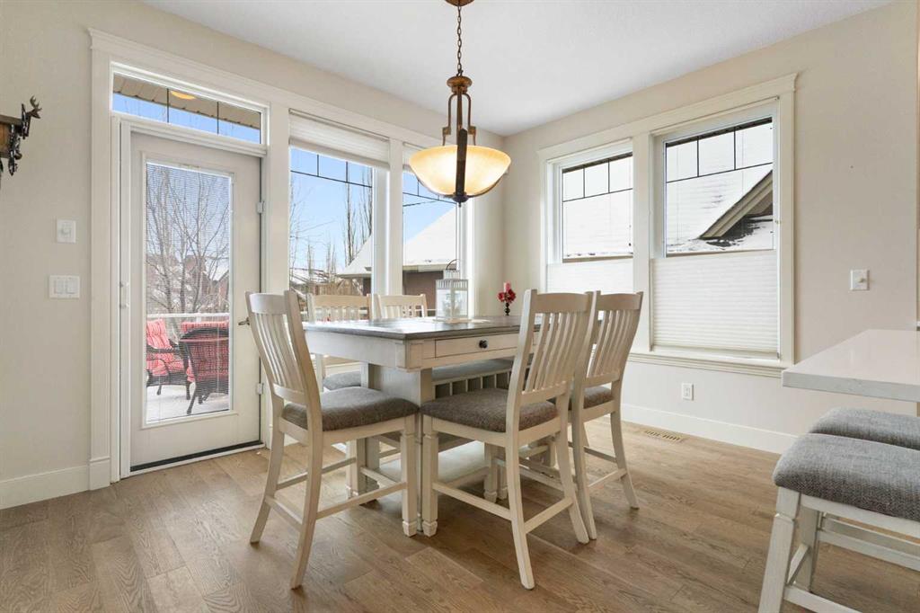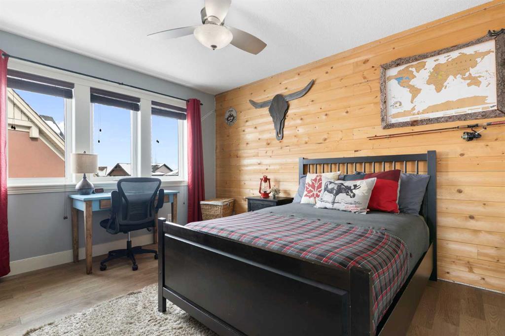 Hello, Gorgeous! Welcome to this beautifully renovated executive walkout home in the highly sought-after community of Coopers Crossing in Airdrie. Offering over 2,500sq ft. above grade plus a fully developed walkout basement, this home blends impressive architectural spaces with thoughtful custom finishes throughout. Step inside to a stunning entry featuring stacked stone accents, rustic beams, and an inviting sense of craftsmanship that continues throughout the home. The main floor includes a private office with glass French doors, perfect for working from home or flexible use as a dining space or additional bedroom. At the heart of the home is the dramatic great room with soaring 14-foot vaulted ceilings, arched windows, and a beautiful fireplace feature wall that fills the space with natural light from the west-facing backyard. The chef-inspired kitchen is designed for both everyday living and entertaining, featuring a large island, quartz countertops, professionally painted two-tone cabinetry, custom organizers, and a striking solid walnut hood fan. Premium appliances include KitchenAid, Bosch, Thermador, and MasterChef, along with a gas range, wall oven, beverage cooler, and walk-in pantry. Upstairs, a welcoming loft creates an additional living space for relaxing or family time. Two spacious bedrooms share a well-appointed bathroom, while the impressive primary retreat offers vaulted ceilings, custom wall detailing, and a luxurious ensuite with heated floors, double vanity, soaker tub & separate water closet. The fully developed walkout basement adds incredible flexibility with a gorgeous second full kitchen, large recreation area, full bathroom, wine/cool room, and a spacious additional bedroom or versatile flex room with built-in Murphy bed. With its high-end finishes and thoughtful layout, this level is ideal for entertaining or multi-generational living. Outdoor living is just as impressive with a west-facing backyard, a 300sq ft. Duradek balcony with glass railing, natural gas line for BBQ, and a walkout patio below with additional gas connections and hot tub rough-in, plus two storage sheds. The beautifully landscaped yard features custom concrete work, mature trees and shrubs, and a 7-zone irrigation system. Completing the home is a triple attached garage plus shop area, with epoxy floors, forced-air heating, workshop wiring, EV/welder outlets, and extensive built-in storage. Located in one of Airdrie’s most desirable communities, close to parks, pathways, schools, and amenities, this exceptional home offers the perfect combination of space, luxury, and functionality.