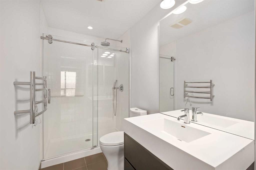 Welcome to Unit #402 at 63 Inglewood Park SE, a beautifully updated fourth-floor apartment offering breathtaking unobstructed views of Pearce Estate Park, the Bow River pathways, bird sanctuary, and the Calgary skyline. Perfectly positioned in one of Calgary’s most sought-after communities, this home blends nature, tranquility, and urban convenience. Built in concrete construction, the home offers superior soundproofing, energy efficiency, fire resistance, low maintenance, and enhanced security, providing both comfort and peace of mind. Renovated in 2023 with modern touches, the home features thoughtful upgrades including a reverse osmosis water system in the kitchen and a heated towel rack in the primary bathroom, Air Conditioner adding comfort and everyday luxury. Large windows in the kitchen, living room, and primary bedroom showcase incredible park and skyline views while filling the space with natural light. Step outside onto the massive private fourth-floor terrace/balcony, a rare feature with an open-top design that allows you to enjoy an outdoor fireplace, fresh air, and beautiful star-filled evenings while overlooking the park. The unit also features a spacious in-suite laundry and storage room, providing excellent functionality and additional storage space rarely found in apartment living. Additional highlights include a titled underground parking stall, designated bike storage, and access to excellent building amenities. Residents can enjoy a recreation facility with billiards, a party/social room, and a newly built bright and spacious fitness gym with floor-to-ceiling windows. Located just steps from Pearce Estate Park, the Bow River pathways, and the Inglewood Bird Sanctuary, this property offers immediate access to walking and biking trails, wildlife, and nature. At the same time, you are only minutes from downtown Calgary and Inglewood’s vibrant shops, restaurants, cafés, and galleries. A rare opportunity to enjoy park-side living with spectacular views, modern upgrades, and exceptional outdoor space in one of Calgary’s most desirable communities.