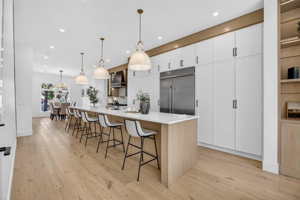Exquisite two-storey luxury residence in Mount Pleasant — where contemporary design meets thoughtful functionality. This beautifully appointed home welcomes you with an open main floor featuring a formal dining area flowing into a chef’s kitchen equipped with built-in KitchenAid appliances and a generous living room — ideal for effortless entertaining and everyday living. A discreet mudroom with a hidden door keeps clutter out of sight, and a stylish 2-piece powder room completes the main level. Upstairs, the primary retreat is a serene haven with vaulted ceilings, two walk-in closets and a spa-like ensuite designed for relaxation. Two additional bedrooms, each with their own walk-in closet, plus a full bathroom and a convenient upper-level laundry room provide comfortable and well-planned family living. The fully finished basement suite offers excellent rental or multigenerational potential, featuring a modern kitchen with island, bright living room, two bedrooms, a full bathroom and a separate laundry room — private and self-contained. Located in desirable Mount Pleasant, this home blends luxury details with practical design for an elevated Calgary lifestyle. Contact us today to schedule a viewing.