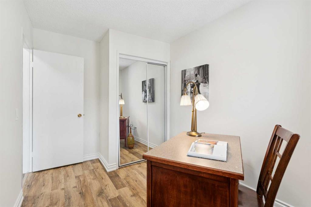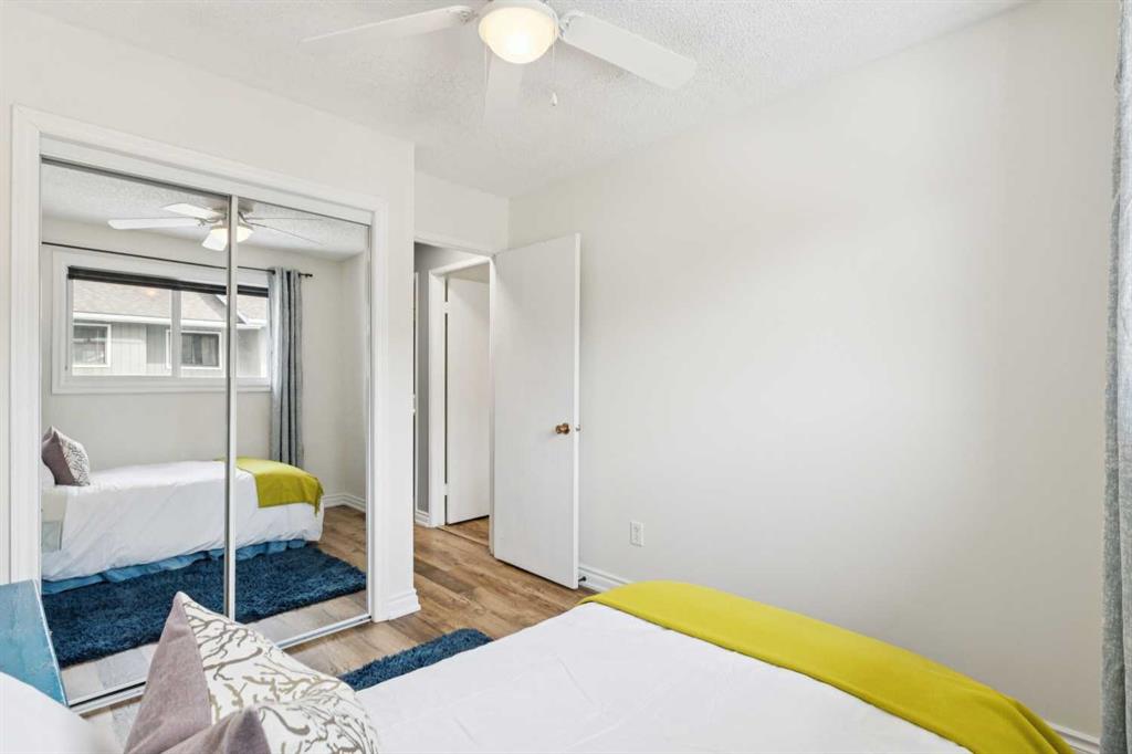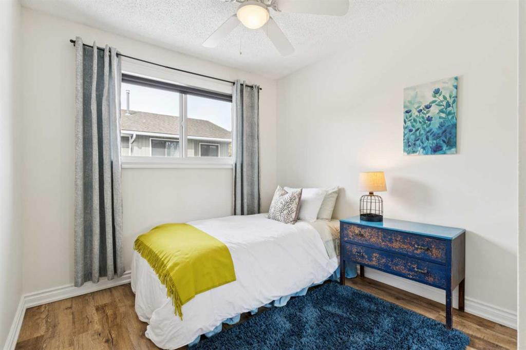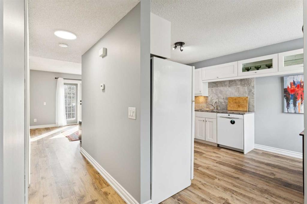 SOUTH-FACING FENCED YARD with DECK | RENOVATED | WATER AND SEWER INCLUDED | Over 1590 sq ft of living area! | Welcome to this beautifully updated and affordable townhouse in the well-maintained Parkside Place complex in Ranchlands — an excellent opportunity for first-time buyers or investors looking for a move-in ready home in a convenient NW Calgary location. The main level offers a bright and welcoming living room featuring a charming WOOD-BURNING FIREPLACE, perfect for cozy evenings at home. DOUBLE FRENCH DOORS from the living room open directly onto the SOUTH-FACING DECK, creating an inviting connection to the PRIVATE FENCED YARD — ideal for relaxing outdoors, A BBQ, gardening, or letting pets enjoy the space. The yard also includes a handy storage SHED for bikes, tools, and seasonal items. The RENOVATED KITCHEN offers plenty of storage with soft-close cabinetry, two large lazy Susans, and a convenient movable ISLAND that provides additional prep space when needed. Upstairs you’ll find three bedrooms, including a spacious primary bedroom with a WALK-IN CLOSET, offering great flexibility for a growing family, guest room, or home office. The UPDATED main bathroom serves the upper level. The FULLY DEVELOPED lower level expands your living space with a spacious RECREATION ROOM, a renovated 3-PIECE BATHROOM, and a large laundry room with AMPLE STORAGE. This bright and stylish home has been FRESHLY PAINTED and features NEW LUXERY VINYL PLANK FLOORING and LIGHTING throughout, giving the entire space a clean, modern feel. Additional highlights include VINYL WINDOWS and an ASSIGNED PARKING STALL with electrical plug-in conveniently located just outside the unit. The condo board also offers ADDITIONAL PARKING STALLS for rent (currently $20/month). The well-run complex has seen several recent improvements, including newly paved parking areas and updated electrical pedestals in 2024, with a new fence planned for the community this year. Condo fees include water and sewer, helping keep monthly costs predictable, and the pet-friendly community is managed by an attentive condo board. You will enjoy not having to clear snow in your parking space or on the walkways! Location is a standout feature. With an OFF-LEASH GREEN SPACE directly behind the home, dog owners and outdoor enthusiasts will feel right at home. You’ll also enjoy WALKING DISTANCE to schools, parks, transit, and a nearby commercial area with restaurants, a pub, convenience store, and everyday amenities. Just minutes away are Crowfoot Centre, the C-Train, major roadways, and the beautiful Bowness Park, making commuting and recreation easy. Whether you're looking for an affordable first home or a solid investment property, this well-located and thoughtfully updated townhouse offers excellent value in a desirable NW Calgary neighborhood.