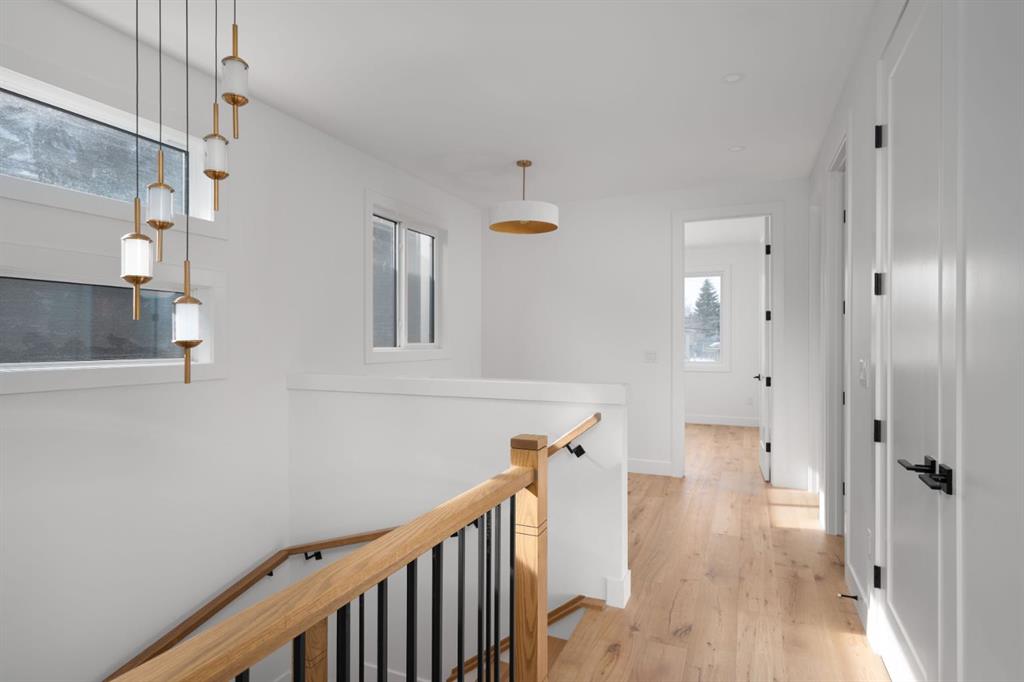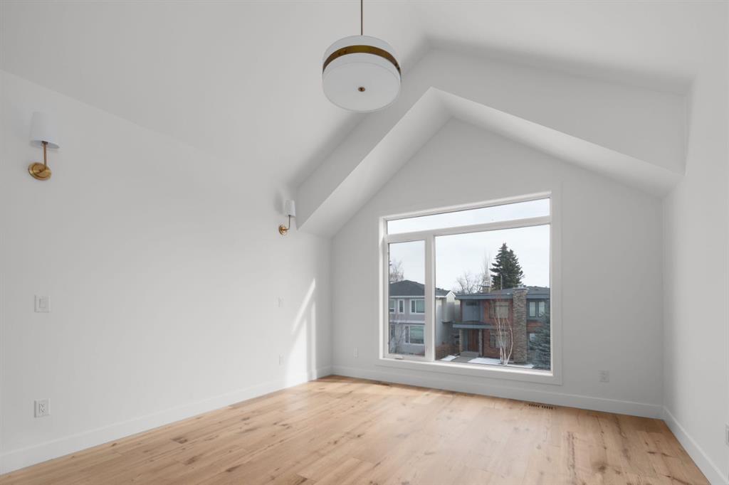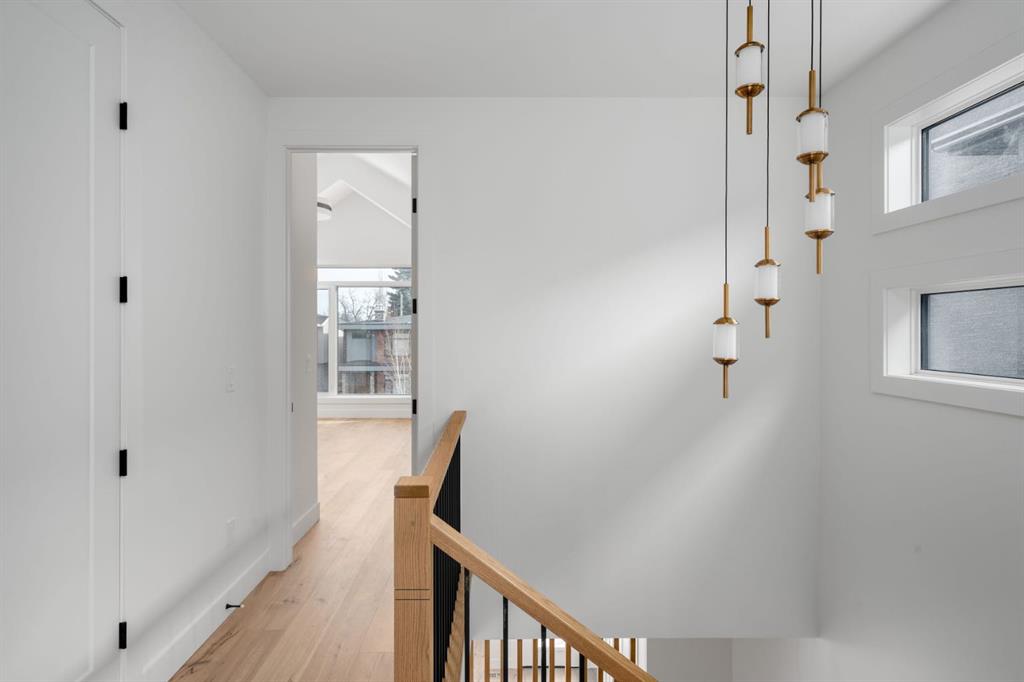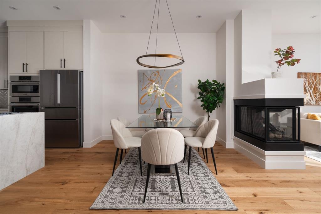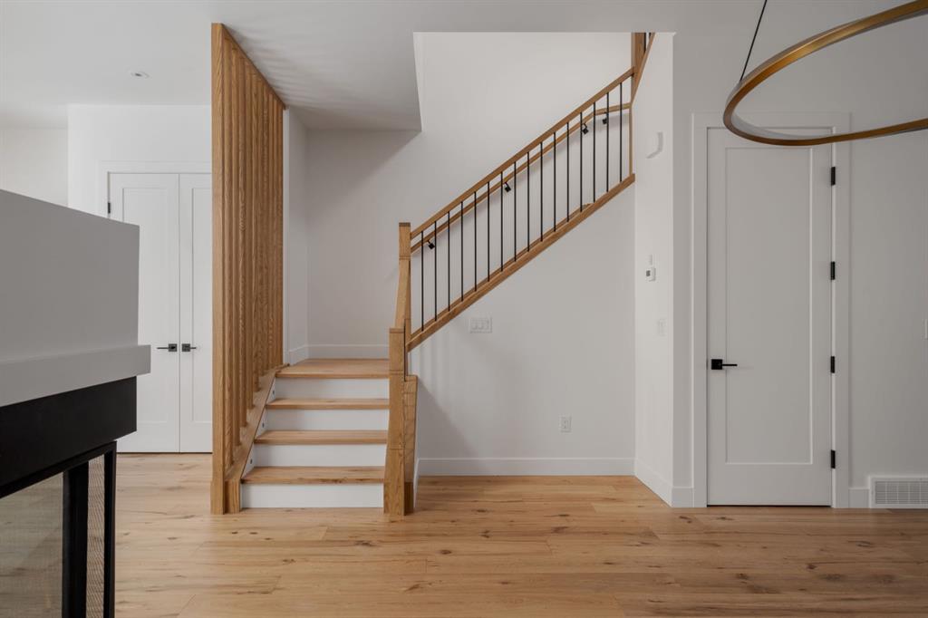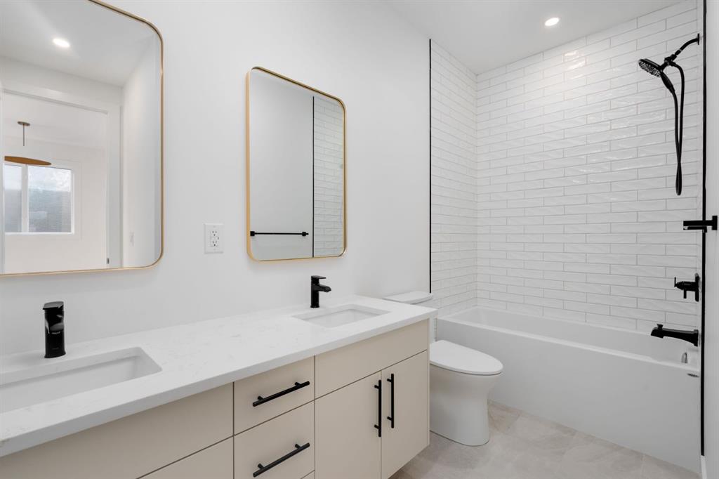 Welcome to The Killarney Collection in SW Calgary—thoughtfully crafted on a quiet street, this fully upgraded duplex infill offers a refined balance of scale, texture, and modern comfort. From the moment you arrive, the home makes a striking first impression with its sleek, contemporary exterior, pairing oversized triple-pane windows for abundant natural light with warm natural tones of true brick detailing and stucco accenting stands out. Inside, 10-foot main floor ceilings create a grand sense of arrival, setting the tone for the interior designer–curated colour palette carried throughout the home. Every detail has been intentionally explored, with the heart of the main floor anchored by a chef-inspired gourmet kitchen. Featuring a premium Bosch appliance package, fully custom-painted cabinetry, and an oversized waterfall granite island, the space effortlessly blends luxury with everyday functionality. A dedicated central dining off the kitchen offers a warm setting for gatherings, while the front living room provides a more intimate retreat, both areas are anchored by the full feature-wall gas fireplace—perfect for evenings spent unwinding. Thoughtful storage solutions are seamlessly integrated, including built-ins at the entry and a fully custom mudroom at the rear, ensuring every inch of space is maximized. Ascending to the upper level, subtle design moments continue to impress, with a full wood feature wall, custom stair lighting, and luxury wide-plank hardwood flooring flowing continuously throughout both the main and upper levels for a seamless transition.The oversized primary bedroom is a true sanctuary, showcasing a vaulted and peaked ceiling design with expansive windows that welcome morning light. The spa-inspired ensuite features a dual vanity, an expansive full-tile shower, and a calming, private retreat. Two additional bedrooms offer generous proportions, each complete with custom closet built-ins. The upper-level laundry room maintains the home’s commitment to efficiency and design, offering full cabinetry, a folding counter, side-by-side washer and dryer, and a laundry sink. A versatile work-from-home alcove completes the upper floor, easily functioning as a den or secondary living space.The lower level further extends the home’s flexibility with an oversized 2-bedroom, 1-bath legal suite (900+SQFT), centered around a spacious open kitchen—ideal for rental income, guests, or multi-generational living. A separate full laundry room, understair storage, and built-ins throughout each closet to ensure the same level of thoughtful design continues below.Perfectly positioned close to inner-city Calgary, recreation centres, shopping, and public transit, this Killarney residence offers a timeless blend of form and function—designed to live beautifully today and adapt effortlessly for tomorrow.