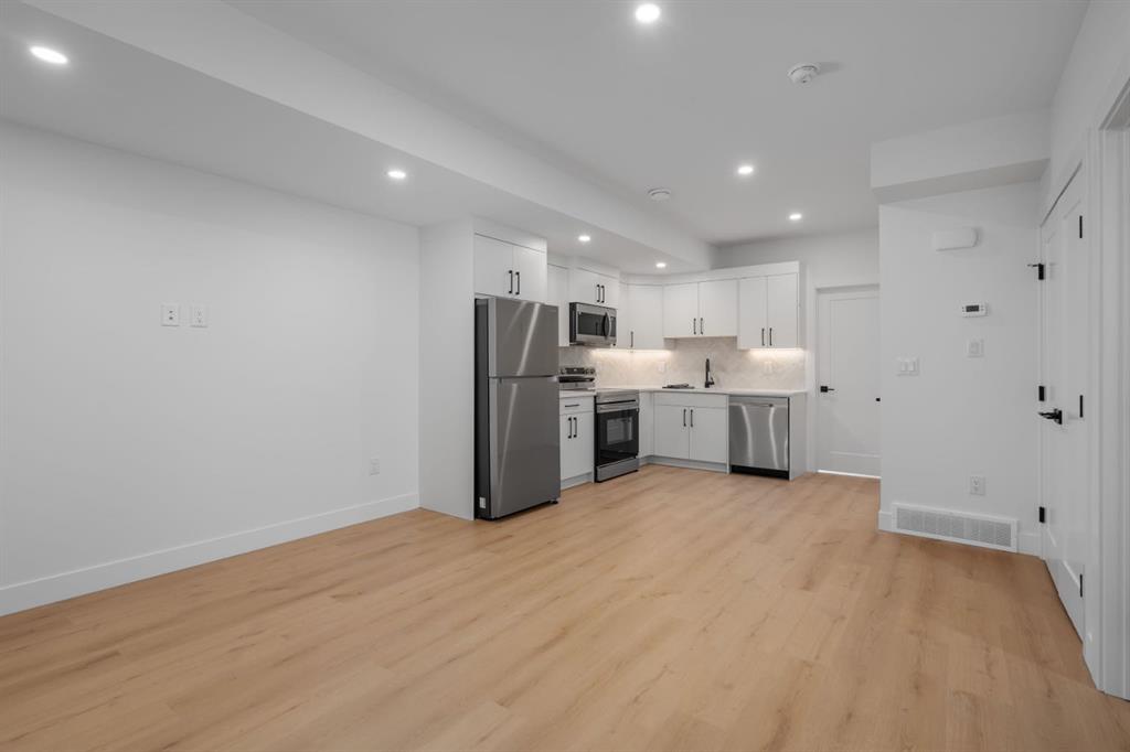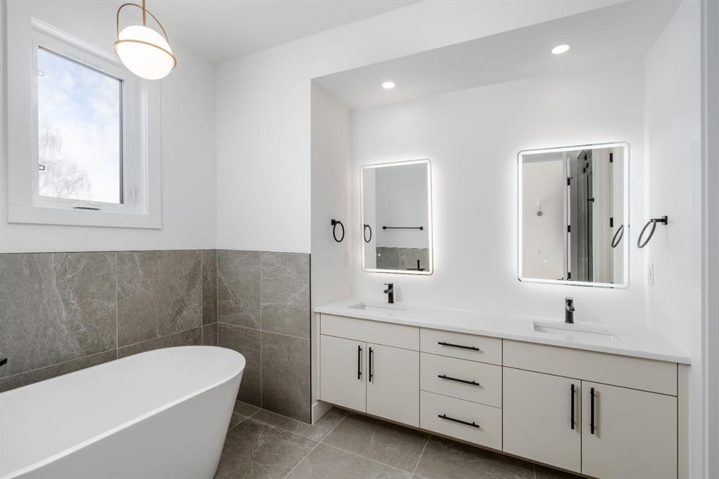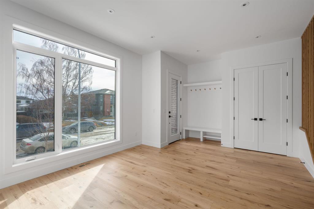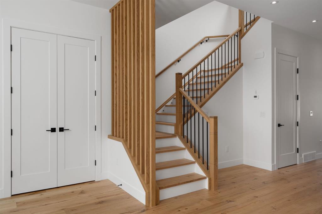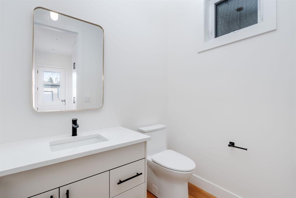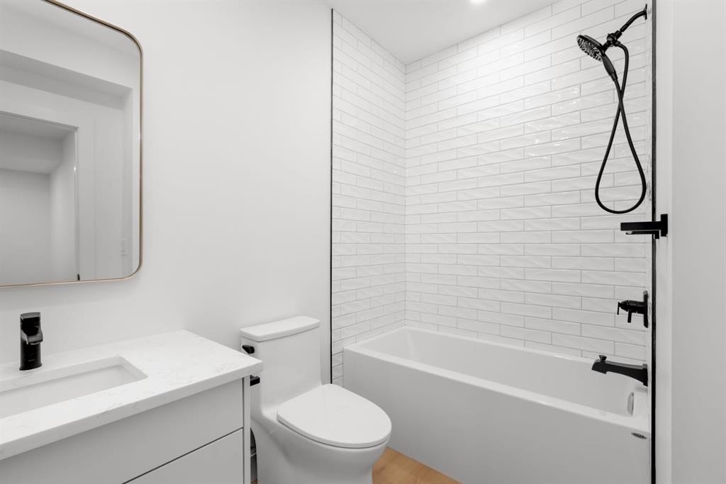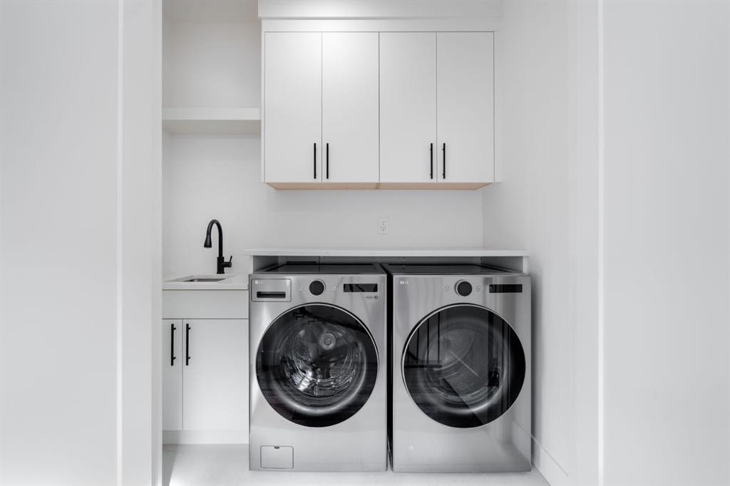 Welcome to The Killarney Collection in SW Calgary—thoughtfully crafted on a quiet street, this fully upgraded duplex infill offers a refined balance of scale, texture, and modern comfort. From the moment you arrive, the home makes a striking first impression with its sleek, contemporary exterior, pairing oversized triple-pane windows for abundant natural light with warm natural tones of true brick detailing and stucco accenting stands out. Inside, 10-foot main floor ceilings create a grand sense of arrival, setting the tone for the interior designer–curated colour palette carried throughout the home. Every detail has been intentionally explored, with the heart of the main floor anchored by a chef-inspired gourmet kitchen. Featuring a premium Bosch appliance package, fully custom-painted cabinetry, and an oversized waterfall granite island, the space effortlessly blends luxury with everyday functionality. A dedicated central dining off the kitchen offers a warm setting for gatherings, while the front living room provides a more intimate retreat, both areas are anchored by the full feature-wall gas fireplace—perfect for evenings spent unwinding. Thoughtful storage solutions are seamlessly integrated, including built-ins at the entry and a fully custom mudroom at the rear, ensuring every inch of space is maximized. Ascending to the upper level, subtle design moments continue to impress, with a full wood feature wall, custom stair lighting, and luxury wide-plank hardwood flooring flowing continuously throughout both the main and upper levels for a seamless transition.The oversized primary bedroom is a true sanctuary, showcasing a vaulted and peaked ceiling design with expansive windows that welcome morning light. The spa-inspired ensuite features a dual vanity, an expansive full-tile shower, and a calming, private retreat. Two additional bedrooms offer generous proportions, each complete with custom closet built-ins. The upper-level laundry room maintains the home’s commitment to efficiency and design, offering full cabinetry, a folding counter, side-by-side washer and dryer, and a laundry sink. A versatile work-from-home alcove completes the upper floor, easily functioning as a den or secondary living space.The lower level further extends the home’s flexibility with an oversized 2-bedroom, 1-bath legal suite (900+SQFT), centered around a spacious open kitchen—ideal for rental income, guests, or multi-generational living. A separate full laundry room, understair storage, and built-ins throughout each closet to ensure the same level of thoughtful design continues below.Perfectly positioned close to inner-city Calgary, recreation centres, shopping, and public transit, this Killarney residence offers a timeless blend of form and function—designed to live beautifully today and adapt effortlessly for tomorrow.