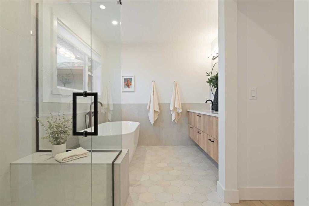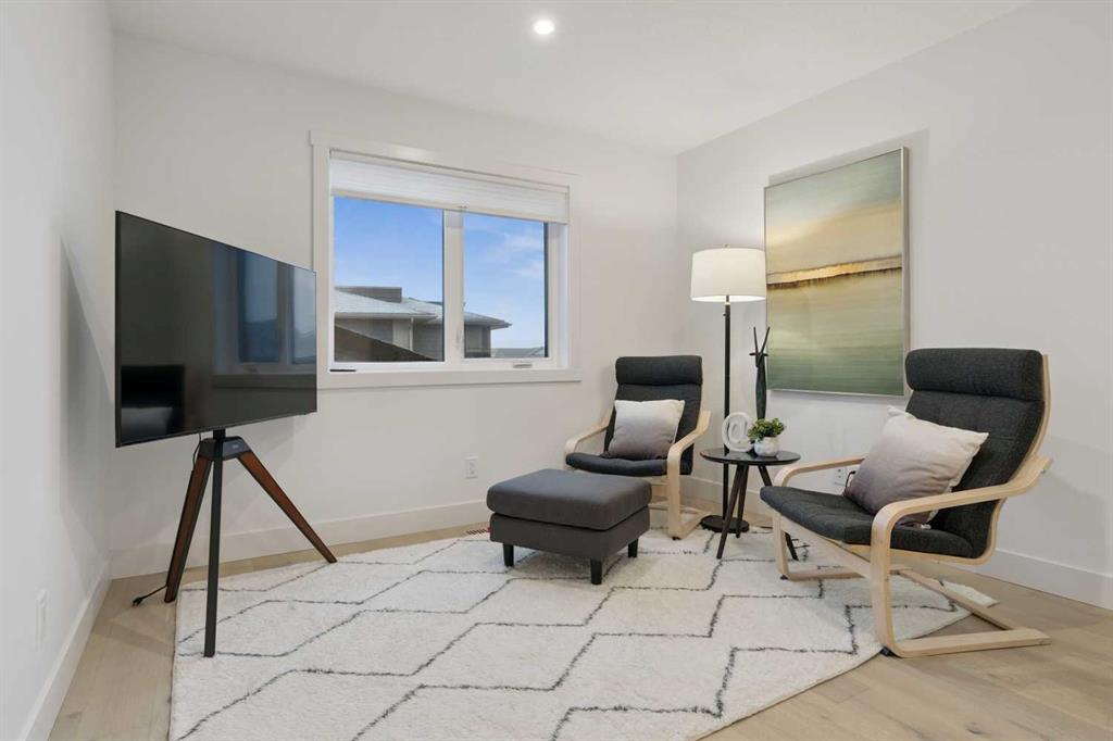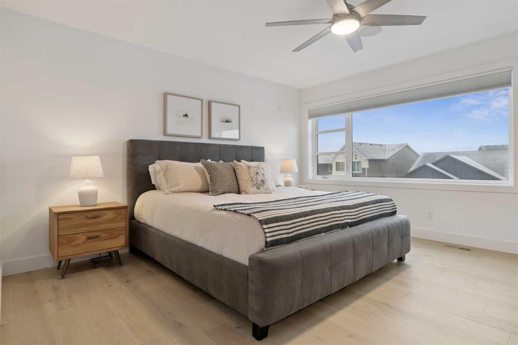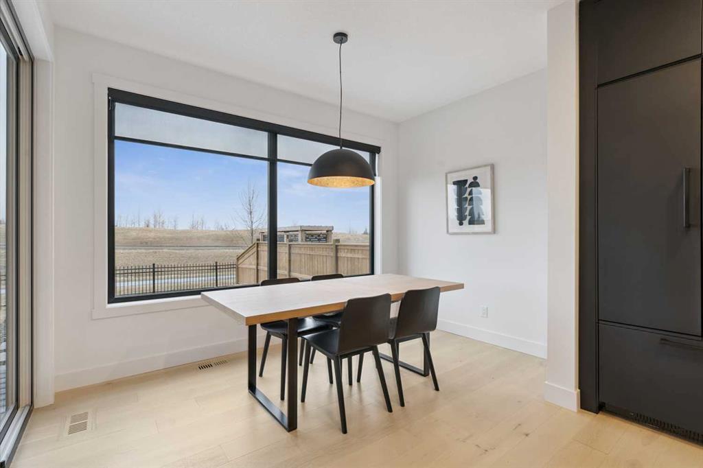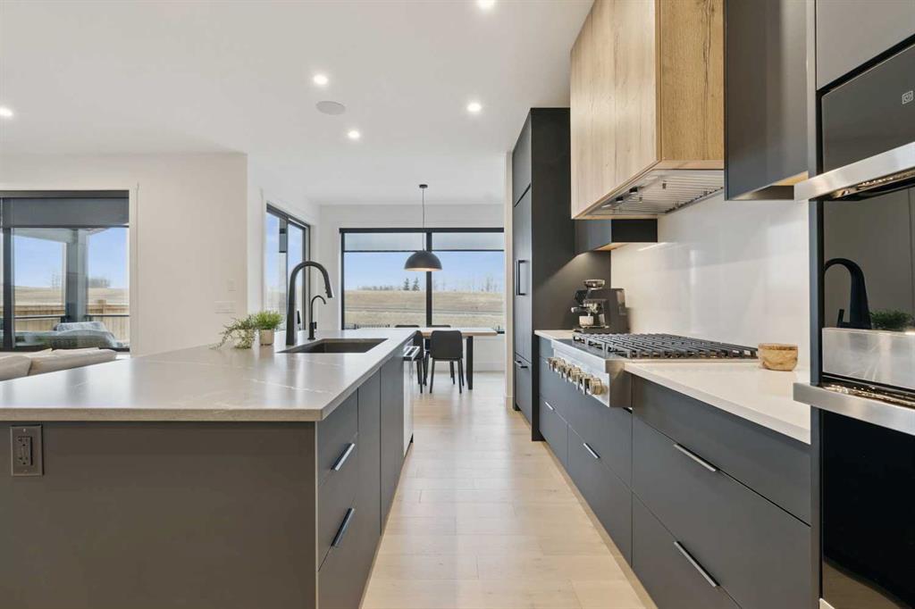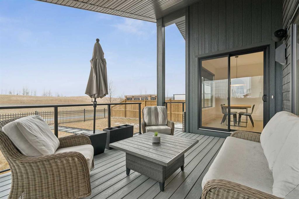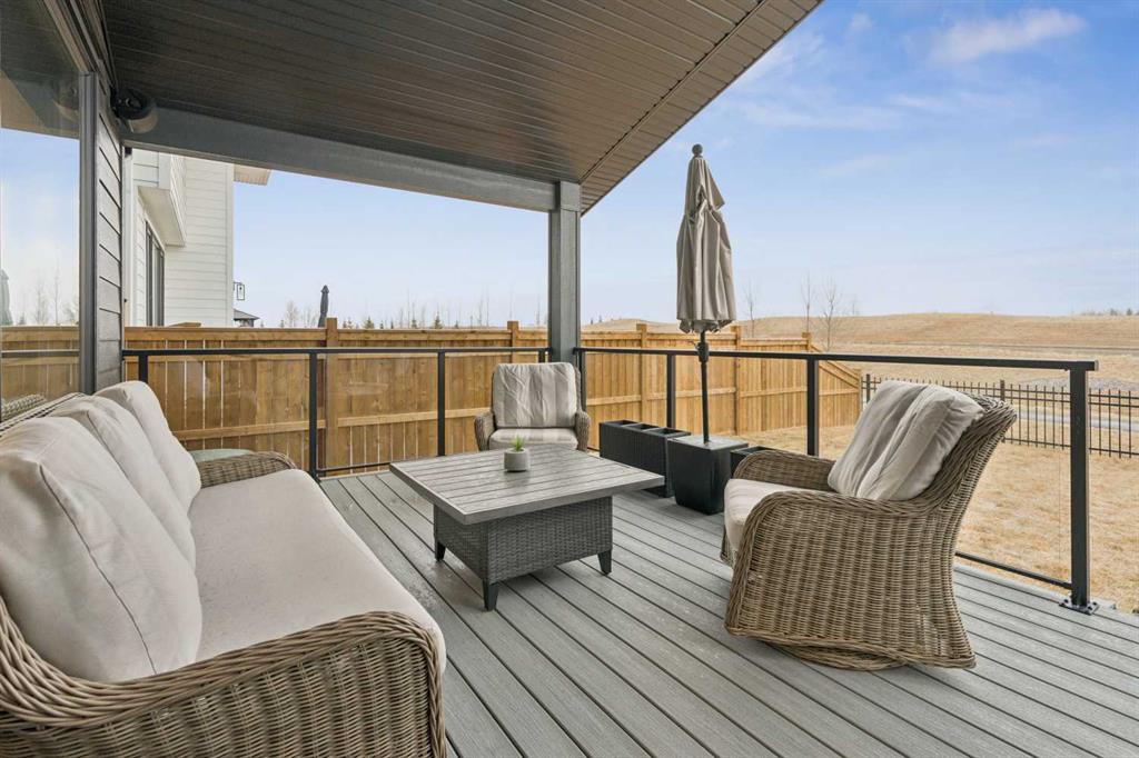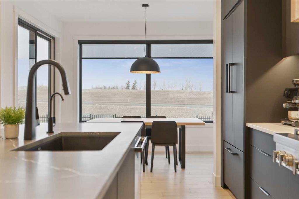 Welcome to this thoughtfully designed 2024-built, 1,975 ft² LIKE-NEW home offering 4 bedrooms, 4 bathrooms, and finished with PREMIUM UPGRADES throughout. The striking kitchen features matte black cabinetry, a matte quartz island, JennAir appliances including an integrated refrigerator, and a sleek modern aesthetic that anchors the main living space. Warm hardwood floors run throughout the home, including the staircase, creating a seamless and elevated feel. The inviting living room is centred around an oversized gas fireplace with a maple mantle and showcases expansive green views that stretch as far as the eye can see. Built-in speakers throughout the home add to the comfortable and modern living experience. Upstairs, the second floor offers a bonus room, two additional bedrooms, and a beautifully appointed five-piece ensuite in the primary retreat featuring a floating double vanity and refined finishes. The laundry room is thoughtfully designed for convenience with access from both the primary walk-in closet and the main hallway. The fully finished basement features impressive 10-foot ceilings, plush carpet, an additional bedroom, and a four-piece bathroom, creating the perfect extension of living space. Outdoor living is equally impressive on this premium lot with a covered composite deck backing onto green space, where a back gate provides direct access to the walking path and gorgeous morning sunrises over the golf course. Additional highlights include power blinds throughout, reverse osmosis water system, central air conditioning, and a water softener. The garage is equally impressive with a 10-foot door, 12-foot ceilings for additional storage, and an EV charger already installed. An aggregate driveway and walkway enhance the home’s beautiful curb appeal. Ask your agent for a full list of upgrades and features!