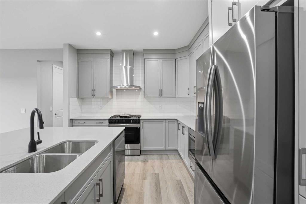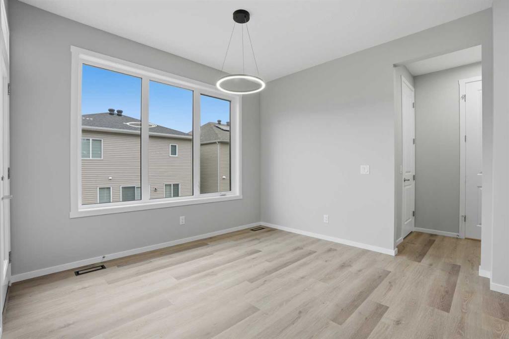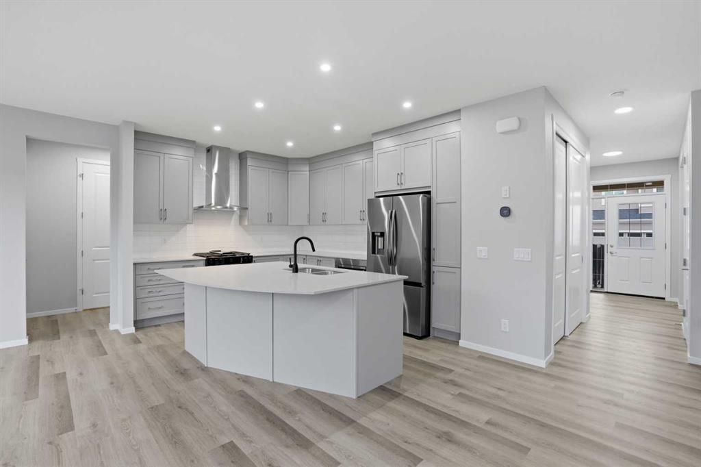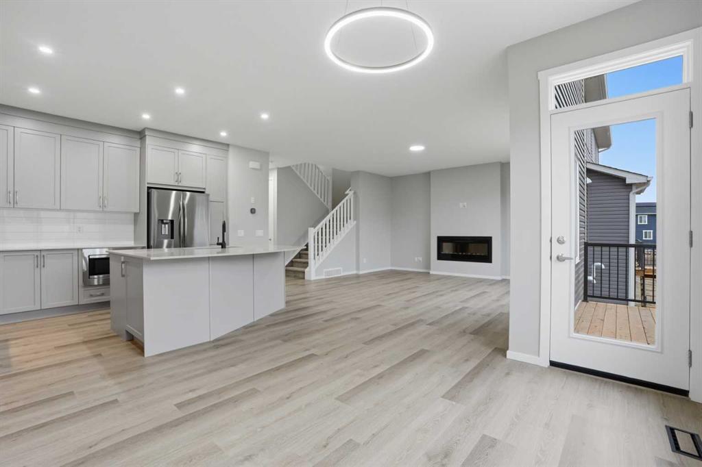The Maclaren opens into a welcoming foyer and front den before transitioning into a spacious main living area. The main floor is finished with upgraded 8' doors and luxury vinyl plank flooring throughout . The kitchen wows with a wealth of full-height cabinets, stainless steel chimney hood fan and an oversized quartz island and breakfast bar that connects seamlessly to the dining and great room with fireplace. A pantry, powder room, and mudroom enhance daily functionality. Upstairs, the primary bedroom is a true sanctuary and includes a walk-in closet and private ensuite with dual sinks and glass shower enclosure, offering comfort and privacy. The upstairs laundry room and main bathroom are centrally located. 3 additional sizable bedrooms give everyone in the family a place to call their own. A separate side entrance and 9' foundation have been added for the benefit of any future basement development plans. Photos are representative of the Maclren Floor Plan built by Mattamy Homes. Photos are of 38 Cityside View. Finishes & Colors may differ