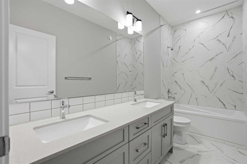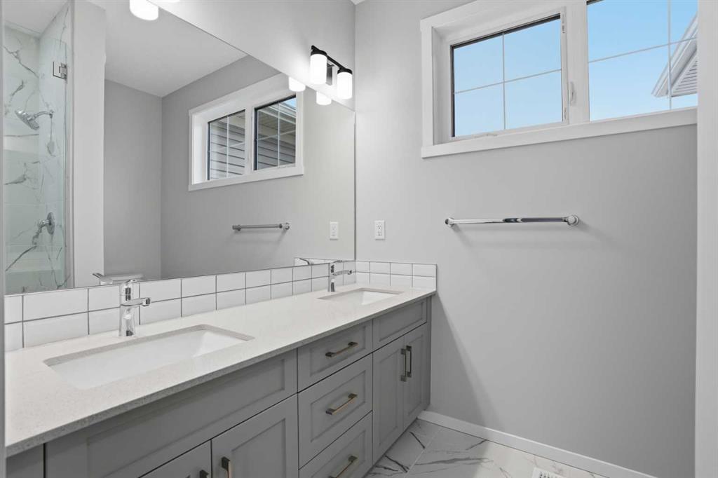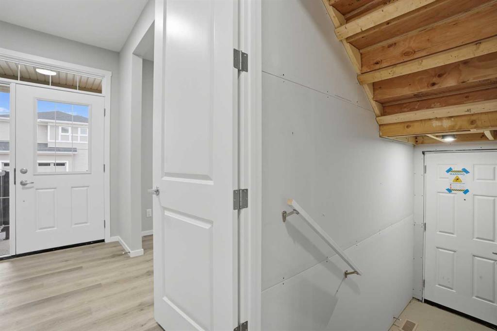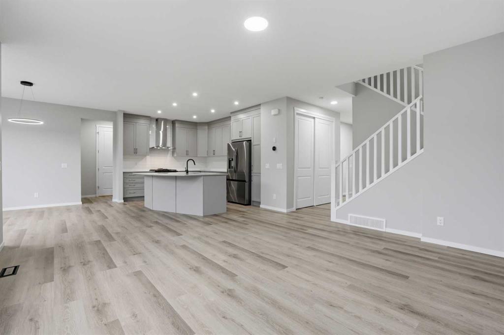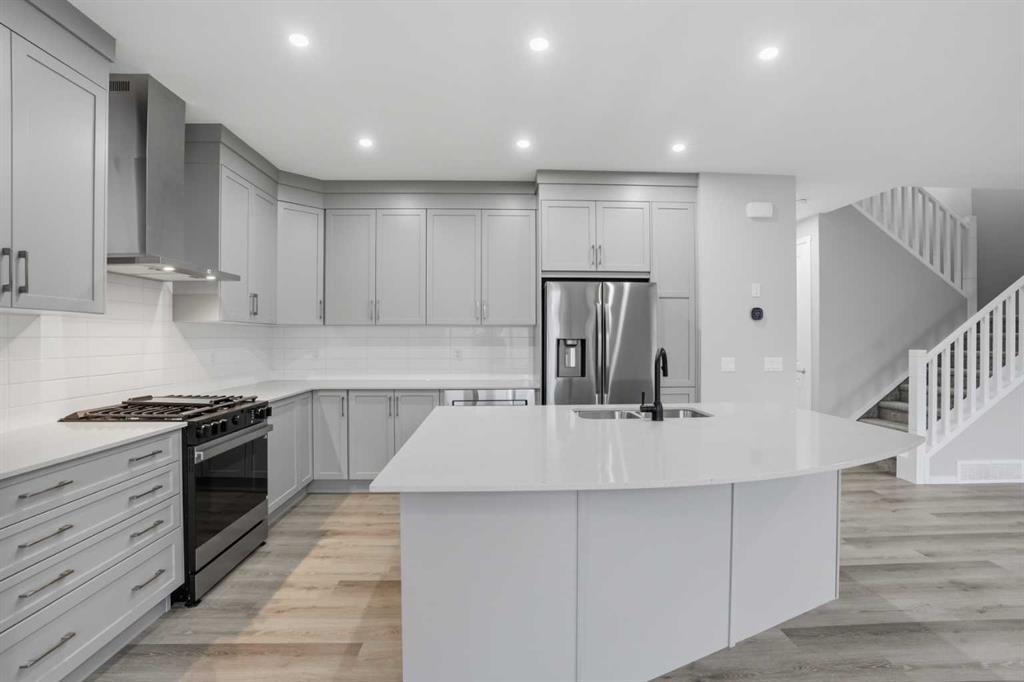 The Maclaren opens into a welcoming foyer and front den before transitioning into a spacious main living area. The main floor is finished with upgraded 8' doors and luxury vinyl plank flooring throughout . The kitchen wows with a wealth of full-height cabinets, stainless steel chimney hood fan and an oversized quartz island and breakfast bar that connects seamlessly to the dining and great room with fireplace. A pantry, powder room, and mudroom enhance daily functionality. Upstairs, the primary bedroom is a true sanctuary and includes a walk-in closet and private ensuite with dual sinks and glass shower enclosure, offering comfort and privacy. The upstairs laundry room and main bathroom are centrally located. 3 additional sizable bedrooms give everyone in the family a place to call their own. A separate side entrance and 9' foundation have been added for the benefit of any future basement development plans. Photos are representative of the Maclren Floor Plan built by Mattamy Homes. Photos are of 38 Cityside View. Finishes & Colors may differ