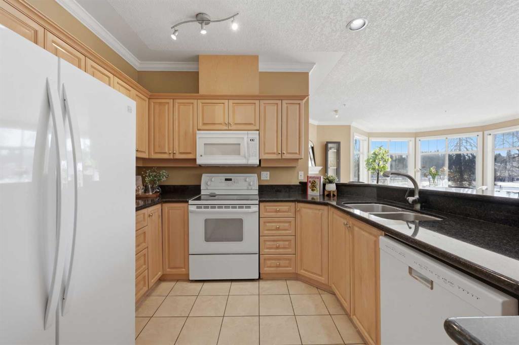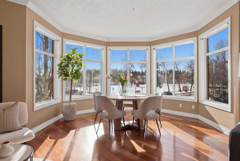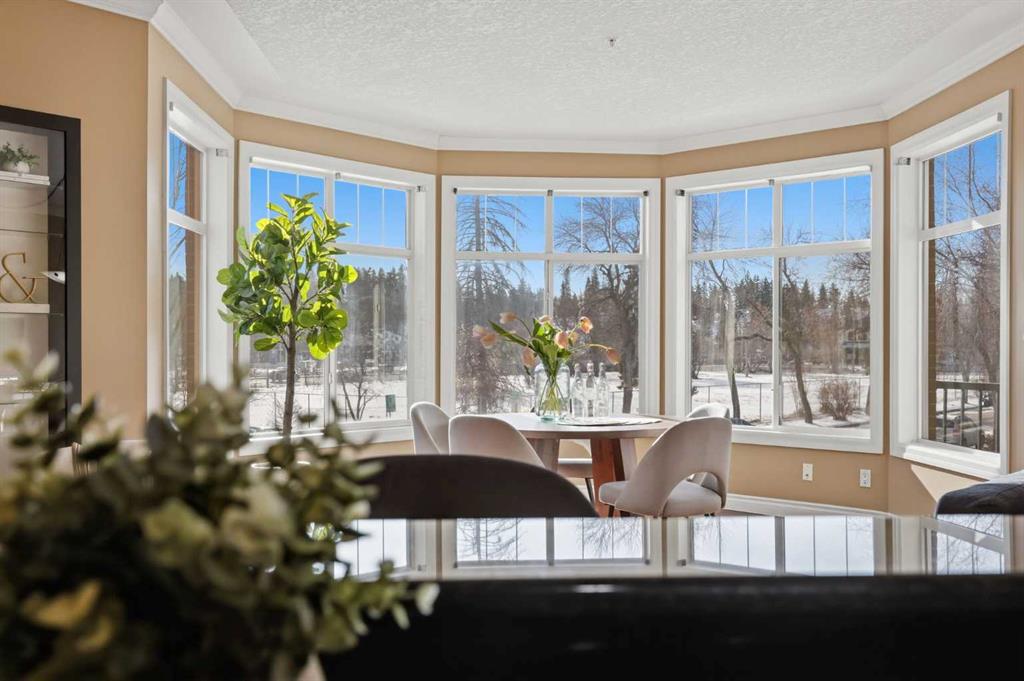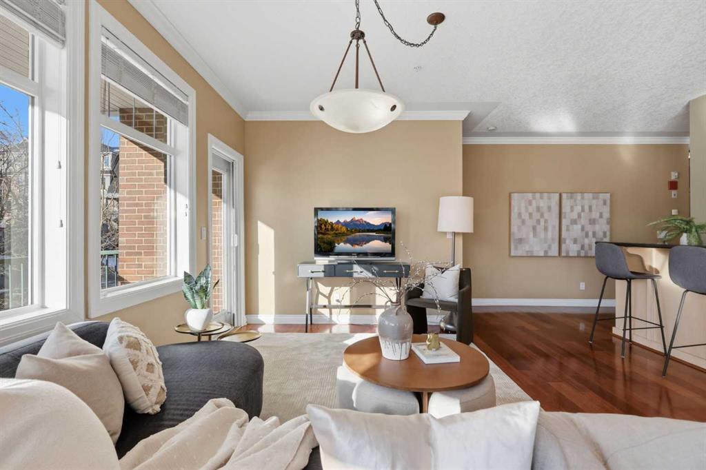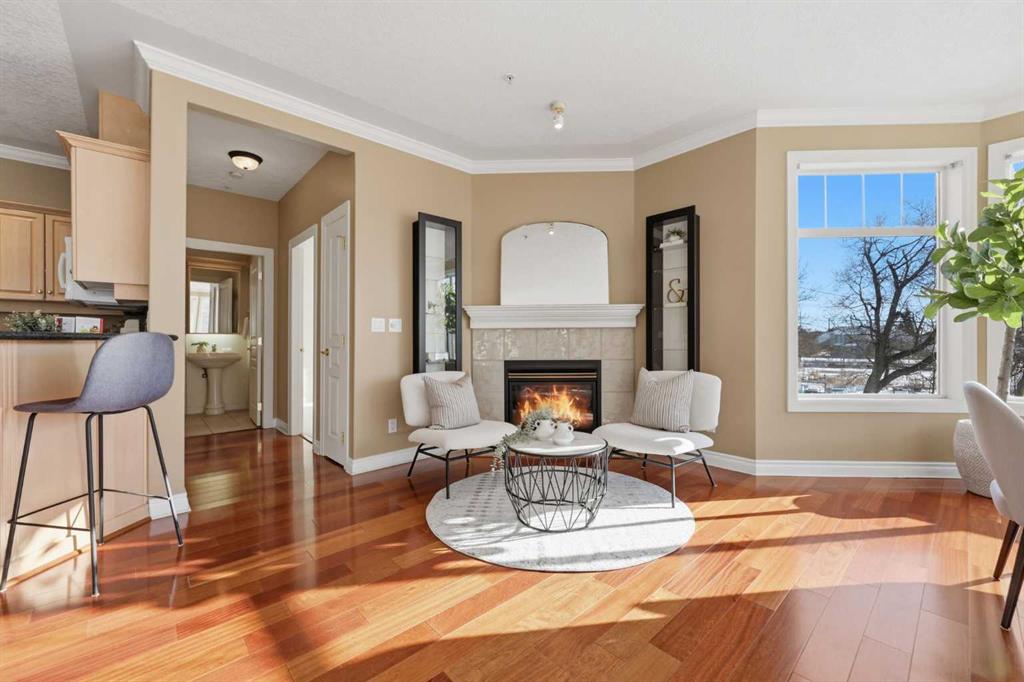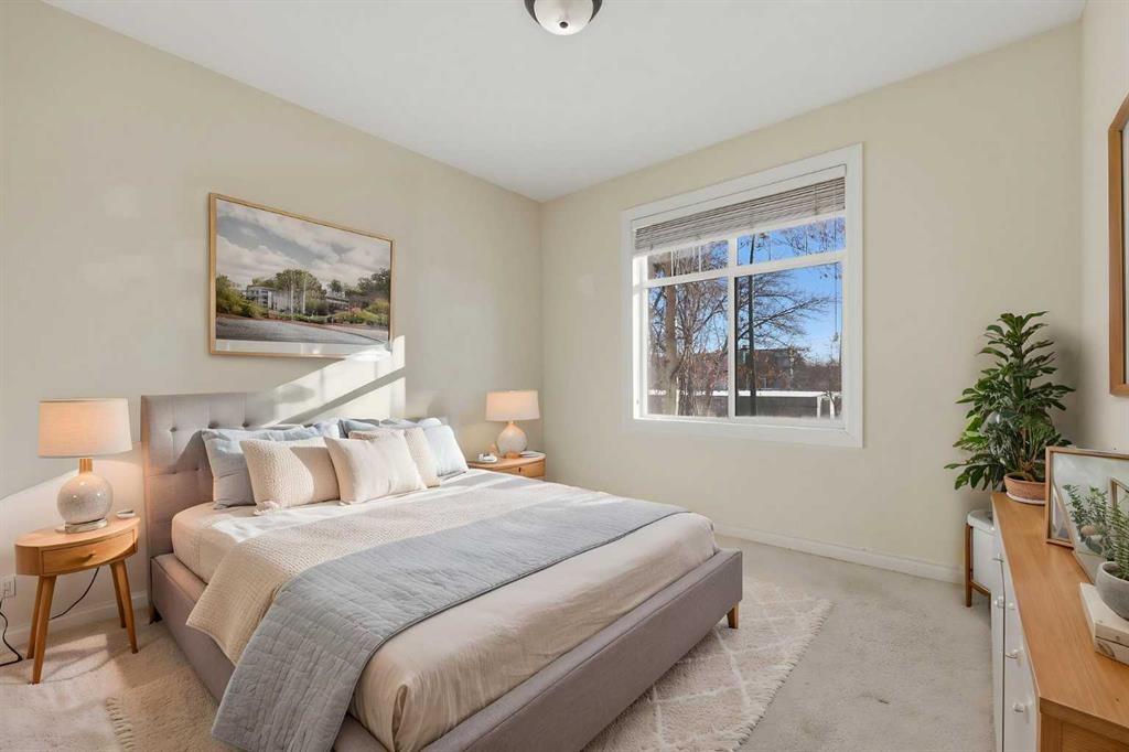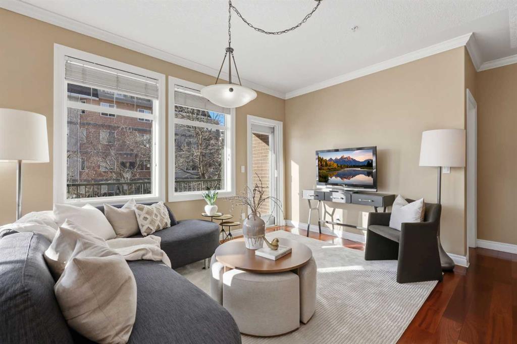 Welcome to Unit 203 at River Grande Estates, a perfect residence that offers comfort, space, and a functional layout. This gorgeous corner unit is filled with natural light from its south-facing windows, creating a warm and inviting atmosphere that feels more like a private residence than a typical condominium. Step through the spacious entrance and you’re welcomed into a stunning living space flooded with natural light. The bright living room is anchored by a cozy gas fireplace, creating the perfect place to relax or gather with friends and family. The kitchen features granite countertops, ample storage, and generous prep space, making it both functional and inviting. Just off the kitchen, a spacious dining area is surrounded by windows, an ideal setting for hosting. The south-facing patio is perfect for enjoying the sun throughout the day and features a gas BBQ hookup for effortless outdoor entertaining. The primary bedroom is spacious and comfortable, featuring double closets and a large ensuite complete with a relaxing jacuzzi tub and standalone shower. The second bedroom is also well-sized, offering flexibility as a guest room, home office, or additional living space. The unit features an additional 3-piece main bathroom, a large laundry room perfect for additional storage, providing excellent everyday functionality. River Grande Estates offers exceptional building amenities, including heated underground parking, a secure storage locker, bike storage, plenty of underground visitor stalls, a billiards room, a library, and meeting spaces. Pets are welcome with board approval. Ideally located in Erlton, one of Calgary’s most walkable inner-city communities, you are just steps from the river valley and Calgary’s incredible pathway system, perfect for walking, cycling, and enjoying the outdoors. You’re also moments from the shops and restaurants of 4th Street, Stampede Park and the BMO Centre, and can easily take in a Calgary Flames game or concert at the Saddledome, all just minutes from your door. A bright, beautifully positioned corner residence offering the comfort of a home with the convenience of inner-city living.