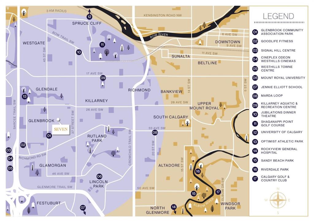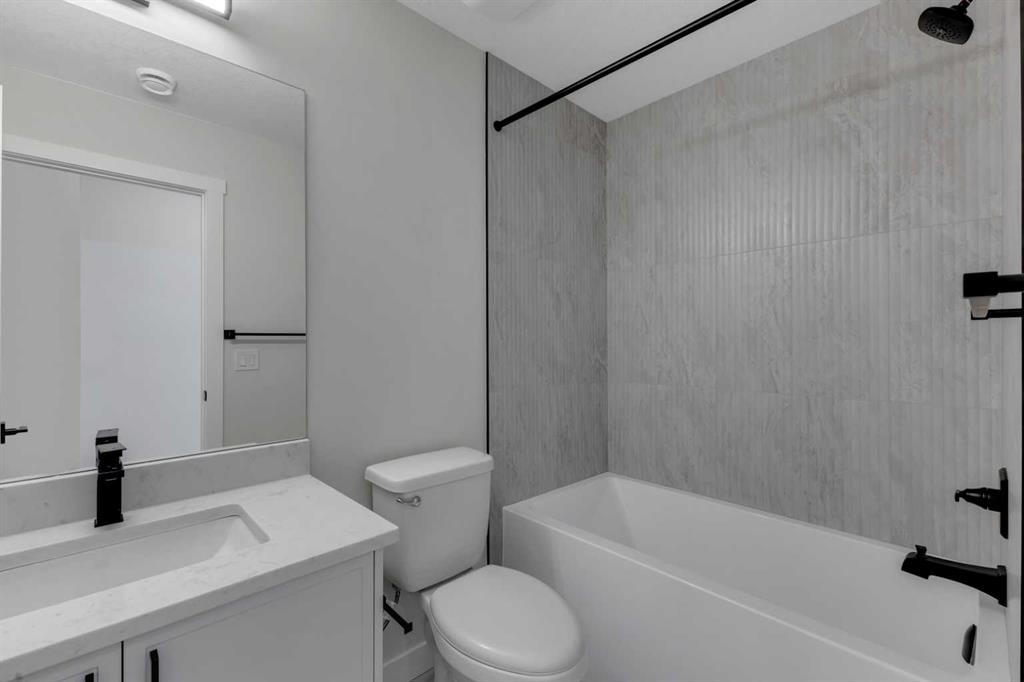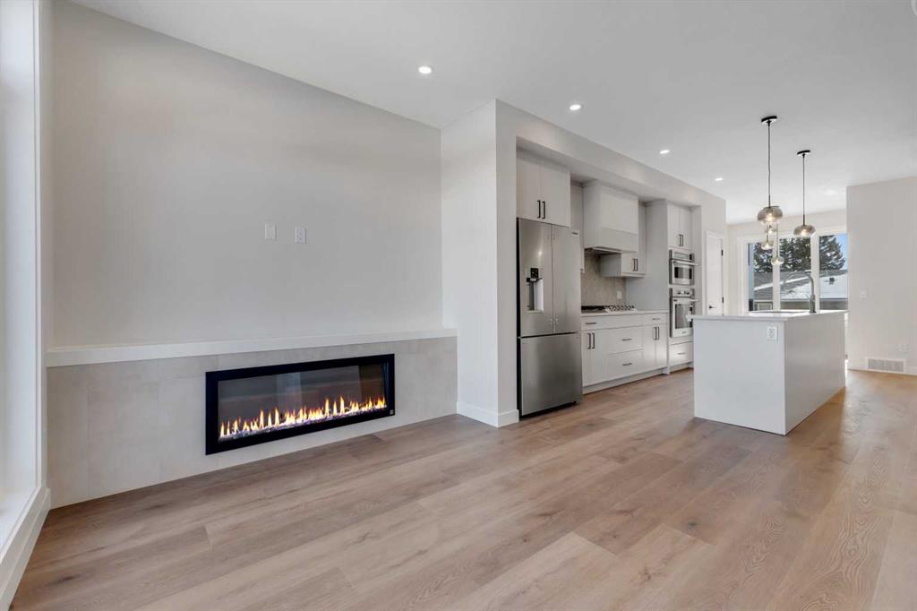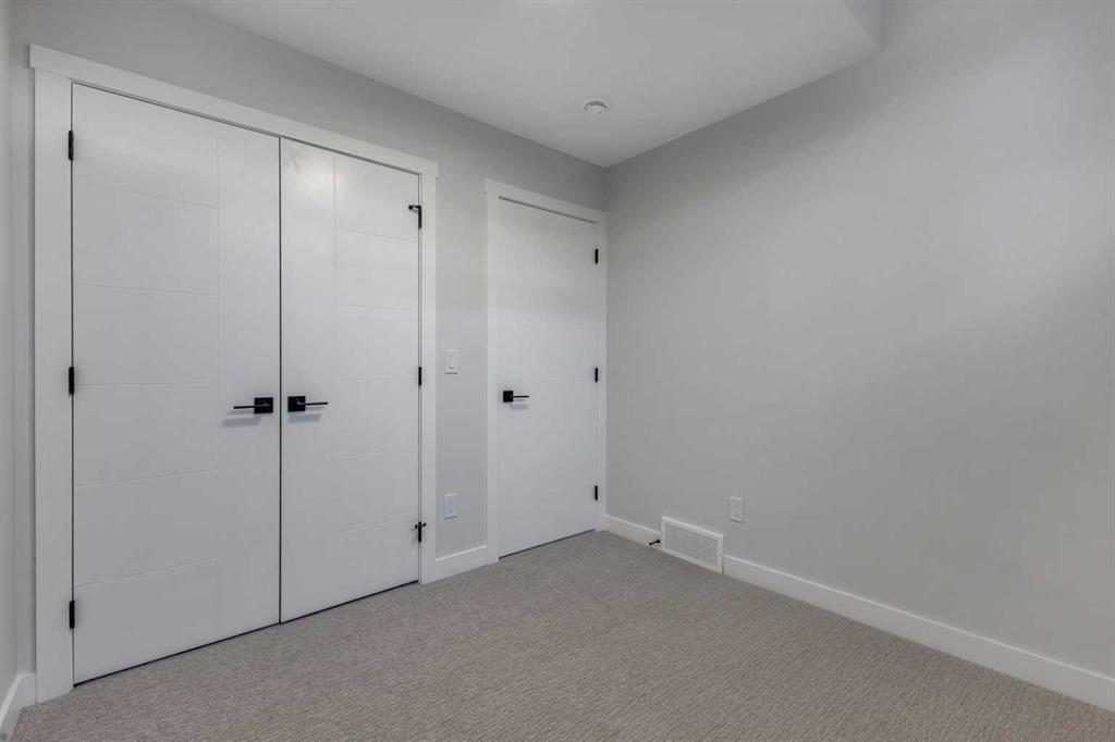 Welcome to THE SEVEN, an exclusive collection of seven luxury residences in the heart of Glenbrook, one of Calgary’s most sought-after inner-city communities. The opposite side of this semi-detached residence is also available, offering an alternate lighter designer finish palette. This particular home is a three-storey semi-detached residence (half duplex) offering 4 bedrooms and 4.5 bathrooms, including 3 private ensuites, thoughtfully designed for elevated urban living just minutes from downtown. Step inside to a spacious main floor where a generous living room welcomes you with striking dark flooring flowing throughout and a beautifully tiled fireplace that creates a warm, inviting focal point. The designer kitchen is built for both everyday living and entertaining, featuring a large statement island, built-in oven and microwave, gas cooktop, and a pantry for seamless storage. The dining area provides the perfect setting for hosting dinner parties or relaxed family meals, while the stylish powder room delivers a boutique-hotel inspired feel for guests. A functional mudroom is tucked away at the rear, offering a separate entrance to the backyard and detached garage. The second level features two spacious bedrooms, each complete with its own private ensuites providing comfort and privacy for family or guests. A dedicated laundry room with additional cabinetry adds everyday convenience. Occupying the entire third floor, the grand primary retreat is a true sanctuary. Enjoy vaulted ceilings, elegant wall sconces, and a statement chandelier above the bed, along with direct access to a private balcony—perfect for morning coffee or evening relaxation. The spa-inspired ensuite features a dual vanity, stunning tile work, and a glass-enclosed shower, while the walk-in closet is finished with custom shelving and built-in cabinetry. The fully developed basement expands the living space with a large recreation room, a stylish wet bar with under-cabinet lighting, an additional bedroom, and a full bathroom—ideal for guests, entertaining, or movie nights. Outside, the home’s exterior showcases a modern stucco façade accented with warm Hardie board details, creating striking curb appeal. Residents also enjoy a shared landscaped green space and access to the detached garage. Located in the vibrant community of Glenbrook, you’re just minutes from downtown Calgary while enjoying the charm of established inner-city living, with nearby parks, schools, restaurants, and everyday amenities all within easy reach. Experience sophisticated design, modern comfort, and urban convenience at THE SEVEN. Power lines digitally removed from exterior images for presentation purposes.