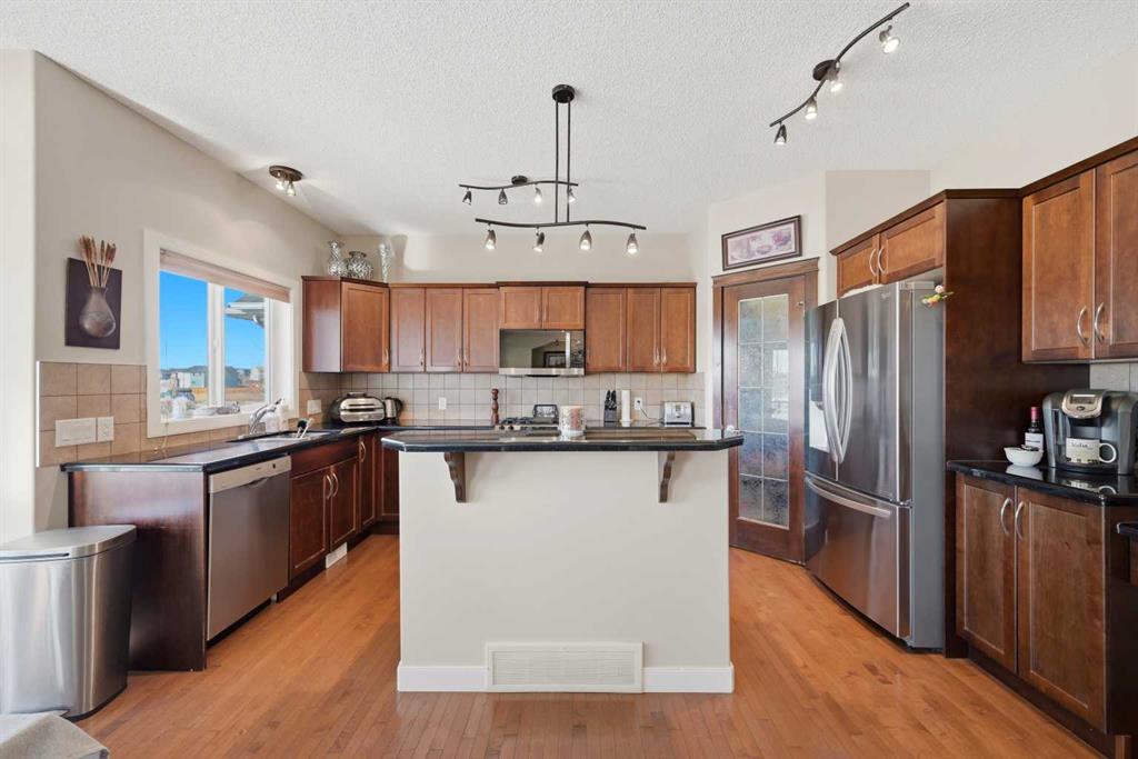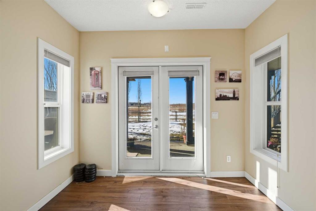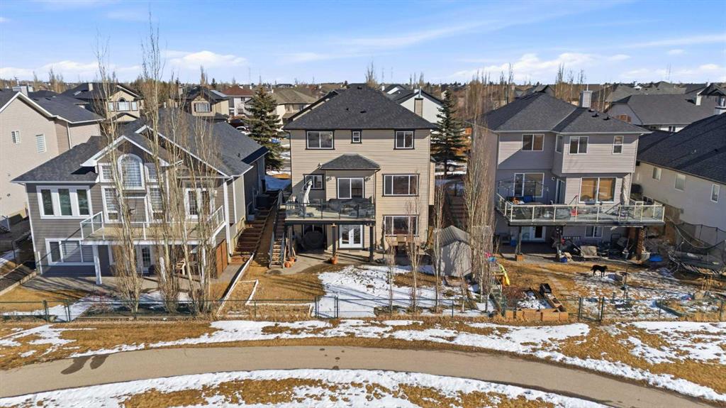 Sophistication, comfort, and thoughtful design come together in this beautifully maintained 2-storey walkout home offering over 3,200 sq ft of developed living space. Situated on a rare premium 48 x 115 ft fully walkout lot, the property backs directly onto tranquil pond, green space, scenic pathways, and protected wetlands with no rear neighbors, creating a peaceful setting with stunning natural views. Located in Westmere, one of Chestermere’s most established, spacious, and highly accessible communities, the home offers quick access to Rainbow Road, Highway 1, and 17 Avenue, providing an easy commute to Calgary Downtown while enjoying the character and lifestyle that make this neighborhood one of the city’s most desirable. Within walking distance to highly rated St. Gabriel the Archangel Catholic High School and Prairie Waters Elementary, and conveniently close to everyday shopping, dining, recreation facilities, Chestermere Lake, parks, pathways, and the golf course, with the East Hills Shopping Centre just minutes away. The bright and spacious main floor features an inviting living room with upgraded fireplace and built-ins, a formal dining / flex area, sunny breakfast nook, and an upgraded kitchen with granite countertops, extensive cabinetry, newer appliances, and a separate spice kitchen - perfect for cooking and entertaining. Main-floor laundry, mudroom, and a convenient half bath add everyday functionality. Step outside to the DuraDeck with glass railings, BBQ gas line, and stairs leading to the south facing backyard. The home features an oversized 4-ft extended attached garage offering space for two vehicles plus additional storage. Upstairs offers three spacious bedrooms, including a primary retreat overlooking the natural green space, complete with a luxurious 5-piece ensuite with double vanity and walk-in closet. A full bathroom and large bonus room provide excellent space for family living, entertainment, or a media room. The builder-finished walkout basement adds exceptional flexibility with a large bedroom, full bathroom, expansive recreation and media area, and a bar with 220V electrical and plumbing rough-ins for a future kitchen, offering excellent potential for multi-generational living. The walkout level opens to an exposed aggregate concrete patio with BBQ gas line and hot tub electrical connection, overlooking the landscaped yard with pond and pathway views. Recent improvements include a new roof in 2022 as well as AC in 2025.