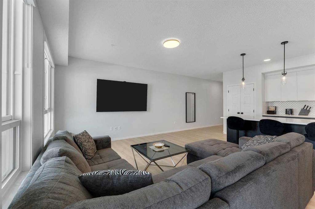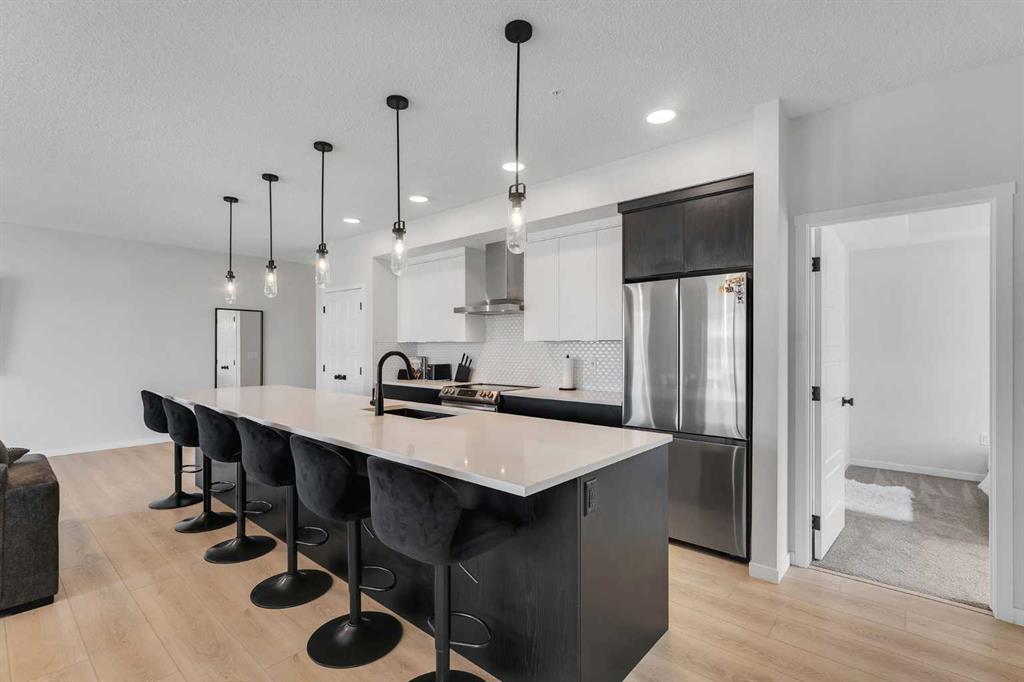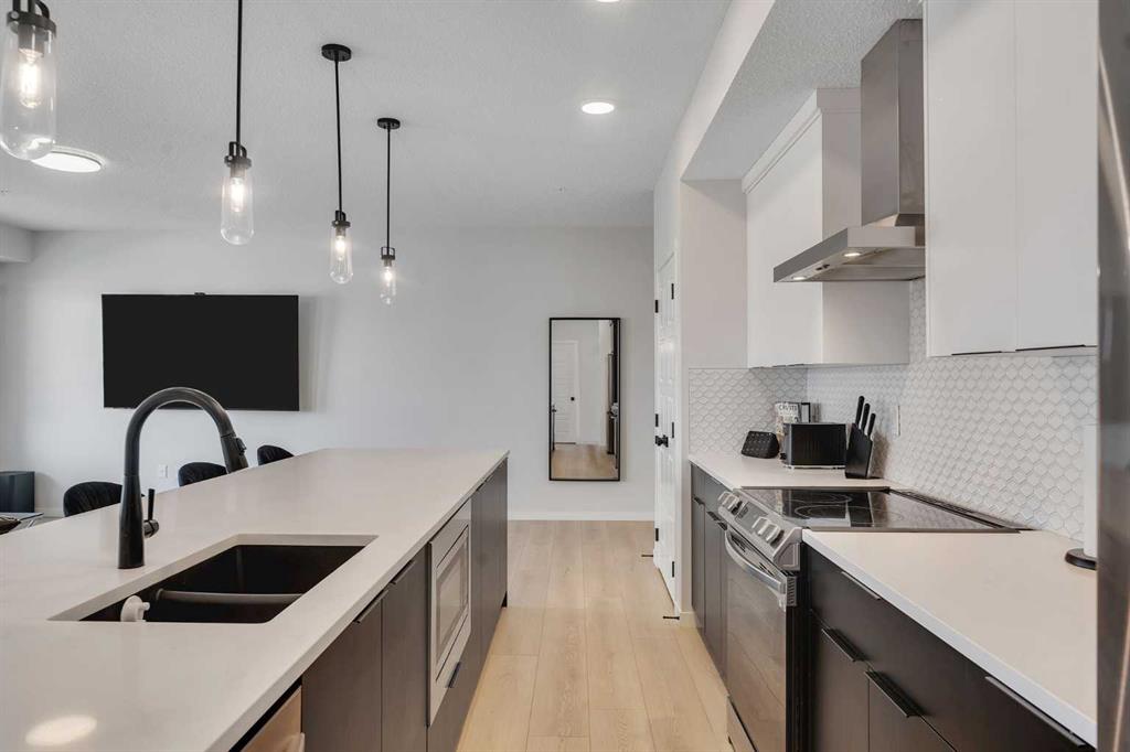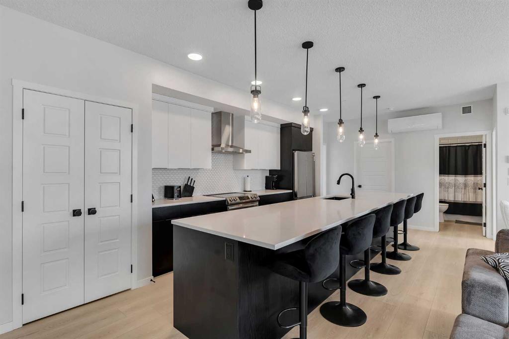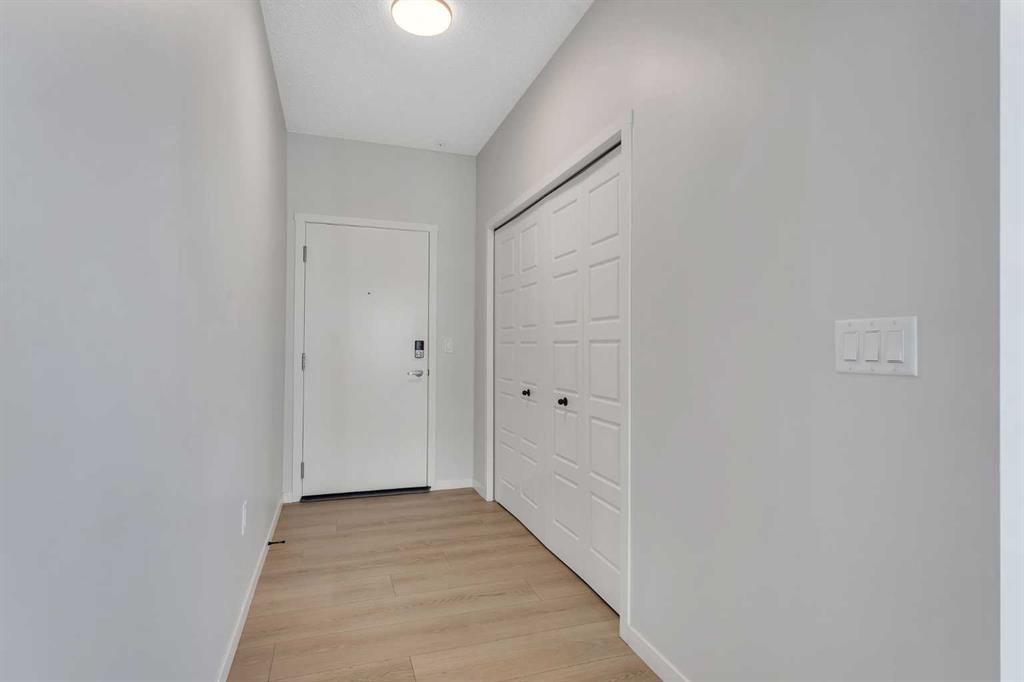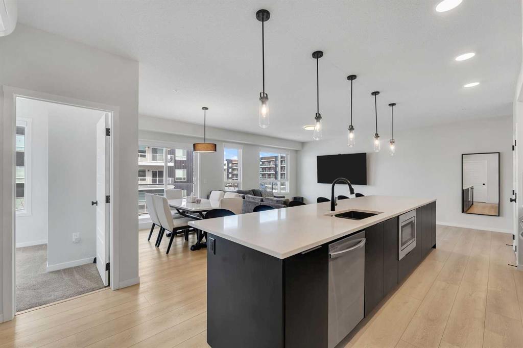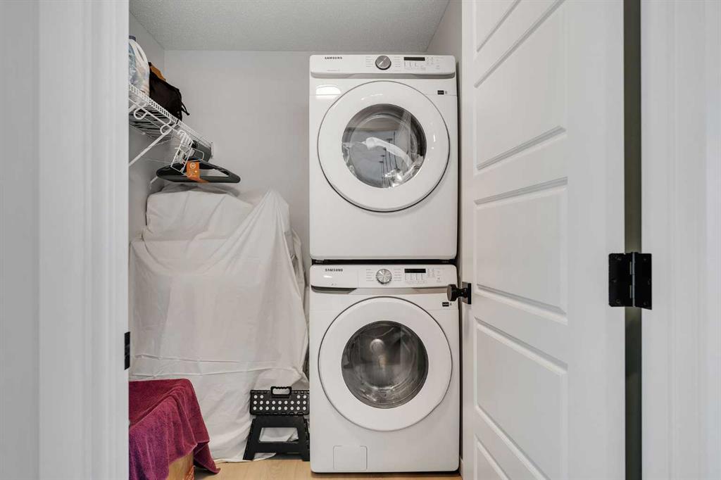 Stylish Corner Unit with Expansive Balcony and Premium Upgrades (L4 Floorplan). Welcome to this spacious 1,092 sq ft corner unit, offering a bright and modern layout with 2 bedrooms and 2 full bathrooms. With 9-foot ceilings and large windows throughout, the home feels open, airy, and filled with natural light—especially in the west-facing bedrooms, perfect for enjoying warm afternoon sun. The gourmet kitchen upgrade is a standout feature, showcasing an extended granite island, elegant two-tone cabinetry, chimney-style hood fan, stainless steel appliances, and a built-in microwave. This well-designed space is ideal for both everyday cooking and entertaining guests. Durable luxury vinyl tile flooring with sound-reducing membrane adds both comfort and style to the living areas. The primary bedroom offers a functional retreat with a large walk-in closet and a private ensuite bathroom. Additional highlights include air conditioning, electric baseboard heating, triple-pane windows for energy efficiency, and a large in-suite storage room with stacked washer and dryer. Step outside onto the impressive 23-foot balcony, complete with a BBQ gas outlet, providing the perfect space for outdoor dining and relaxing. The home also comes with a titled underground parking stall, adding convenience and security year-round. A rare combination of space, upgrades, and a prime corner layout, this home is perfect for comfortable modern living. Close to shopping, and all amenities! PET FRIENDLY COMPLEX.